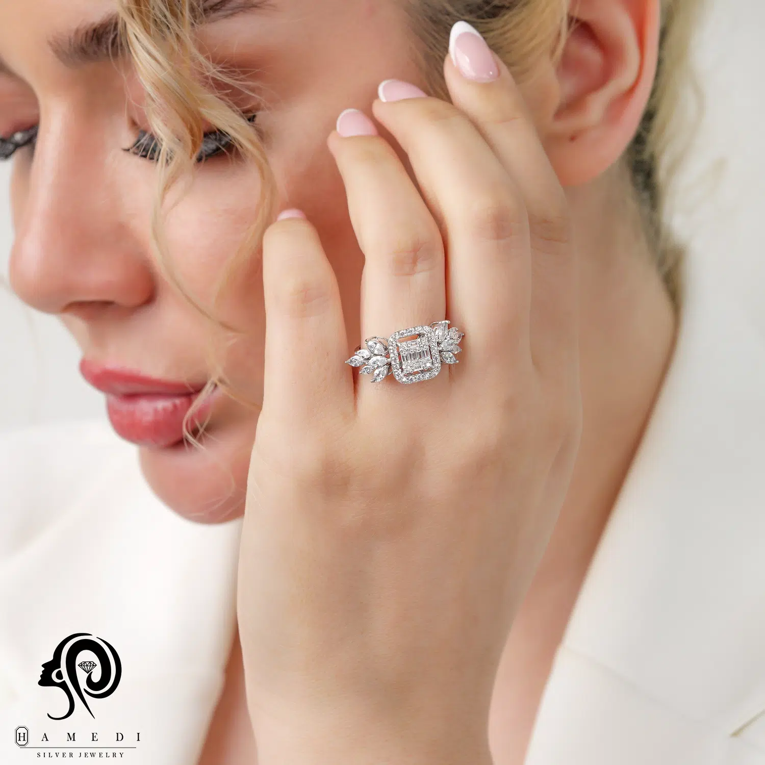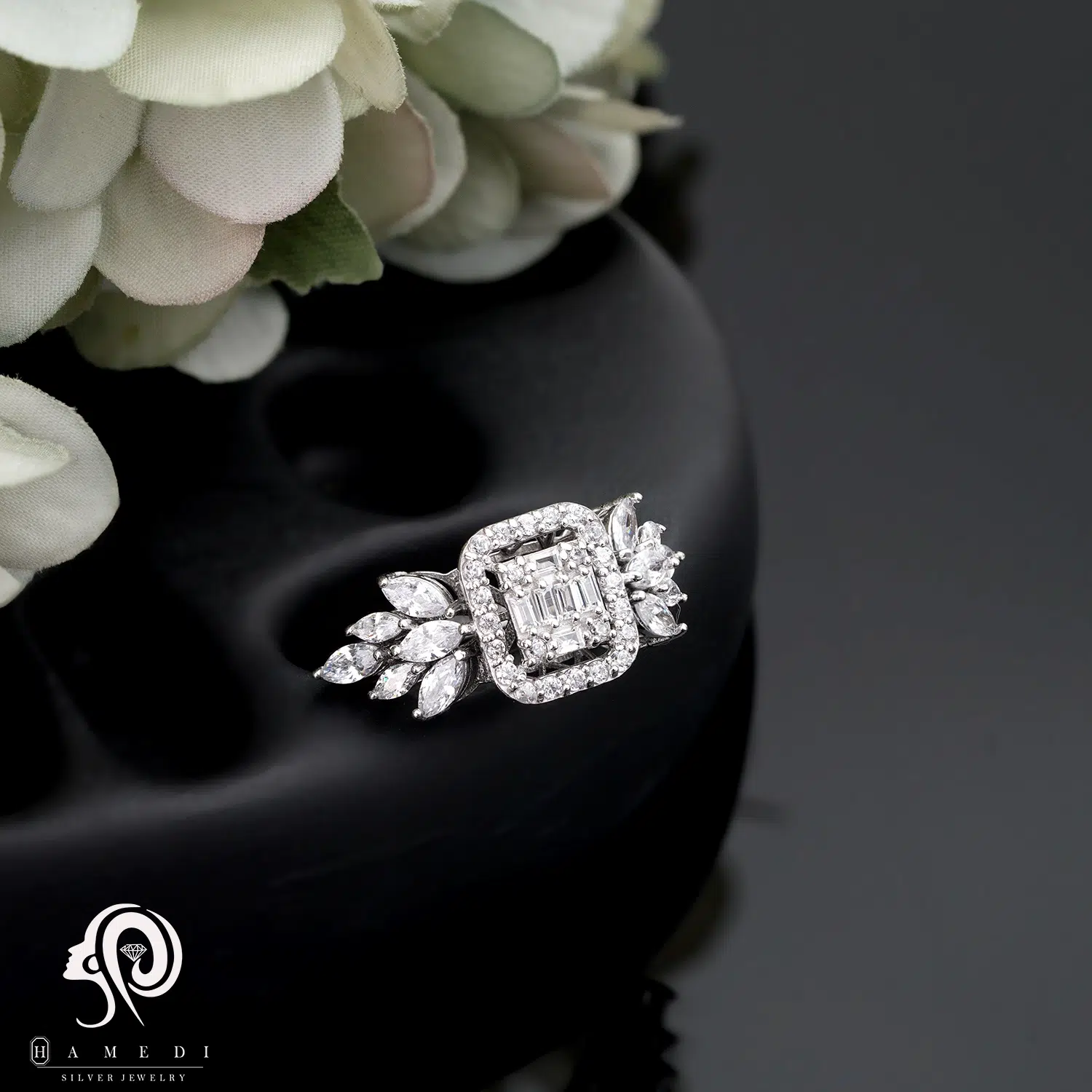 انگشتر نقره زنانه مجلسی جواهری مدل RIL D12 یک اکسسوری زیبا و شیک است که در انواع طرح های مختلف تولید و عرضه می شود. این محصول دارای طرحی منحصر به فرد و خاصی می باشند تا مشتریان بتوانند به راحتی طرح مورد نظر خود را خریداری نمایند.