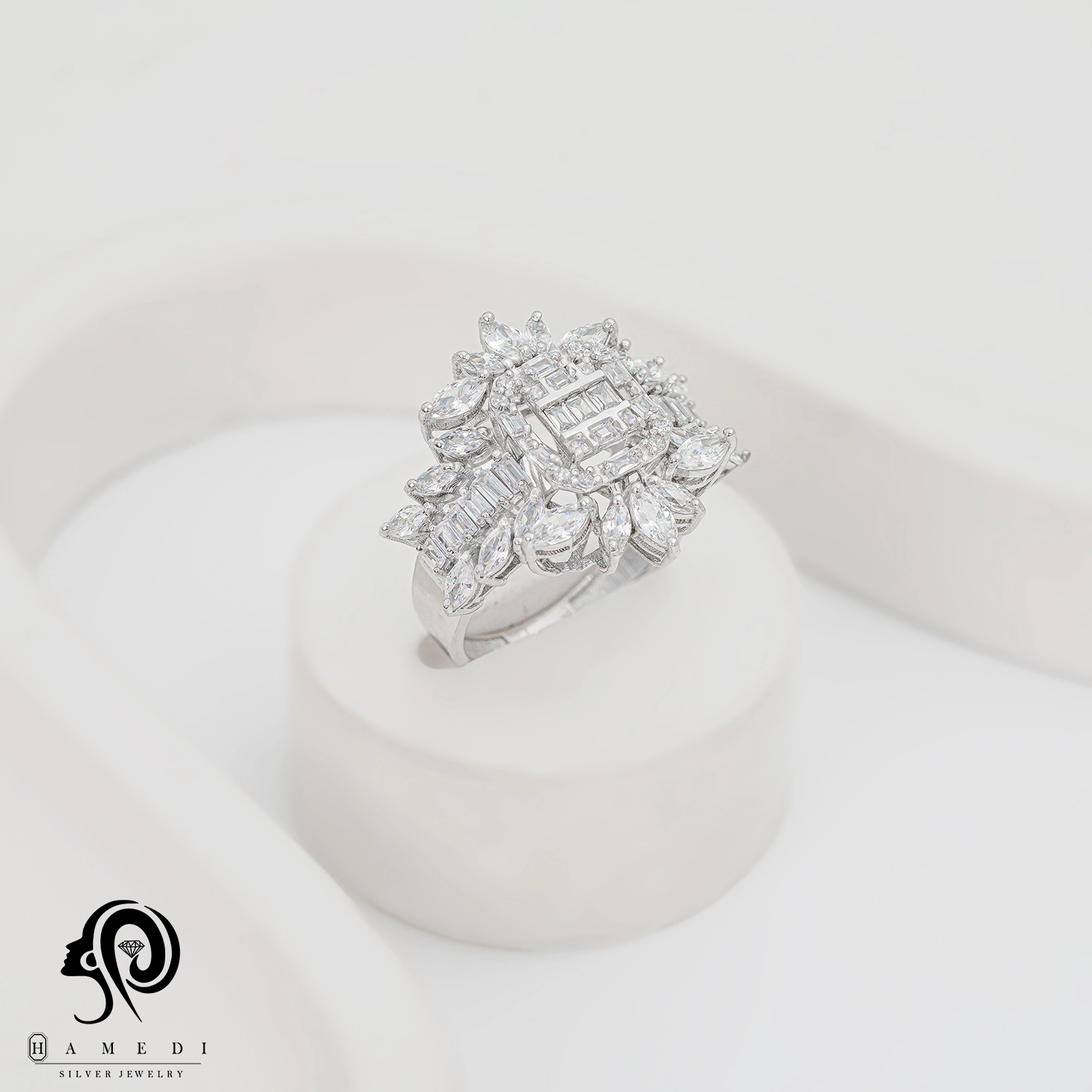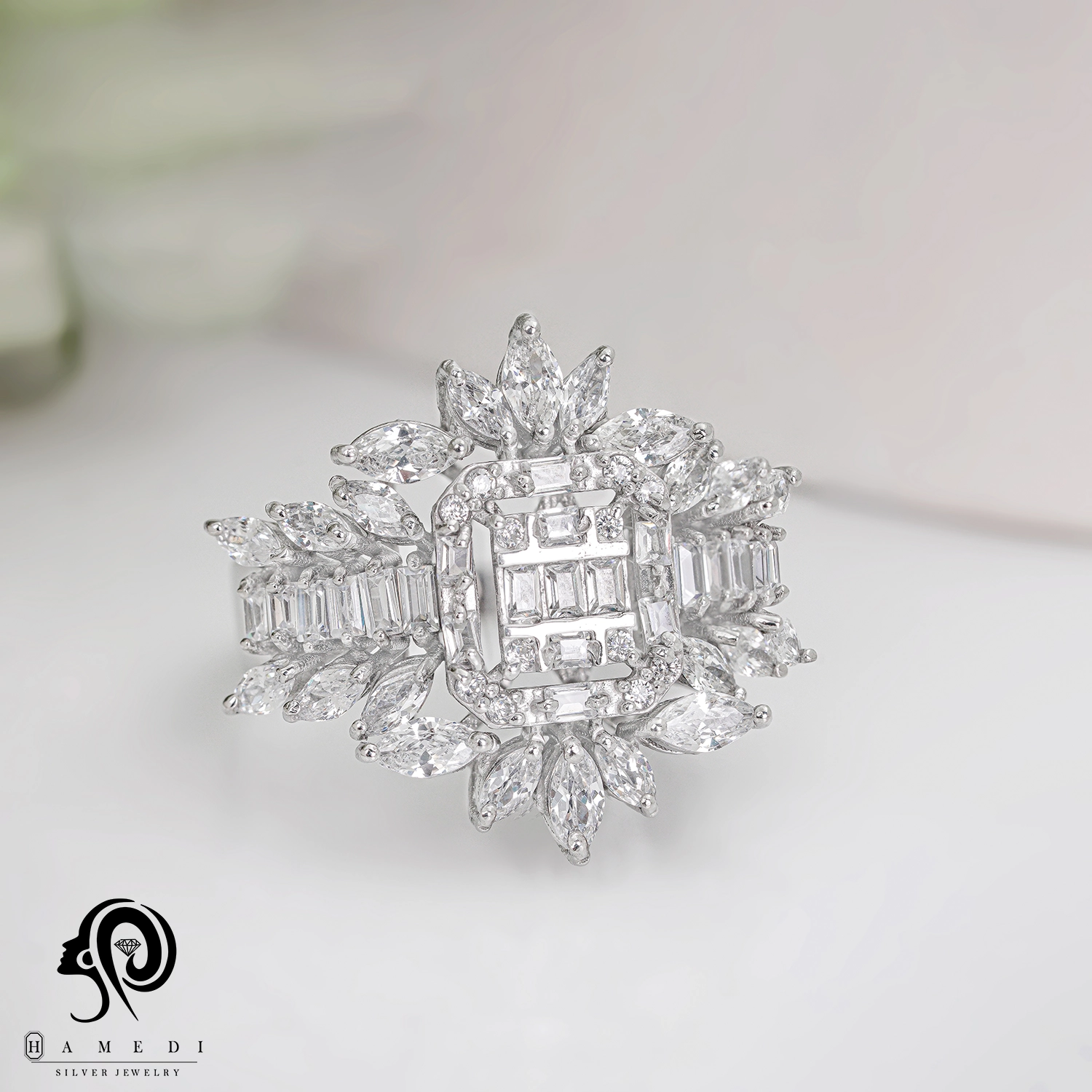 انگشتر نقره زنانه مجلسی جواهری مدل RIL D14 یک اکسسوری زیبا و شیک است که در انواع طرح های مختلف تولید و عرضه می شود. این محصول دارای طرحی منحصر به فرد و خاصی می باشند تا مشتریان بتوانند به راحتی طرح مورد نظر خود را خریداری نمایند.