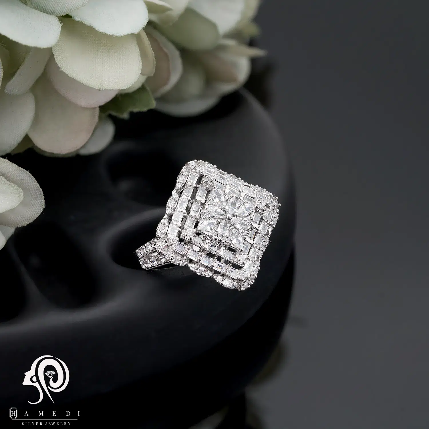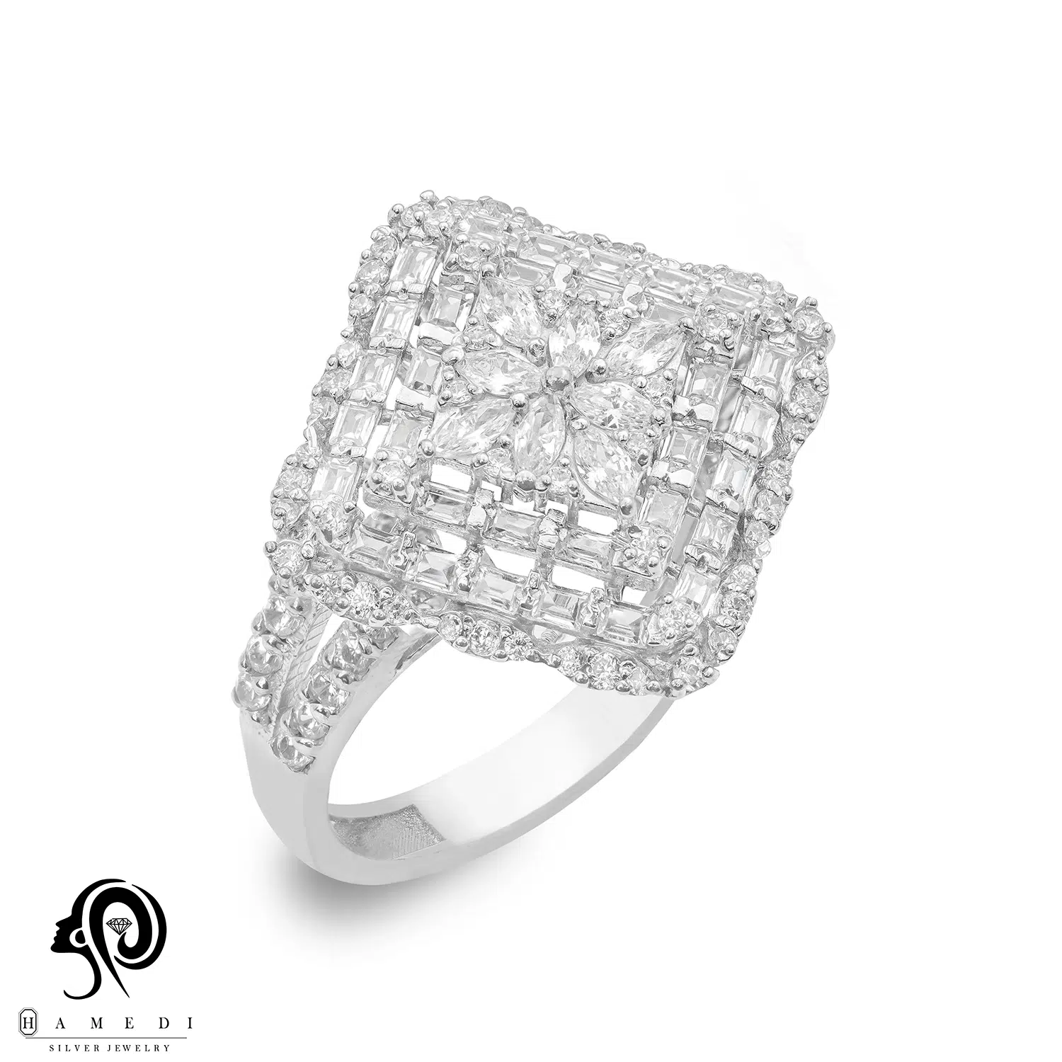 انگشتر نقره زنانه مجلسی جواهری مدل RIL D16 یک اکسسوری زیبا و شیک است که در انواع طرح های مختلف تولید و عرضه می شود. این محصول دارای طرحی منحصر به فرد و خاصی می باشند تا مشتریان بتوانند به راحتی طرح مورد نظر خود را خریداری نمایند.