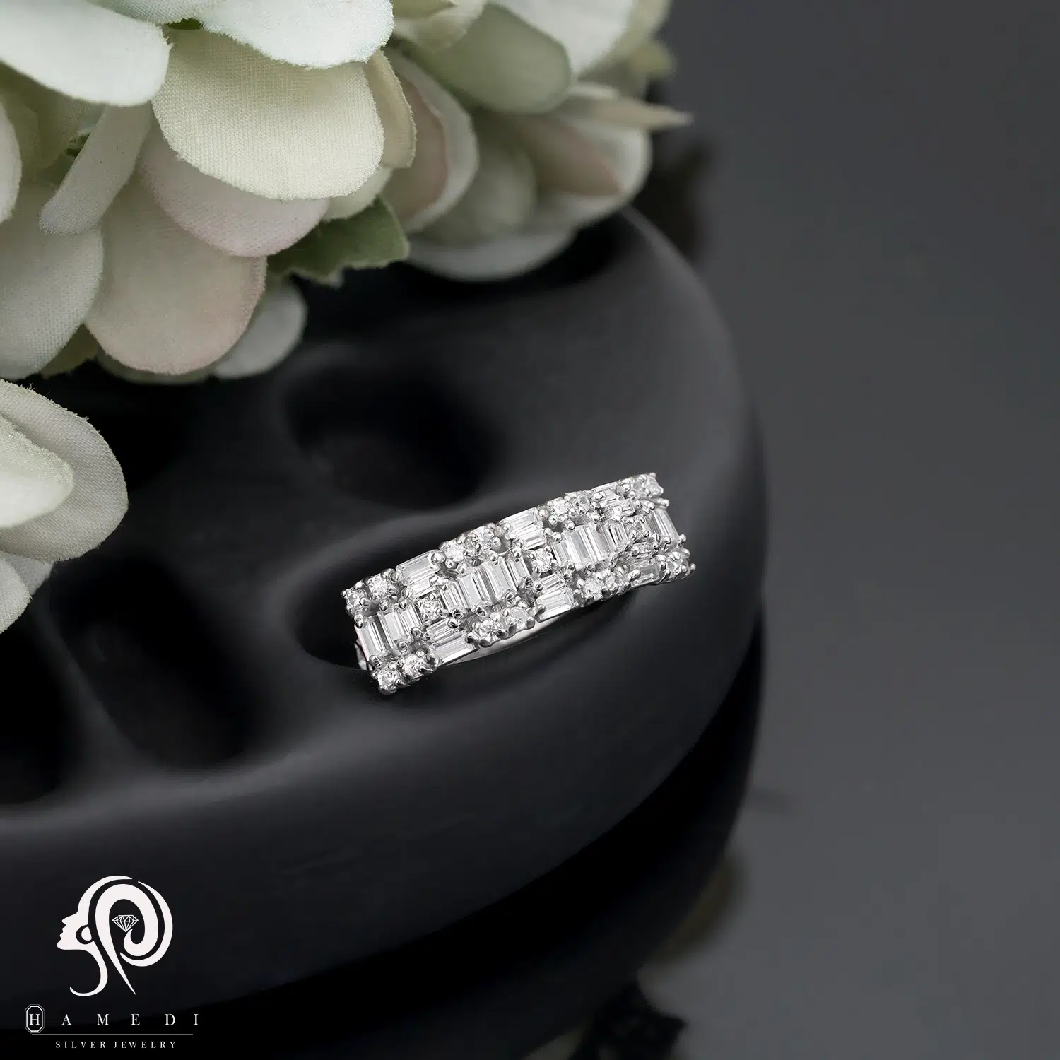 انگشتر نقره زنانه مجلسی جواهری مدل RIL E57 یک اکسسوری زیبا و شیک است که در انواع طرح های مختلف تولید و عرضه می شود. این محصول دارای طرحی منحصر به فرد و خاصی می باشند تا مشتریان بتوانند به راحتی طرح مورد نظر خود را خریداری نمایند.