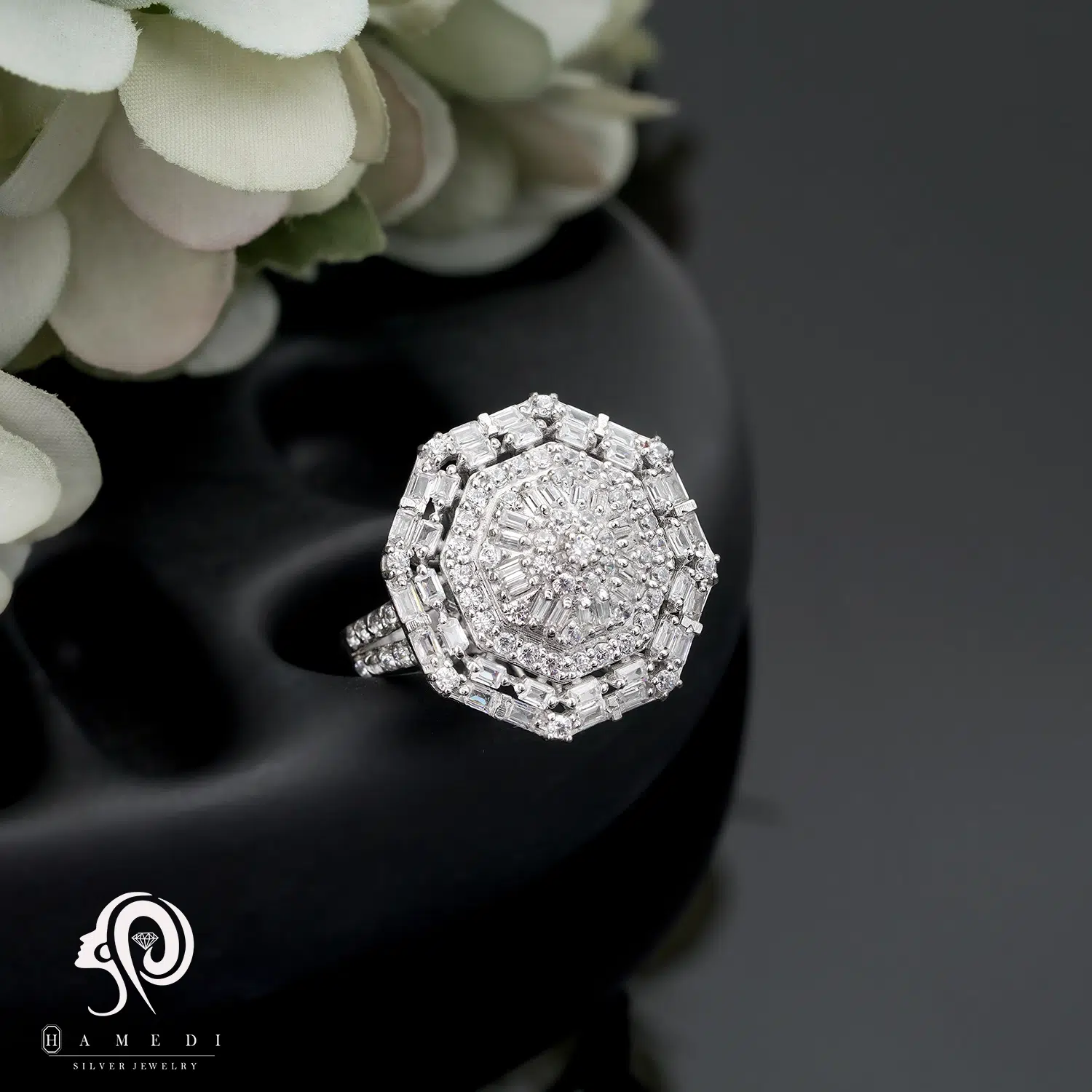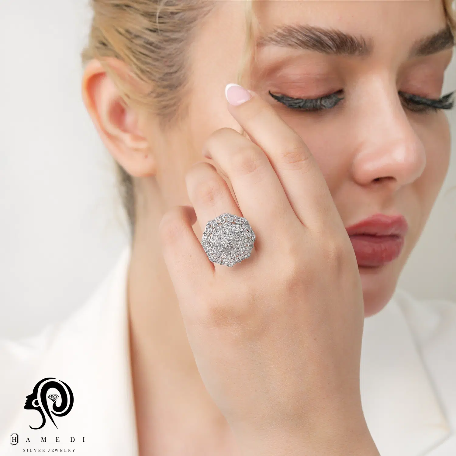 انگشتر نقره زنانه مجلسی جواهری مدل RIL E58 یک اکسسوری زیبا و شیک است که در انواع طرح های مختلف تولید و عرضه می شود. این محصول دارای طرحی منحصر به فرد و خاصی می باشند تا مشتریان بتوانند به راحتی طرح مورد نظر خود را خریداری نمایند.