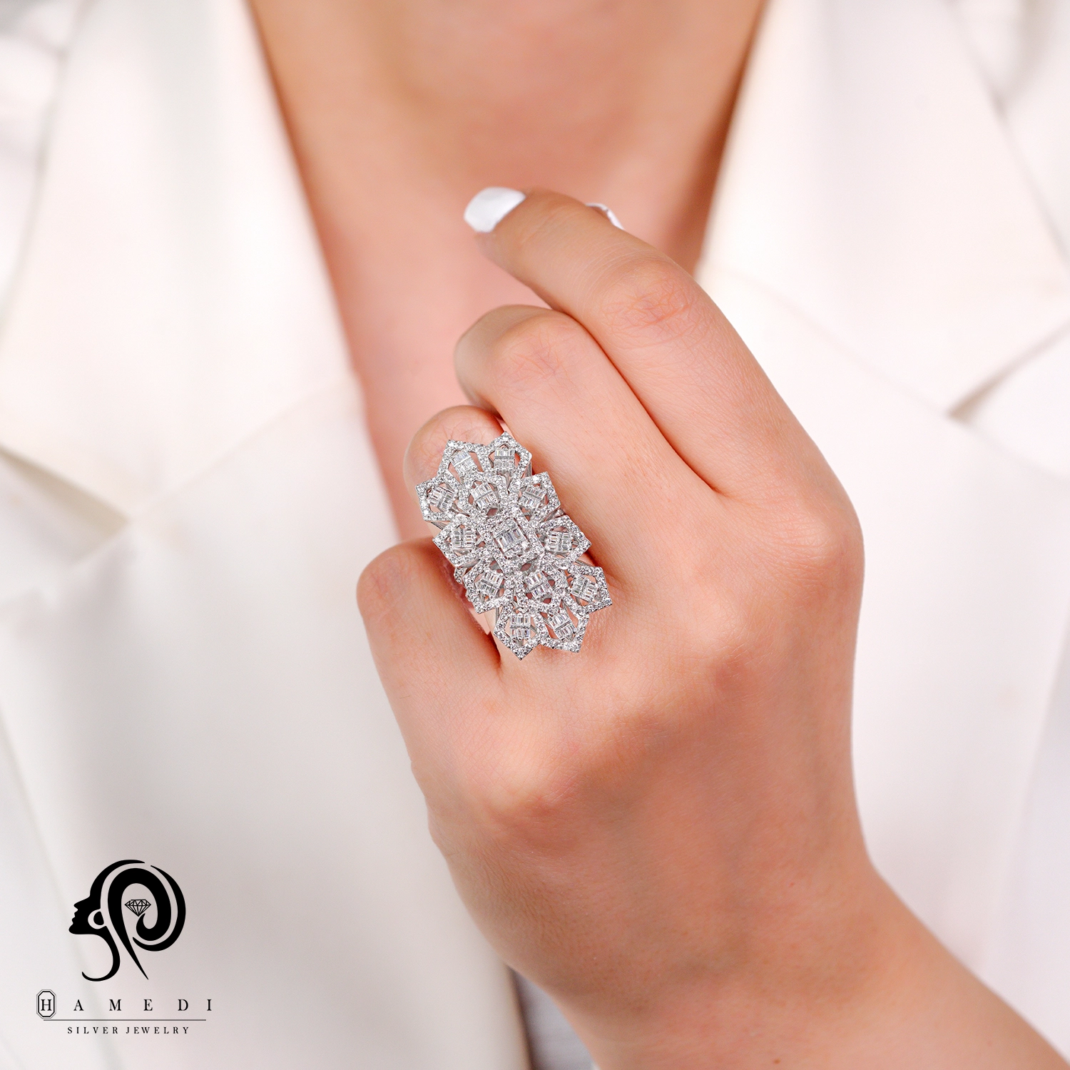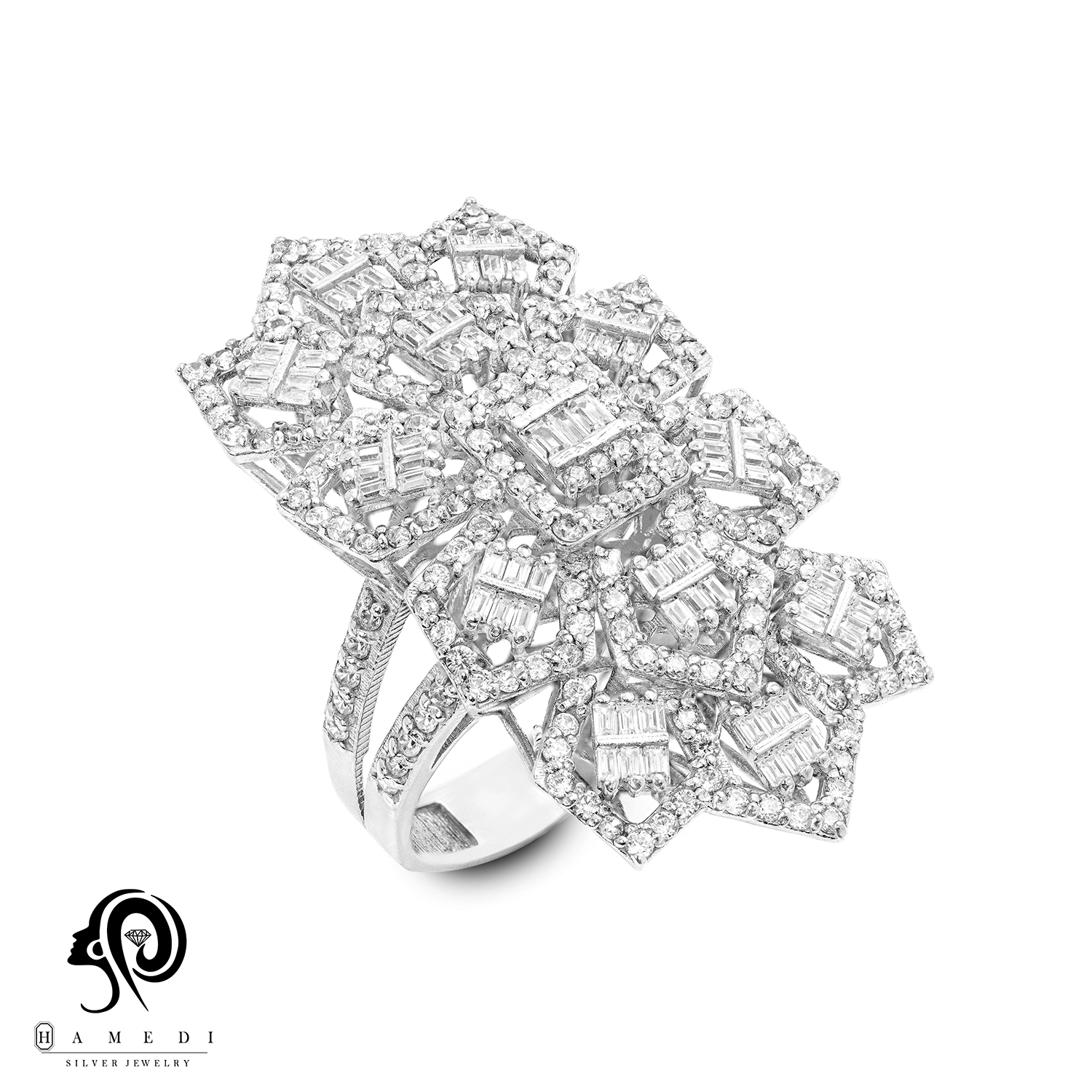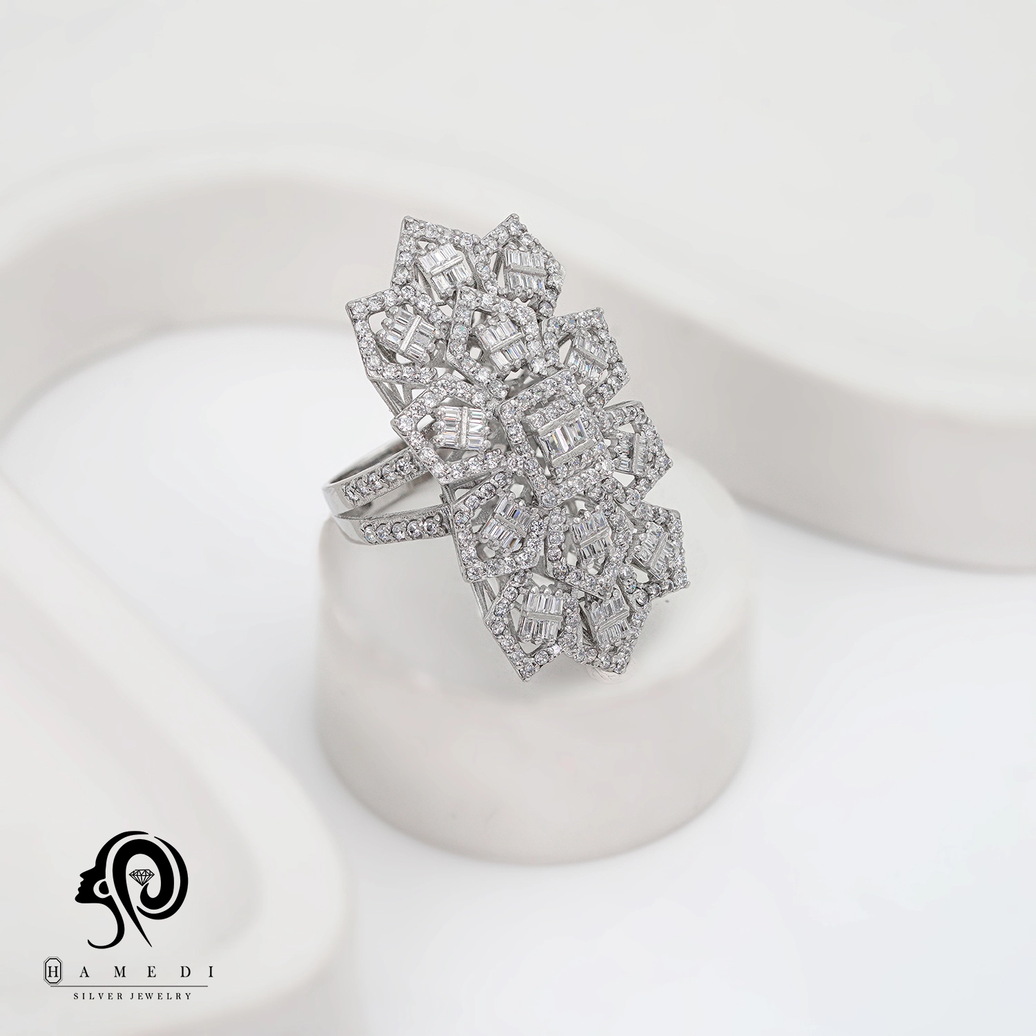 انگشتر نقره زنانه مجلسی جواهری مدل RIL E61 یک اکسسوری زیبا و شیک است که در انواع طرح های مختلف تولید و عرضه می شود. این محصول دارای طرحی منحصر به فرد و خاصی می باشند تا مشتریان بتوانند به راحتی طرح مورد نظر خود را خریداری نمایند.