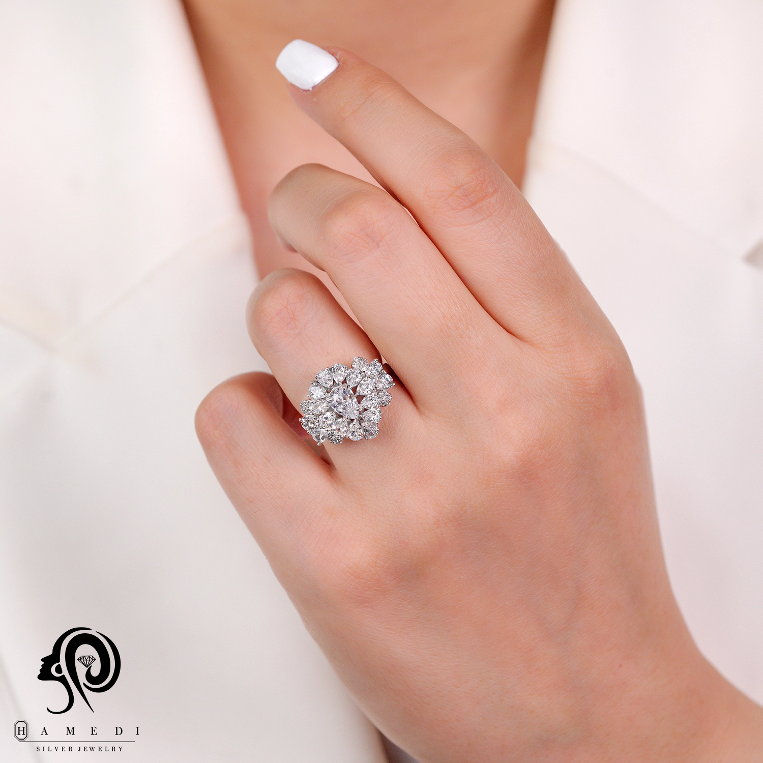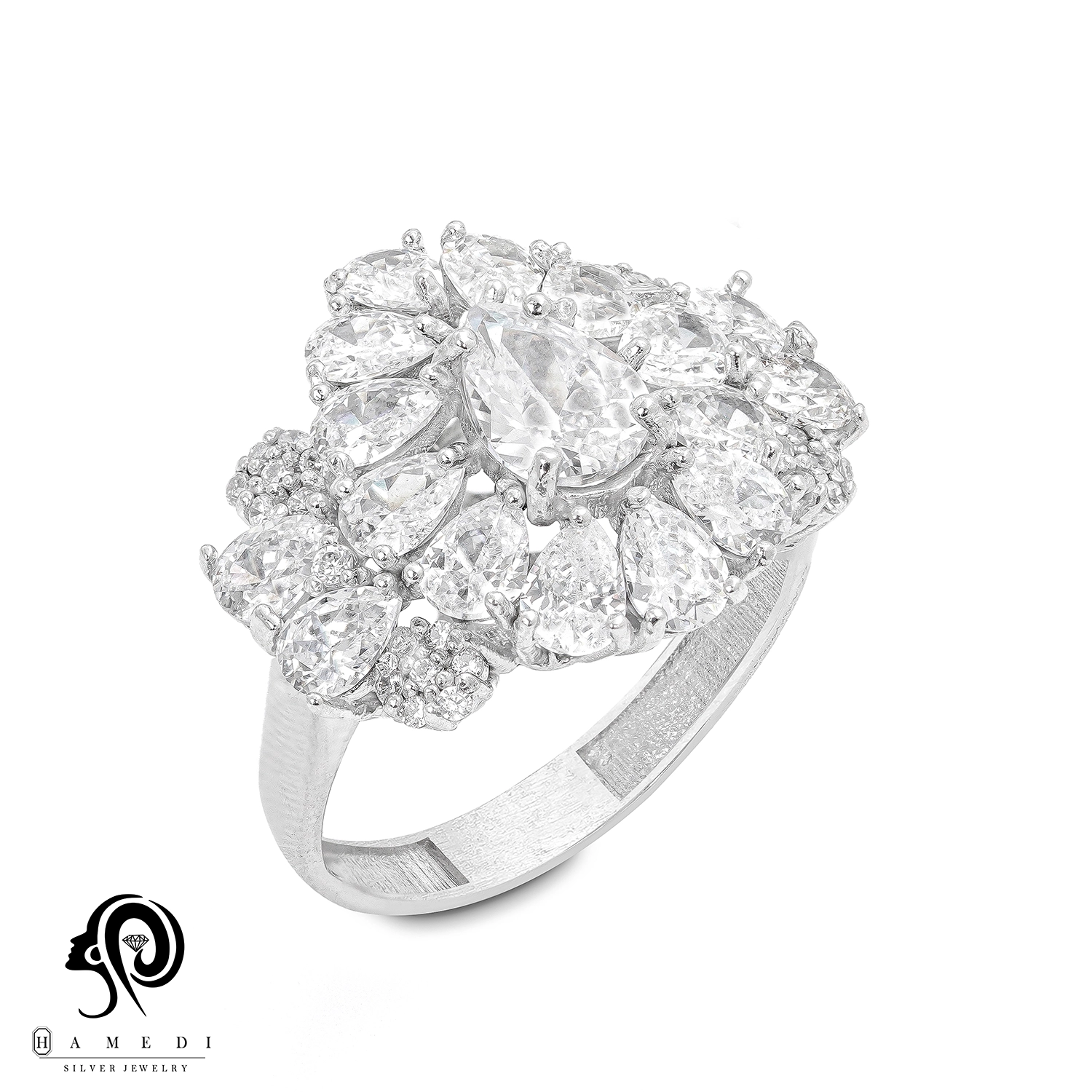 انگشتر نقره زنانه مجلسی جواهری مدل RIL F17 یک اکسسوری زیبا و شیک است که در انواع طرح های مختلف تولید و عرضه می شود. این محصول دارای طرحی منحصر به فرد و خاصی می باشند تا مشتریان بتوانند به راحتی طرح مورد نظر خود را خریداری نمایند.