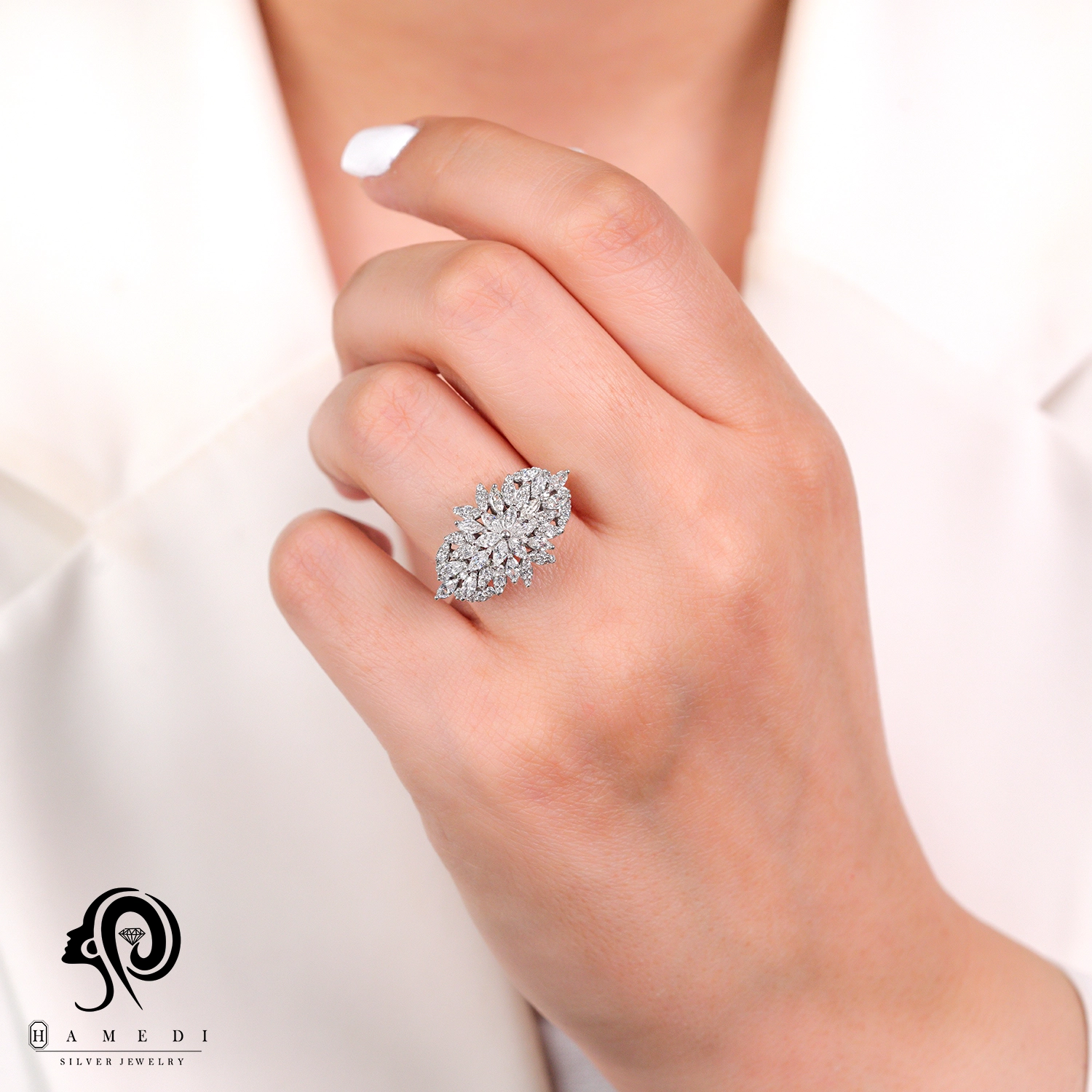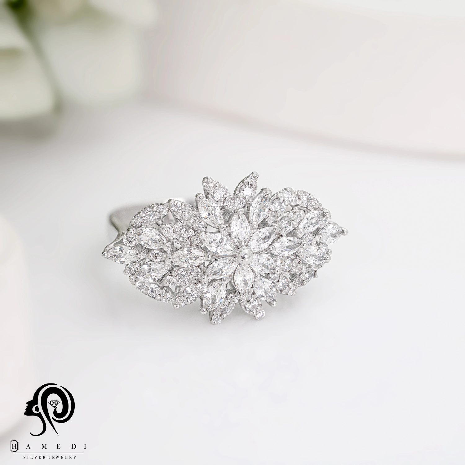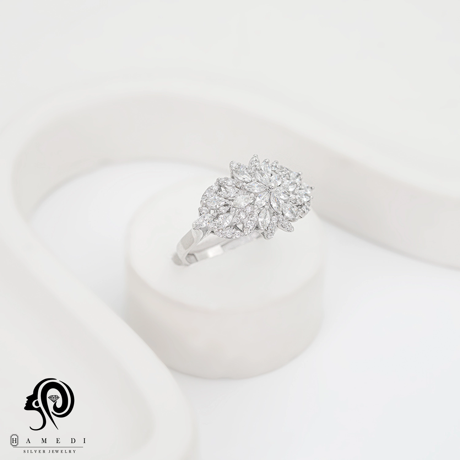 انگشتر نقره زنانه مجلسی جواهری مدل RIL K12 یک اکسسوری زیبا و شیک است که در انواع طرح های مختلف تولید و عرضه می شود. این محصول دارای طرحی منحصر به فرد و خاصی می باشند تا مشتریان بتوانند به راحتی طرح مورد نظر خود را خریداری نمایند.