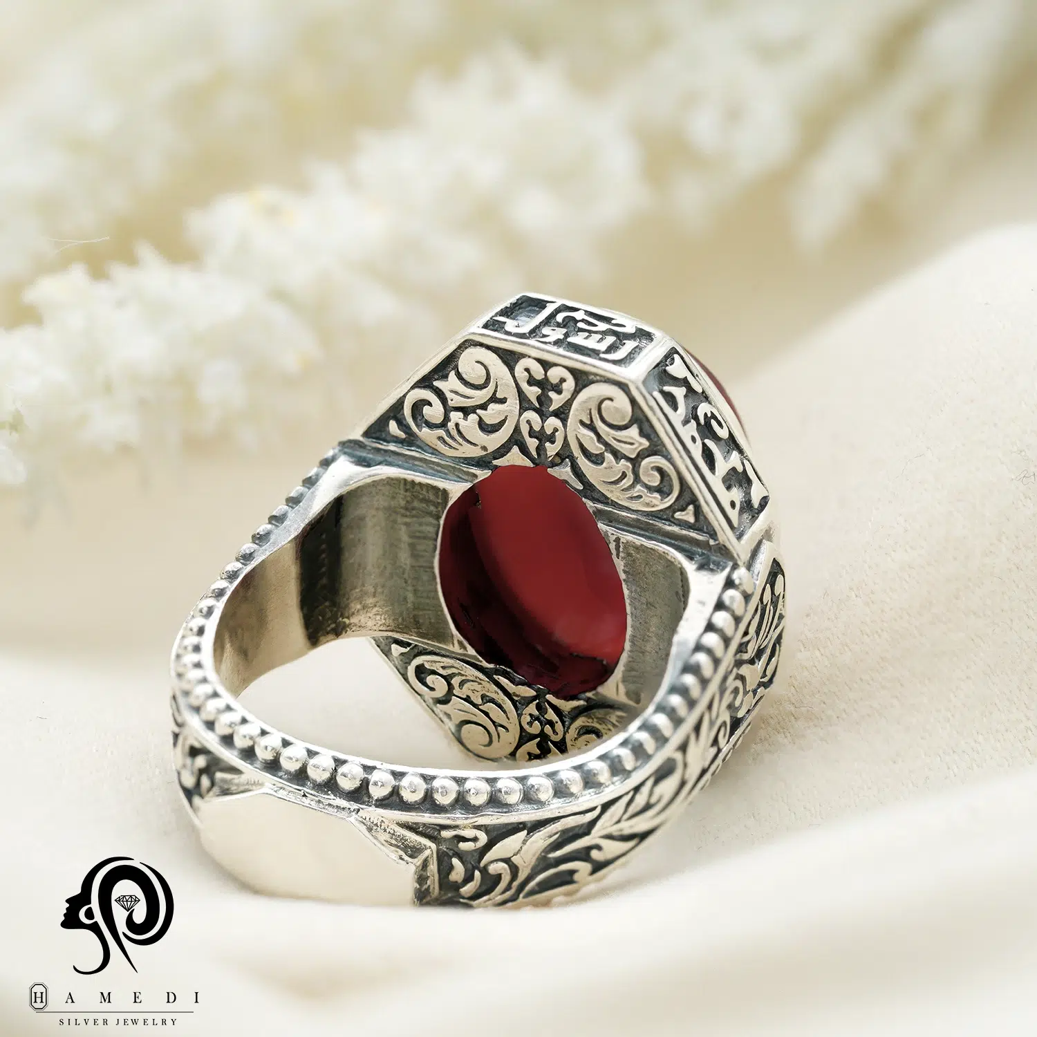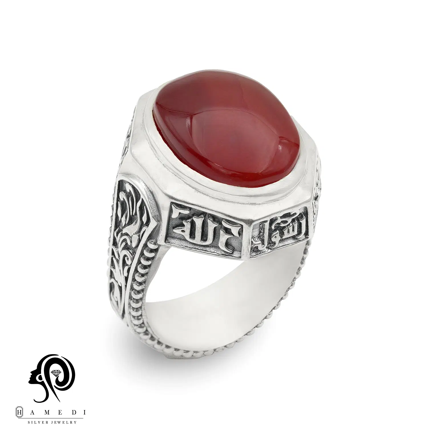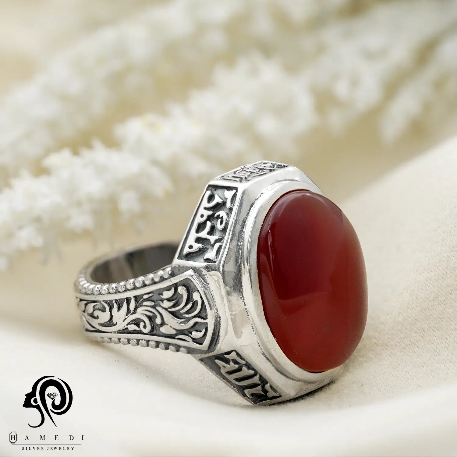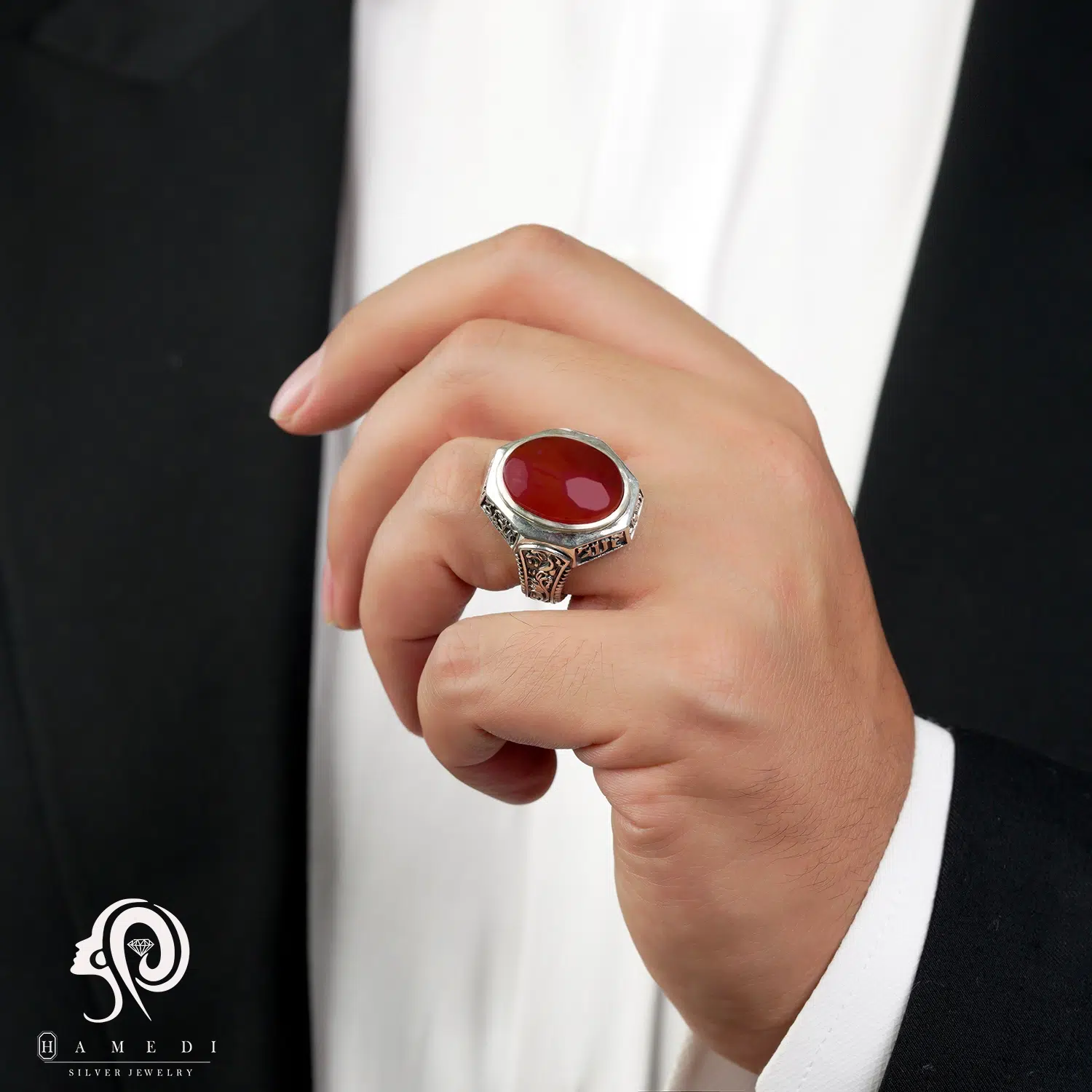 انگشتر عقیق نقره مردانه قرمز مدل RIM AG29 یکی از لوکسترین و پرطرفدارترین انگشتر های عقیق گالری حامدی است.