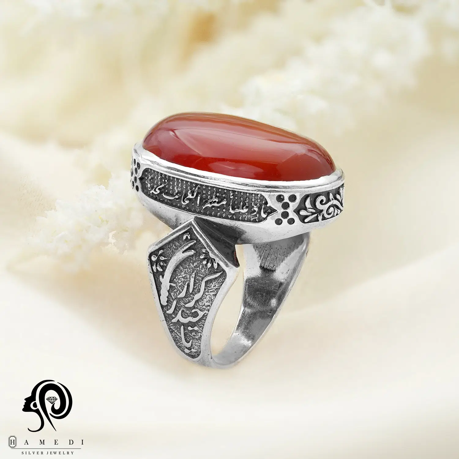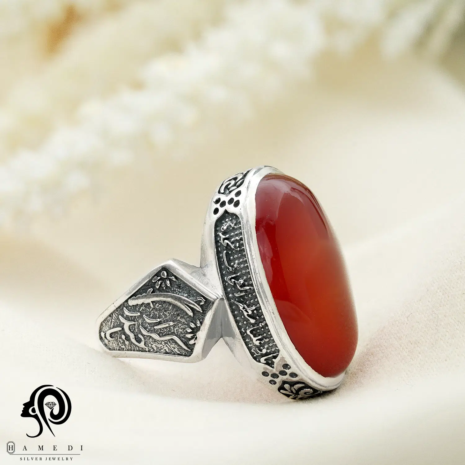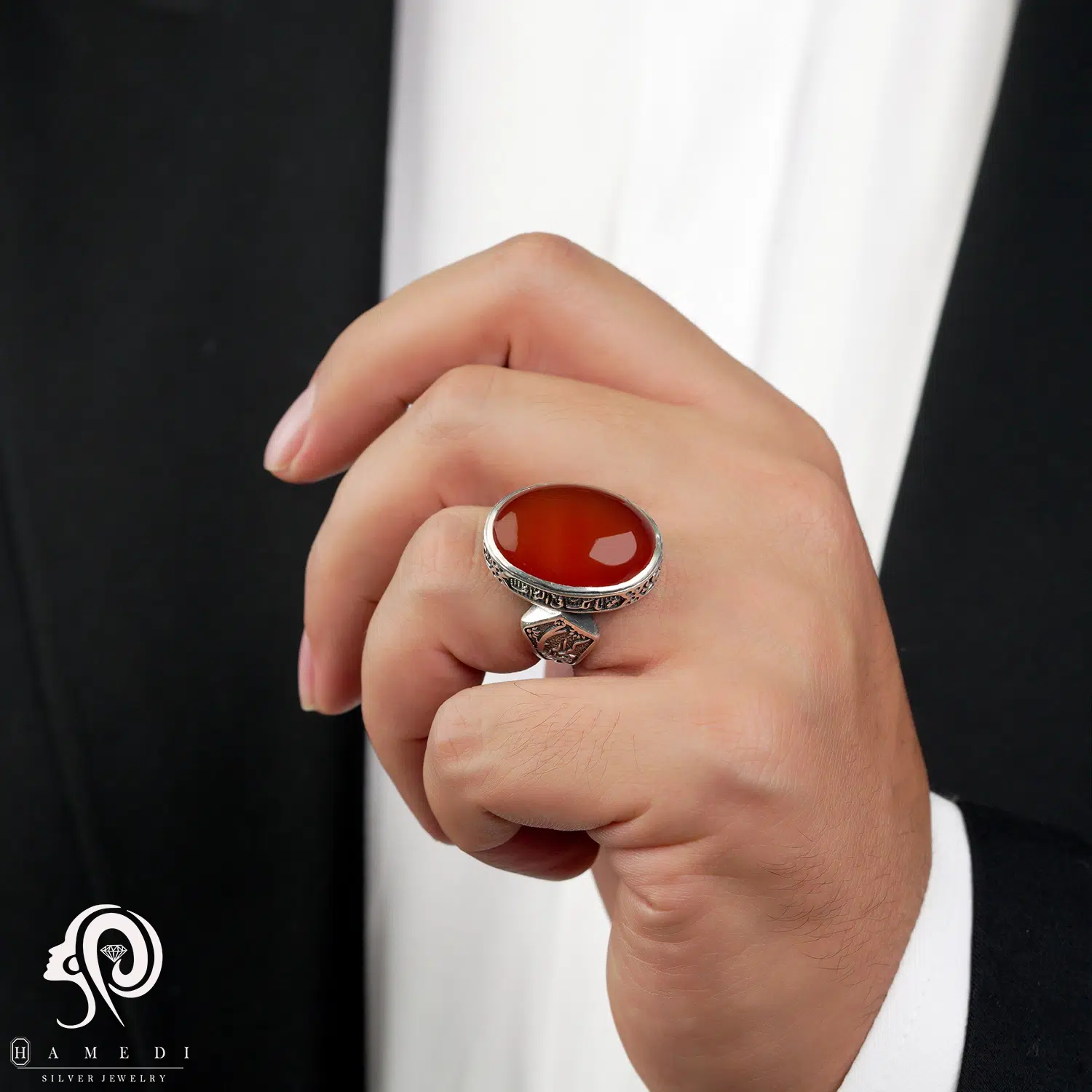 انگشتر عقیق مردانه قرمز نقره مدل RIM AG31 یکی از لوکسترین و پرطرفدارترین انگشتر های عقیق گالری حامدی است.