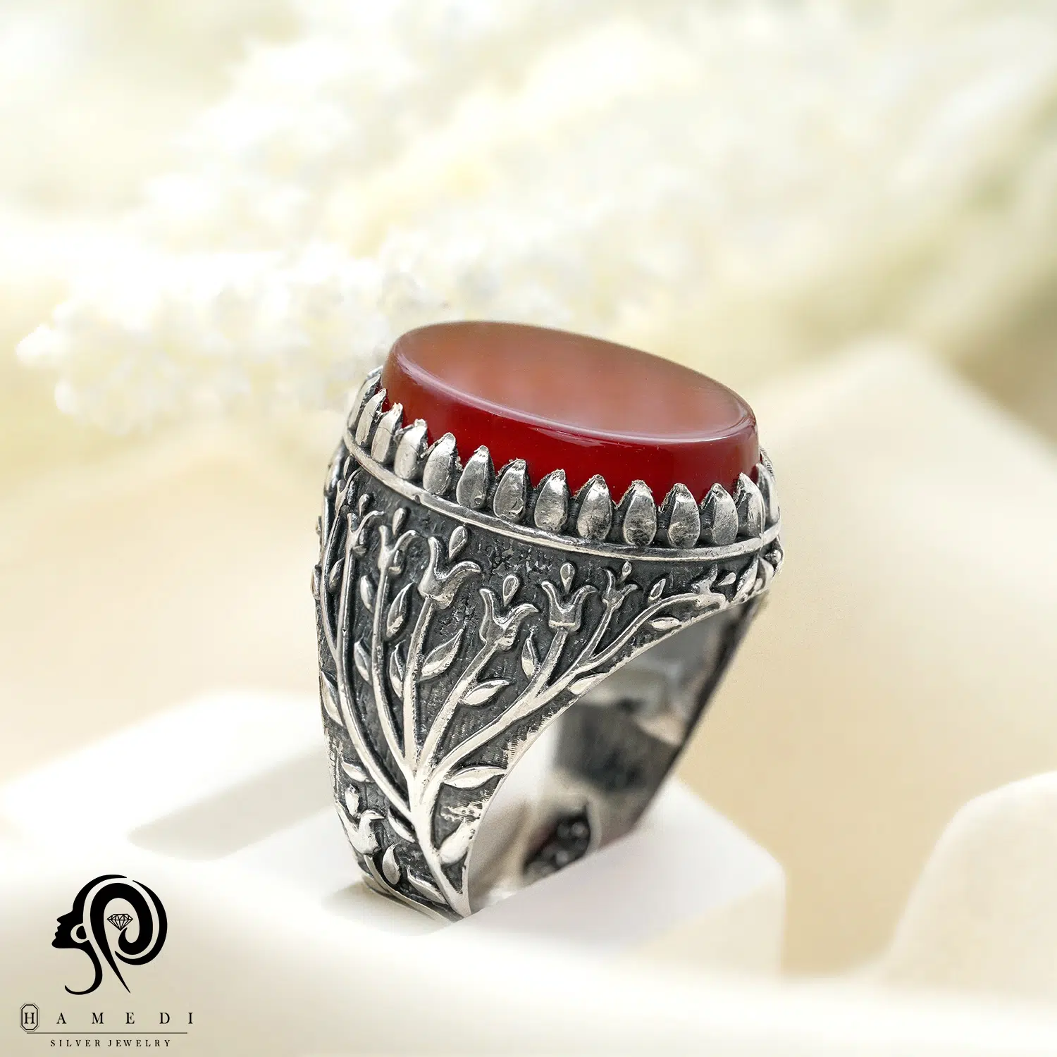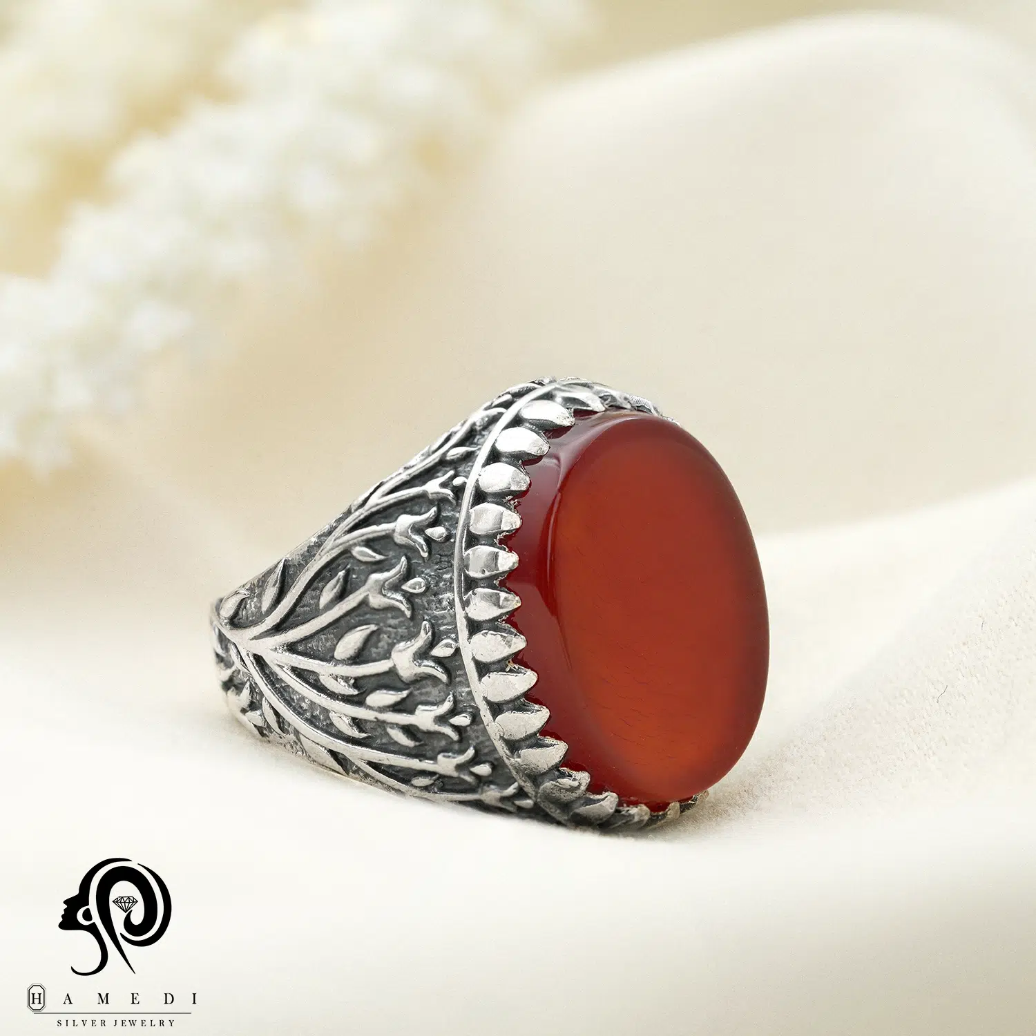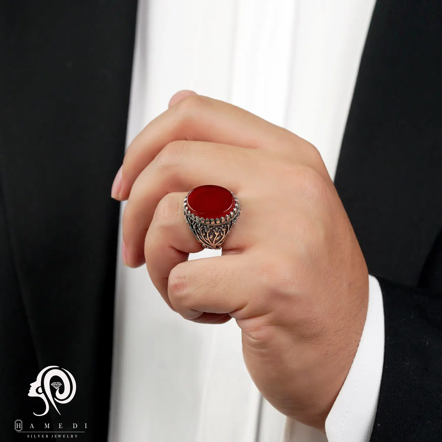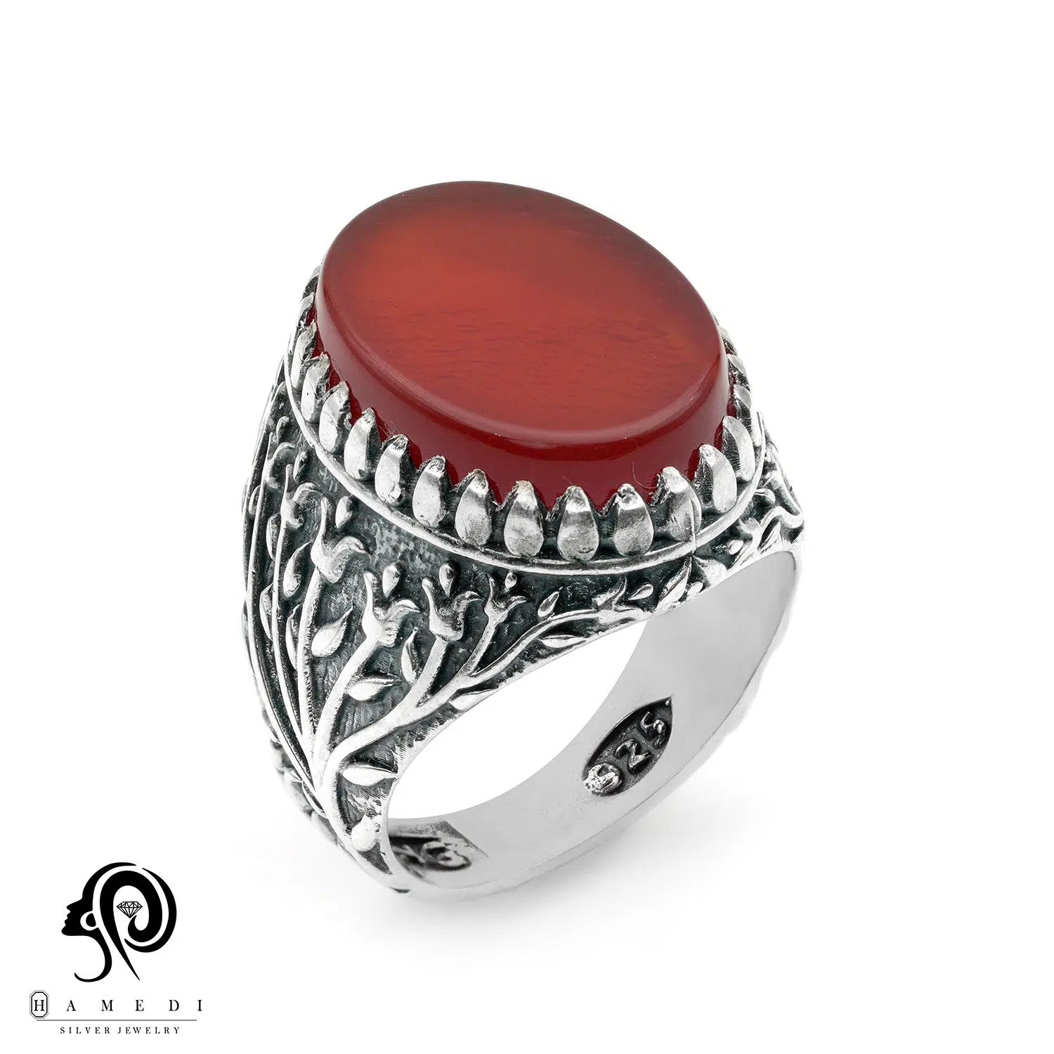 انگشتر عقیق مردانه قرمز نقره مدل RIM AG32 یکی از لوکسترین و پرطرفدارترین انگشتر های عقیق گالری حامدی است.