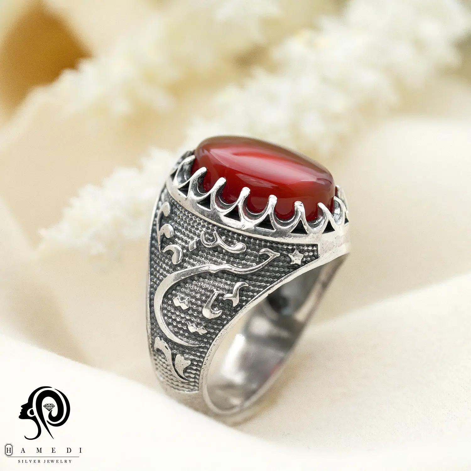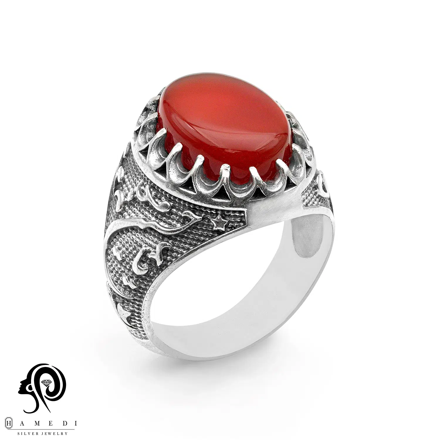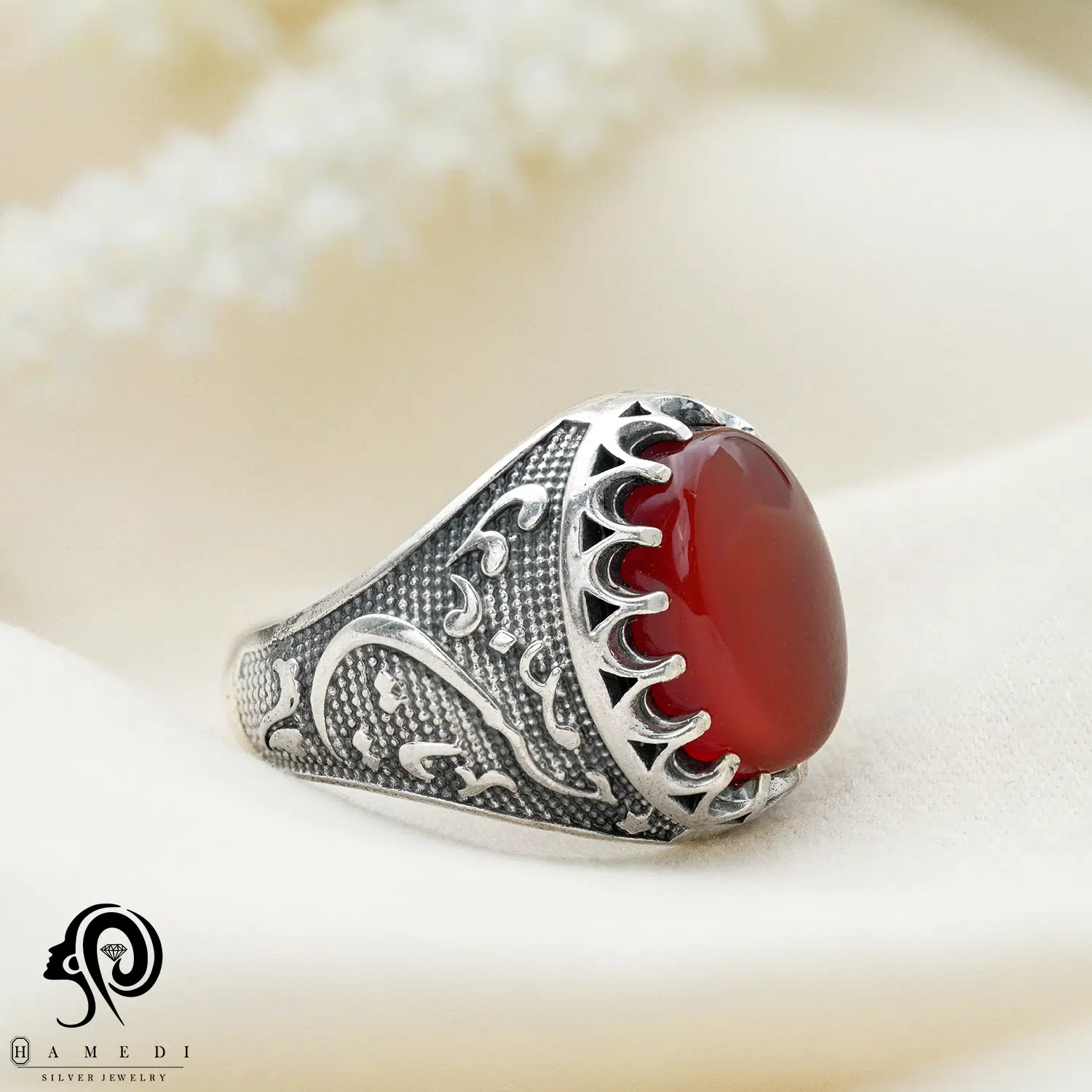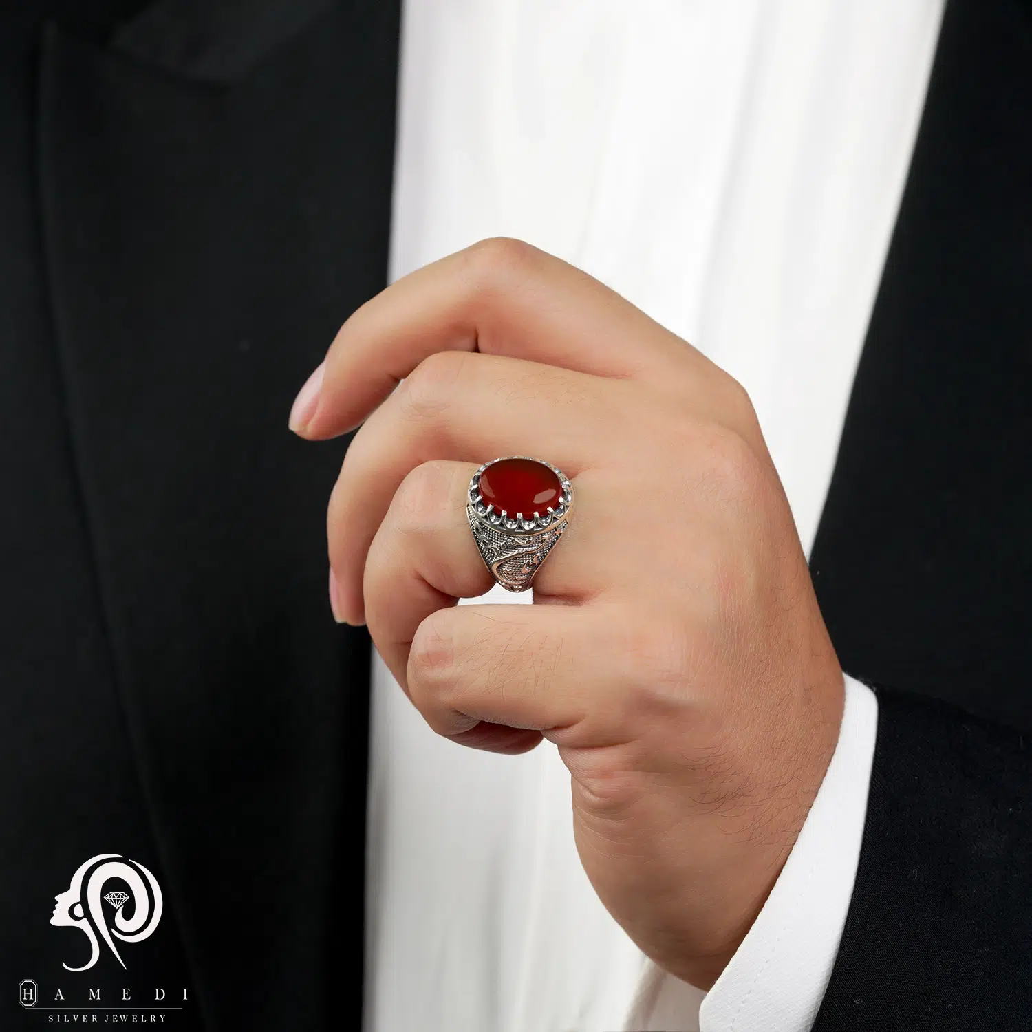 انگشتر عقیق مردانه قرمز نقره مدل RIM AG33 یکی از لوکسترین و پرطرفدارترین انگشتر های عقیق گالری حامدی است.