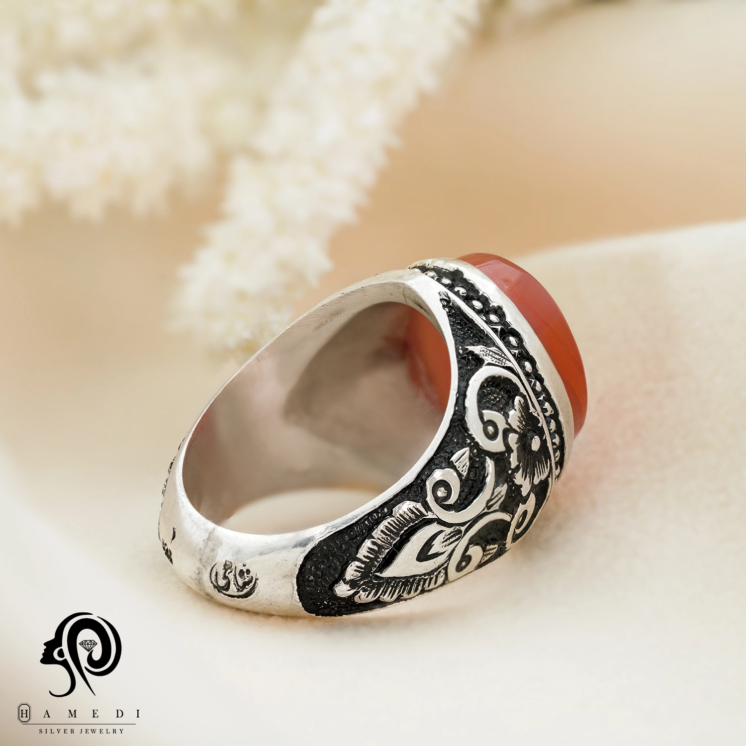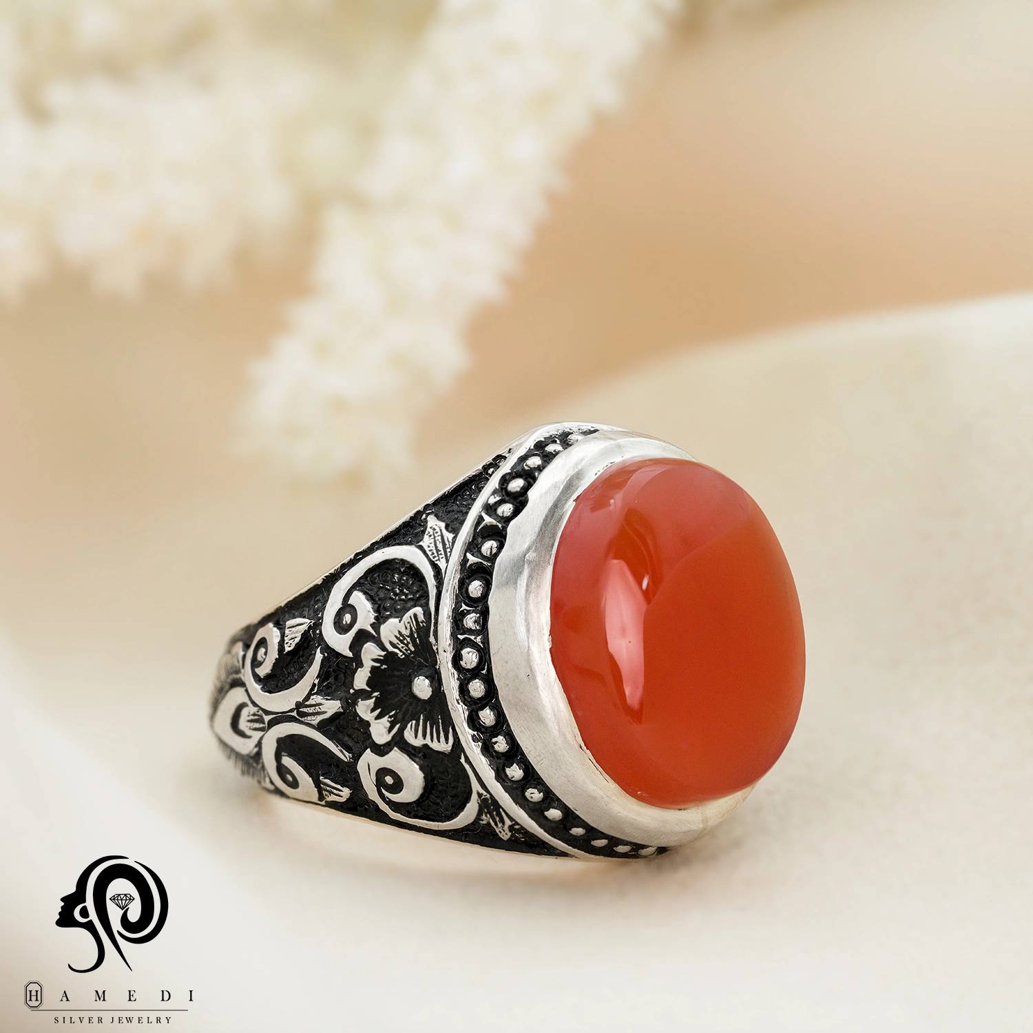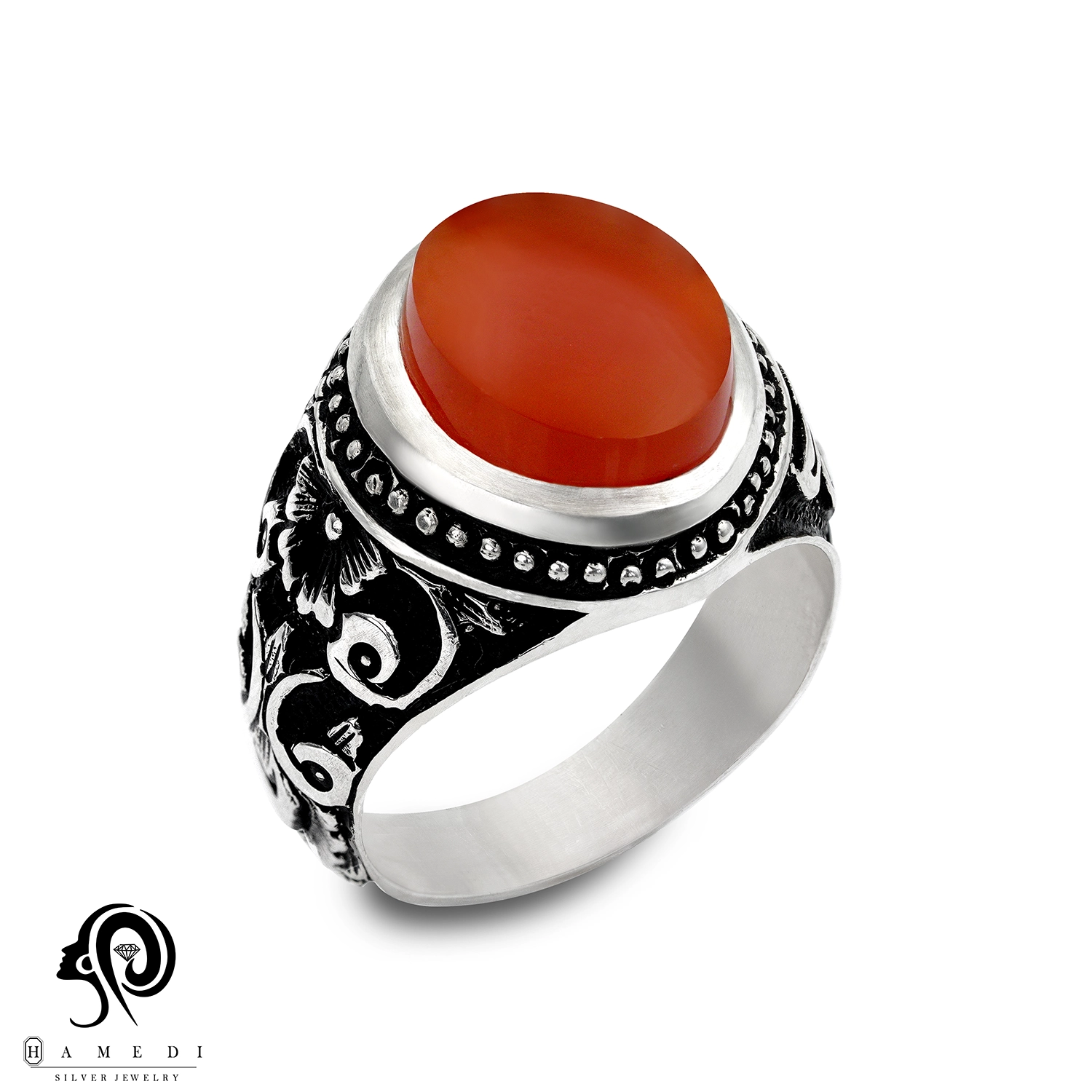 انگشتر عقیق مردانه قرمز نقره مدل RIM AG40 یکی از لوکسترین و پرطرفدارترین انگشتر های عقیق گالری حامدی است.