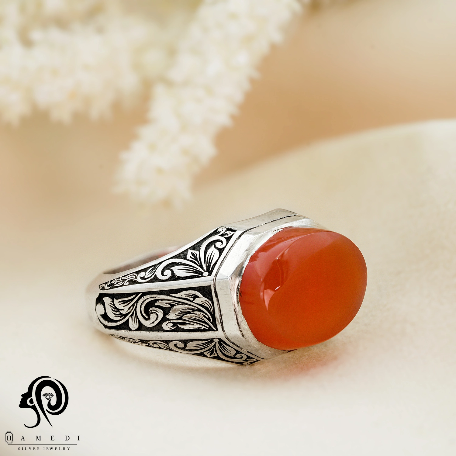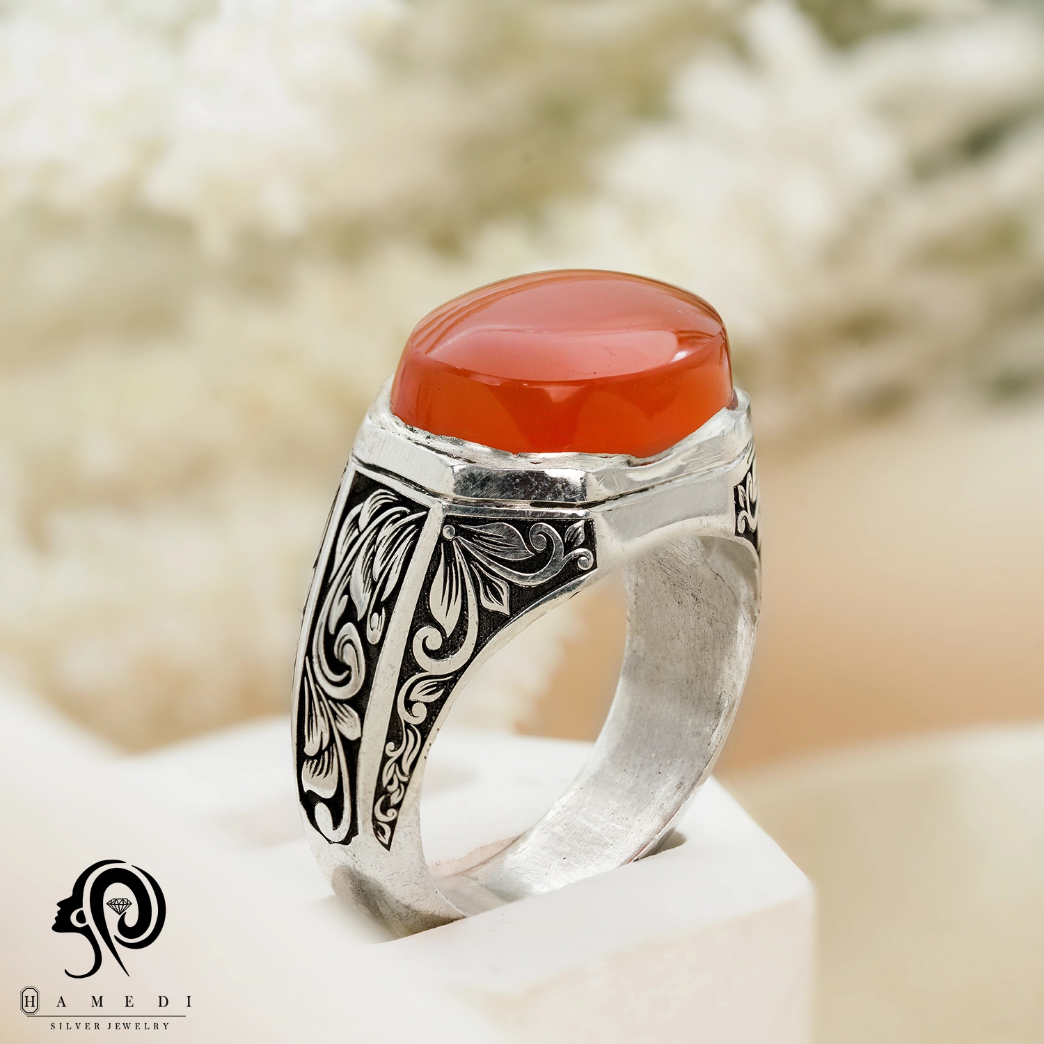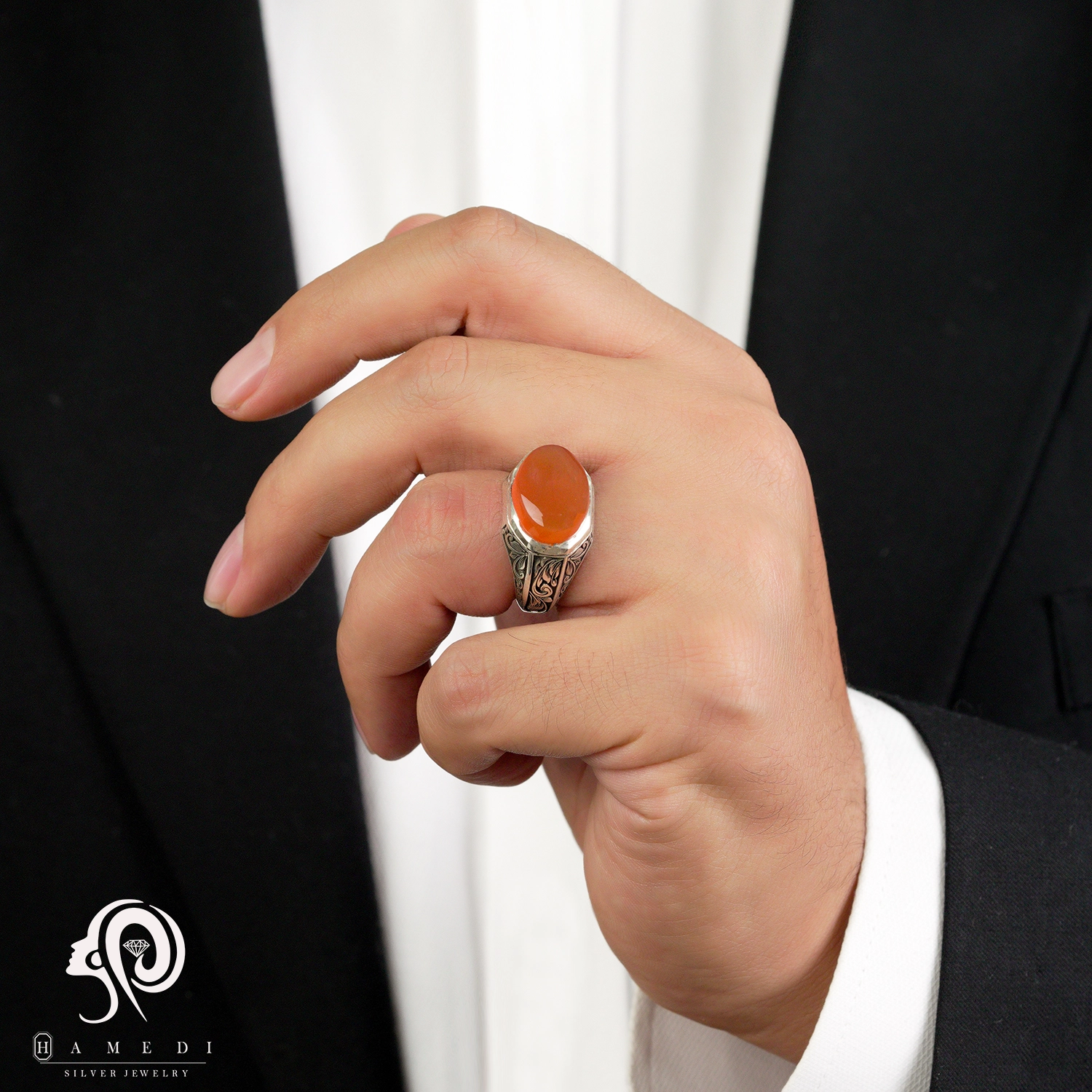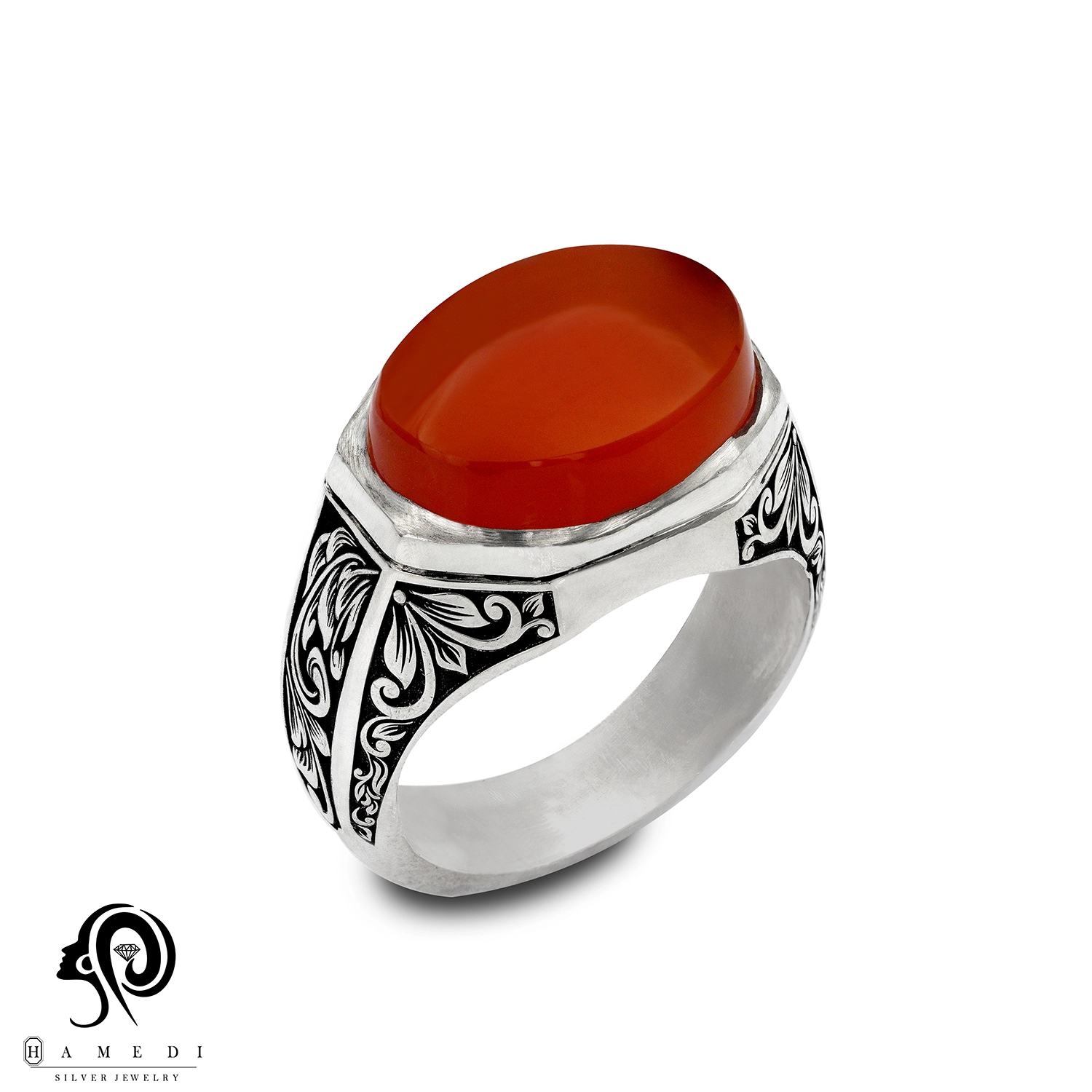 انگشتر عقیق قرمز نقره مردانه مدل RIM AG43 یکی از لوکسترین و پرطرفدارترین انگشتر های عقیق گالری حامدی است.