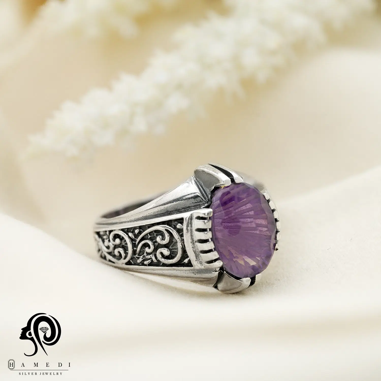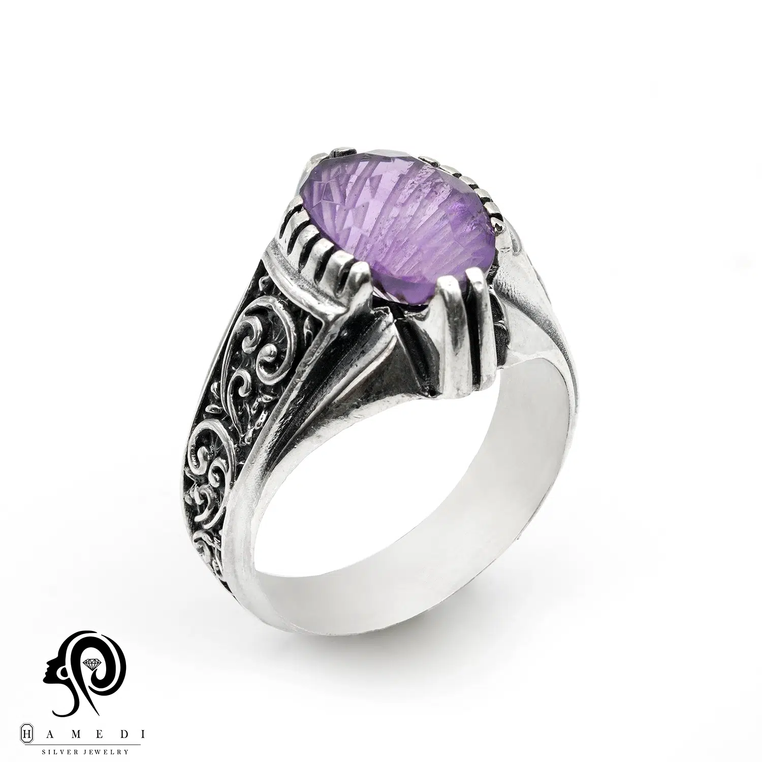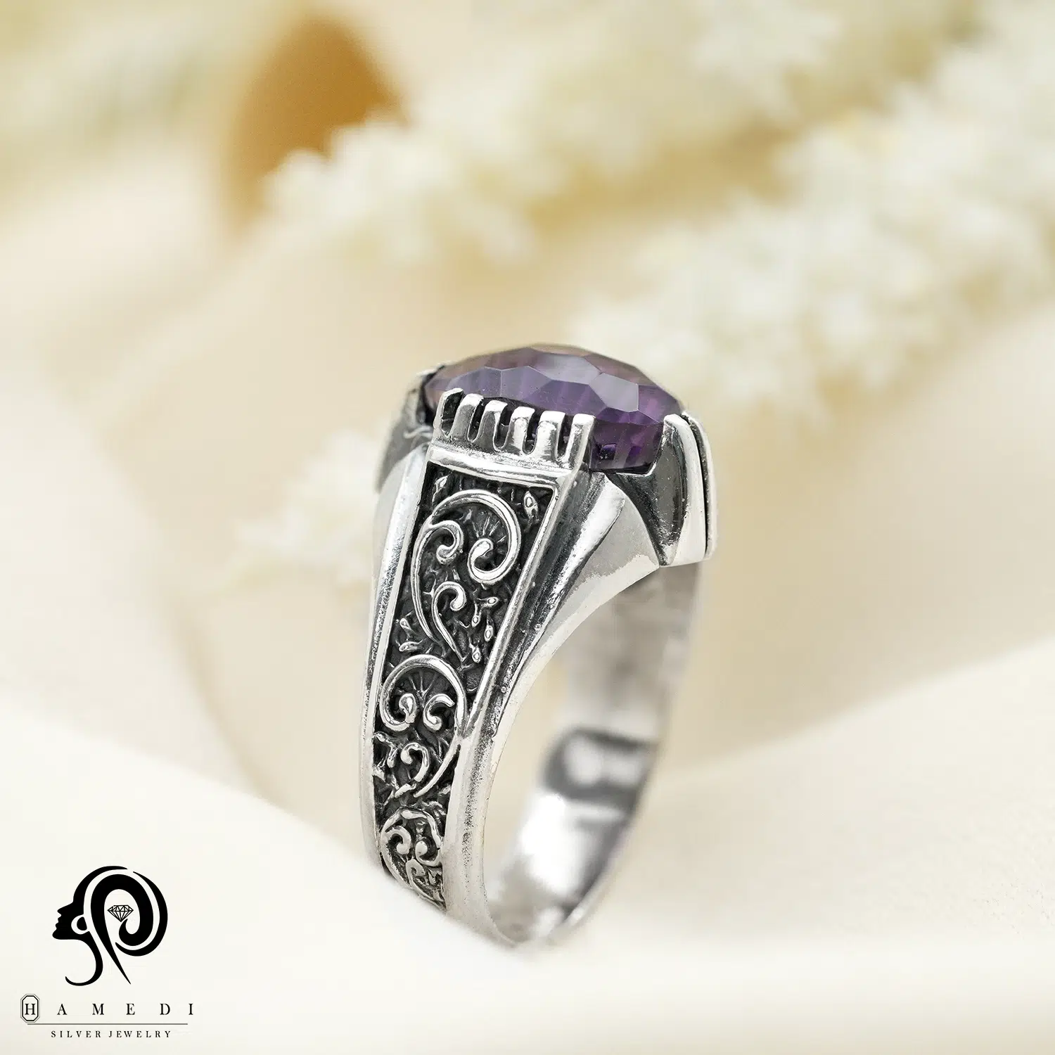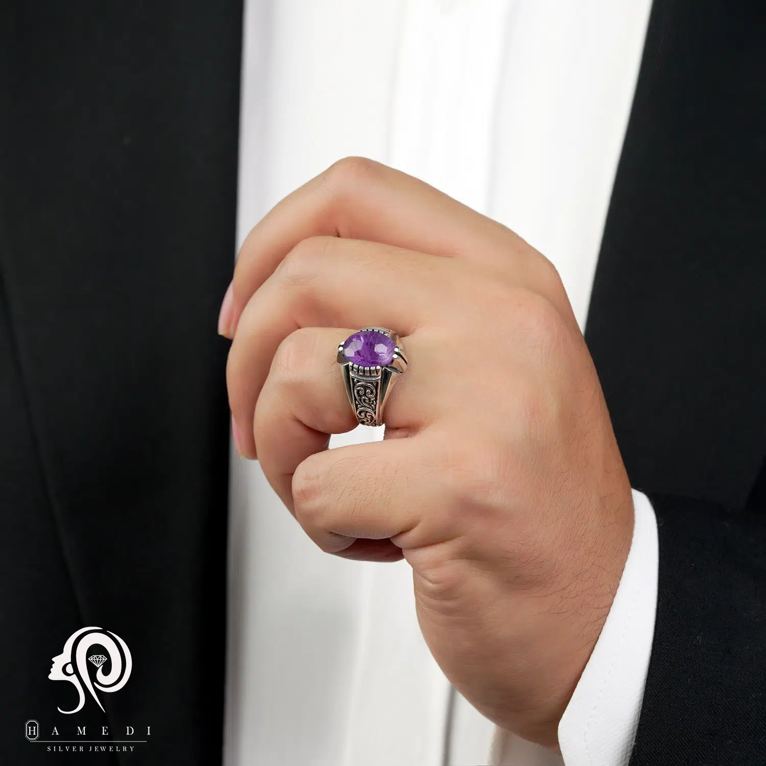 انگشتر نقره مردانه آمیتیست مدل RIM AM5 یکی از لوکسترین و پرطرفدارترین انگشتر های آمیتیست گالری حامدی است.
