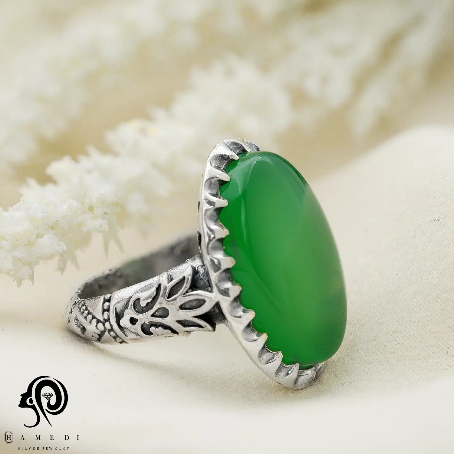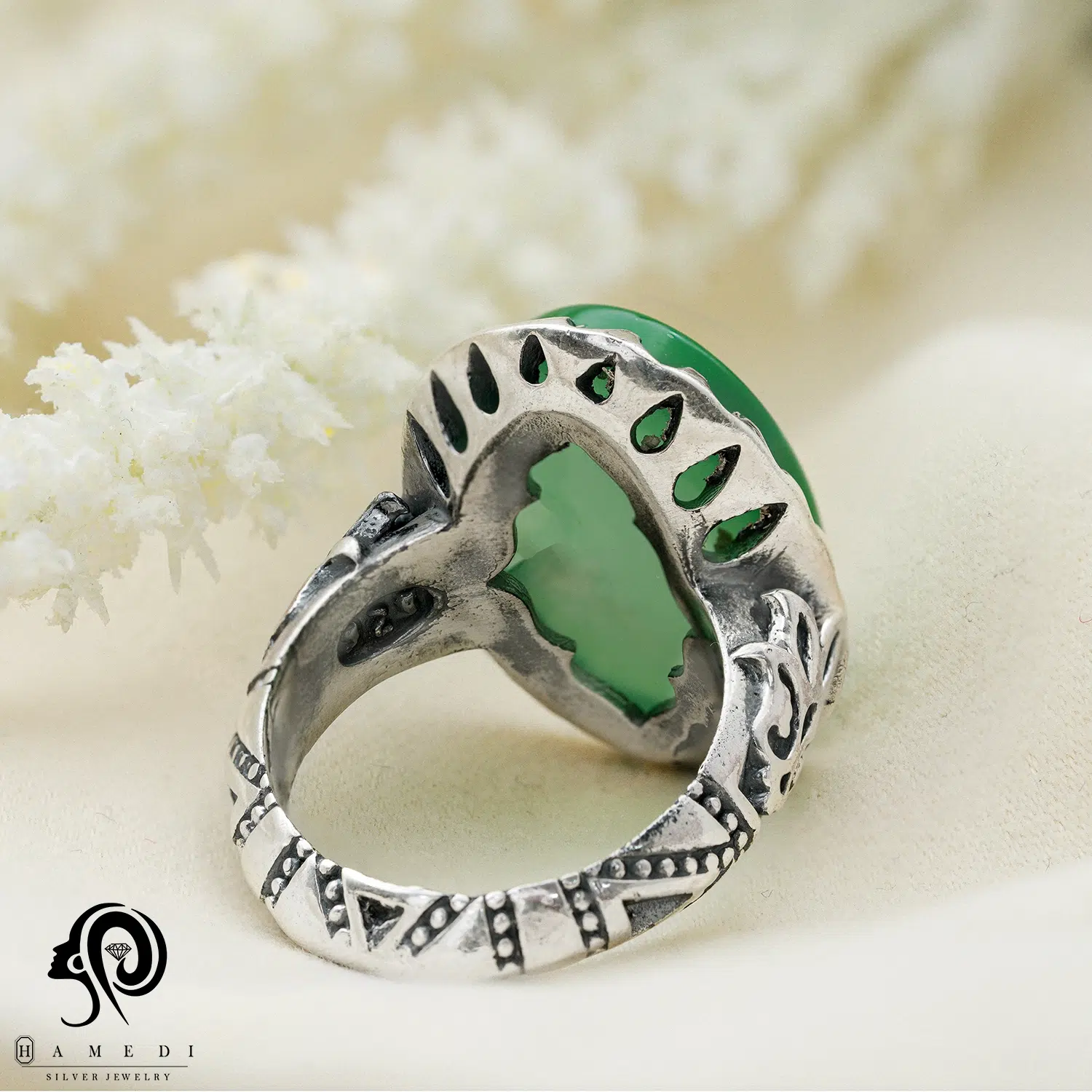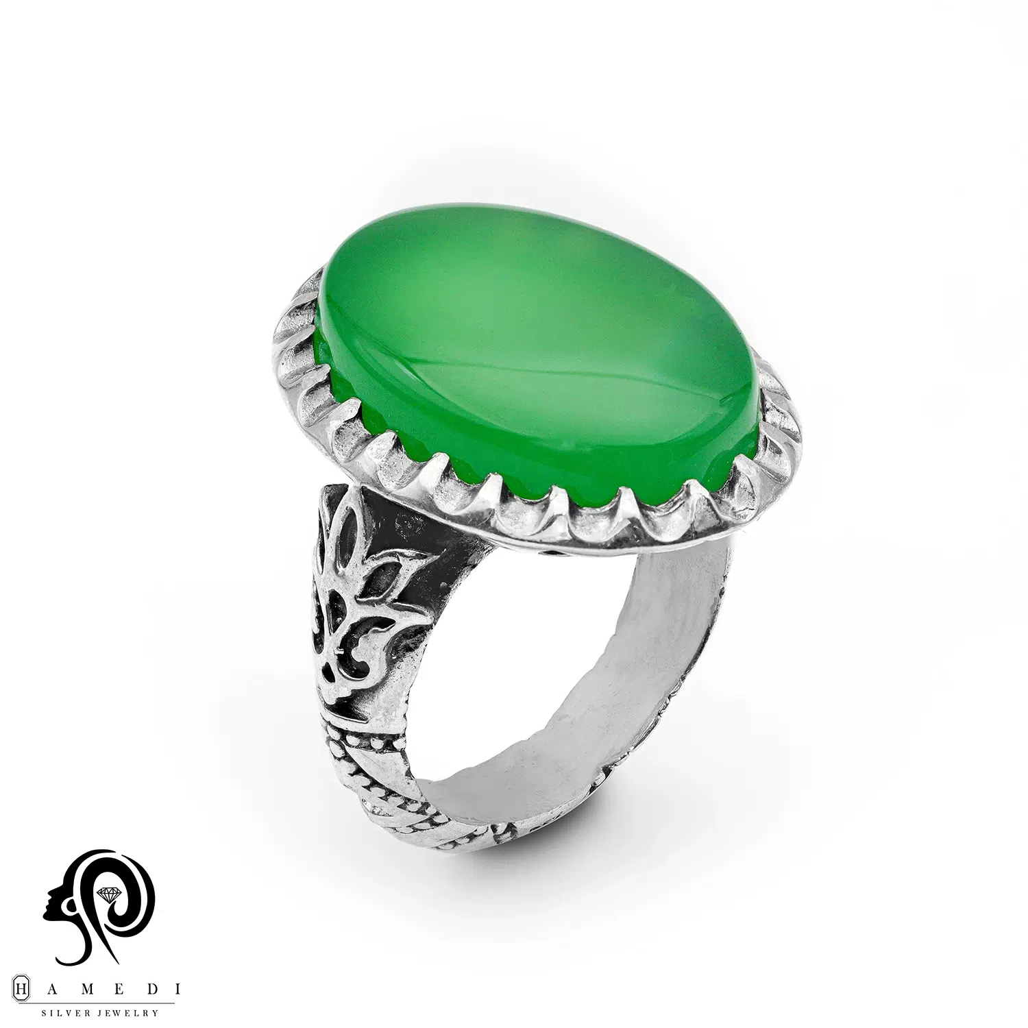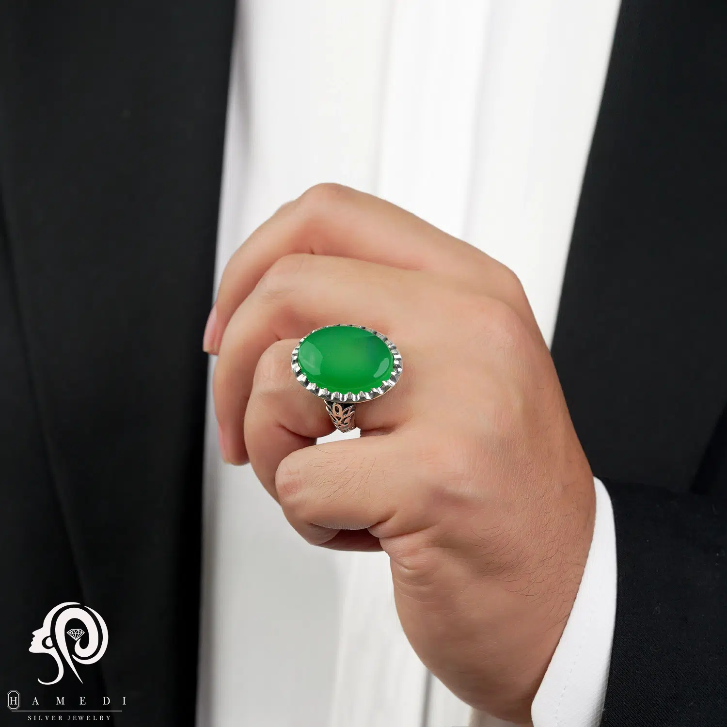 انگشتر نقره مردانه عقیق سبز مدل RIM AS12 یکی از لوکسترین و پرطرفدارترین انگشتر های عقیق گالری حامدی است.