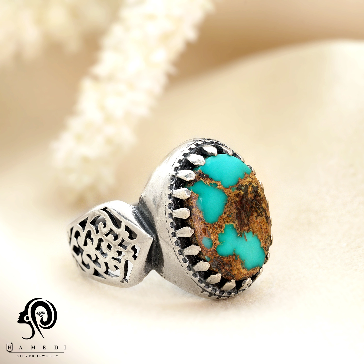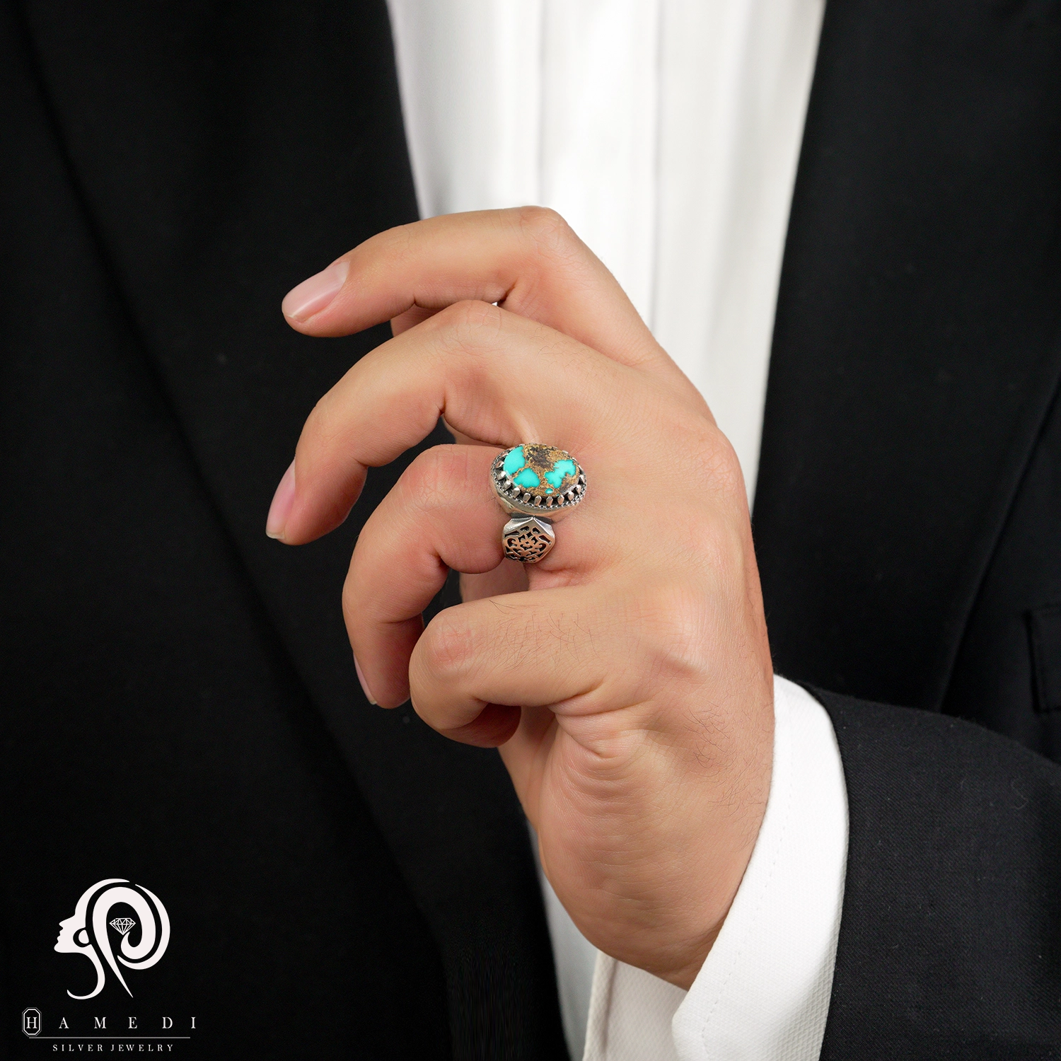 انگشتر فیروزه مردانه نقره اصل مدل RIM FI13 یکی از لوکسترین و پرطرفدارترین انگشتر های فیروزه گالری حامدی است.