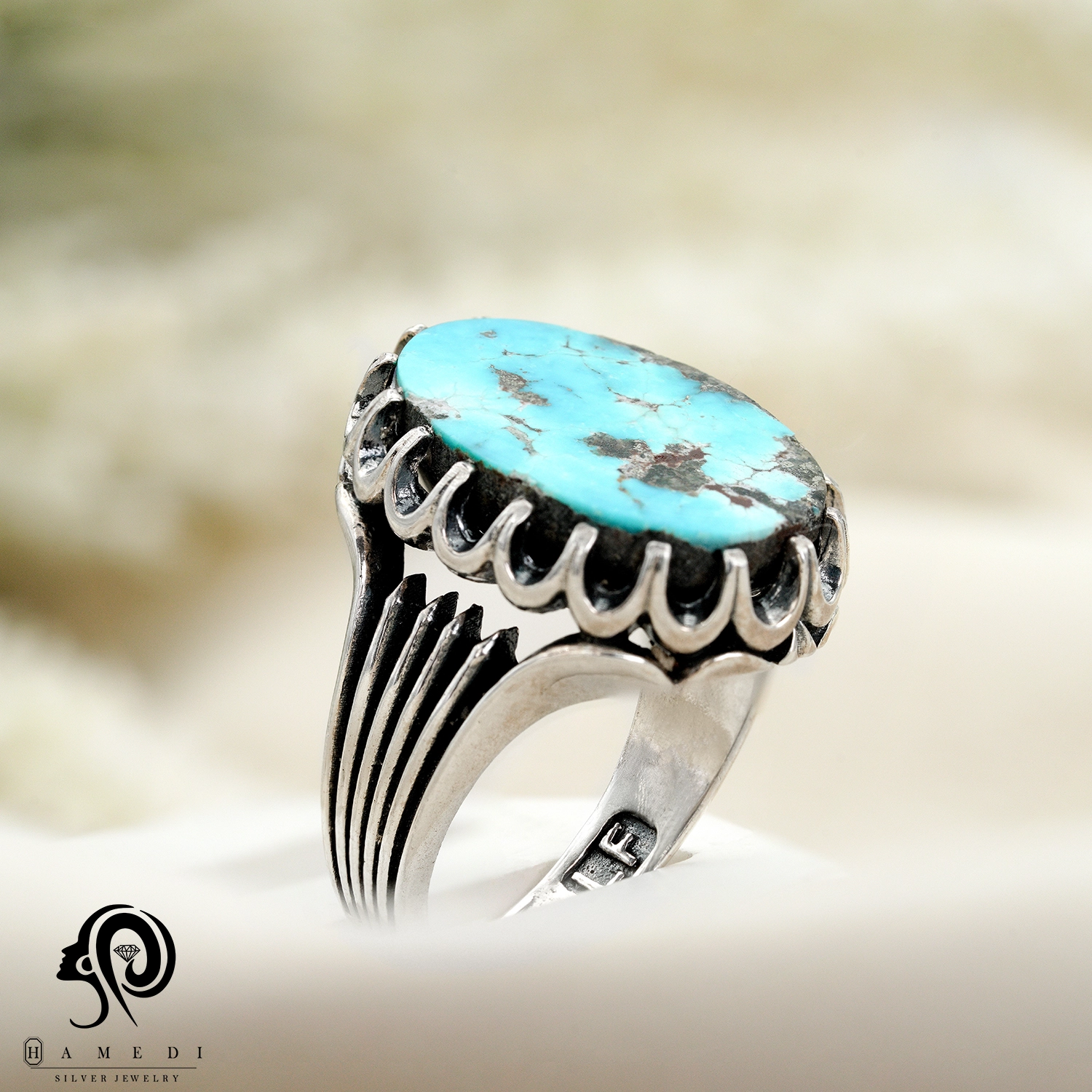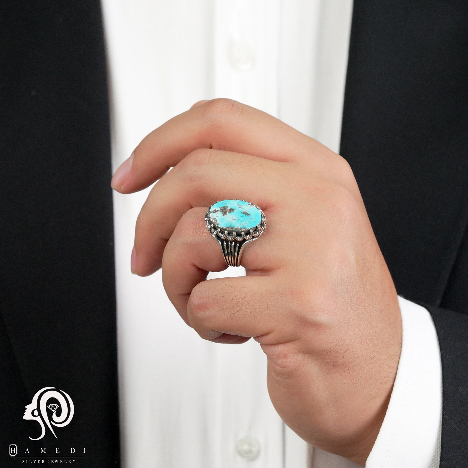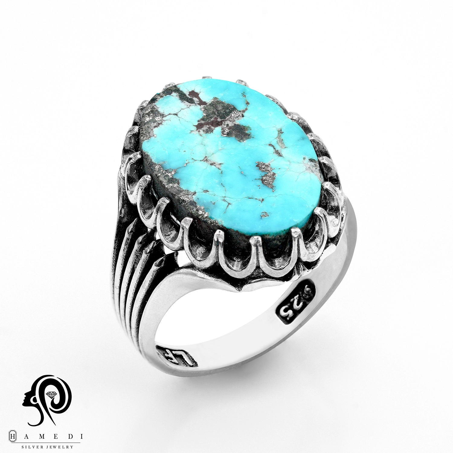 انگشتر فیروزه اصل نقره مردانه مدل RIM FI14 یکی از لوکسترین و پرطرفدارترین انگشتر های فیروزه گالری حامدی است.