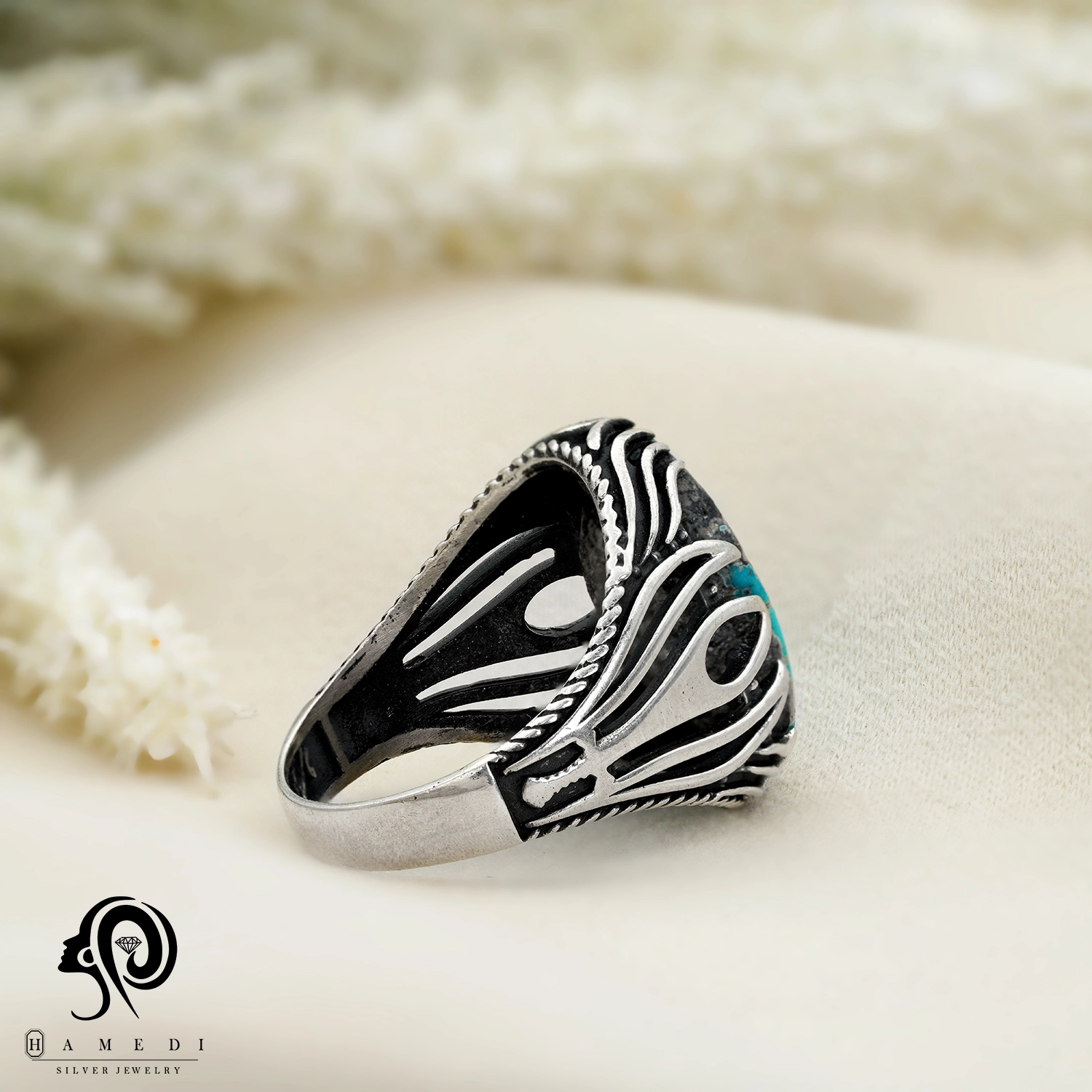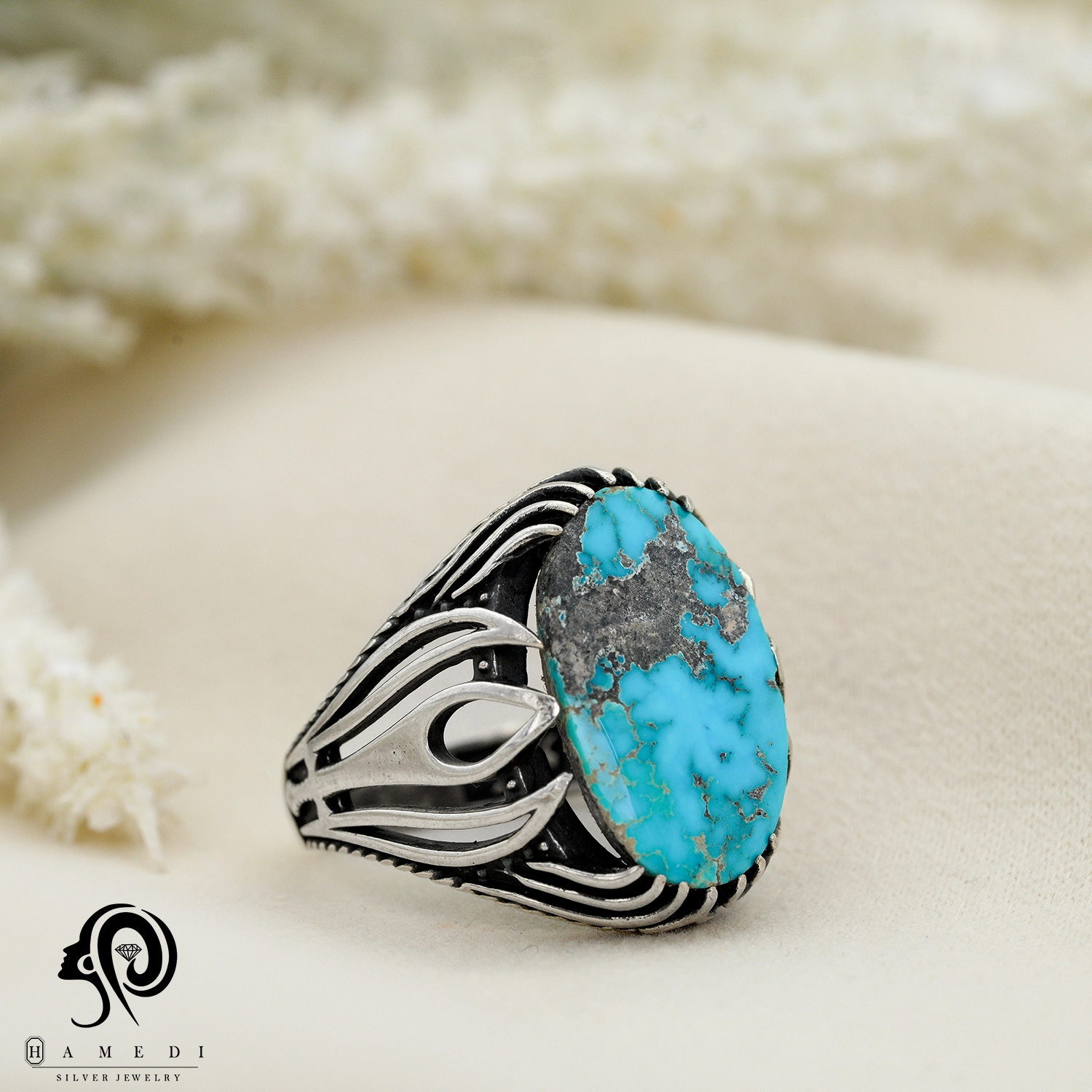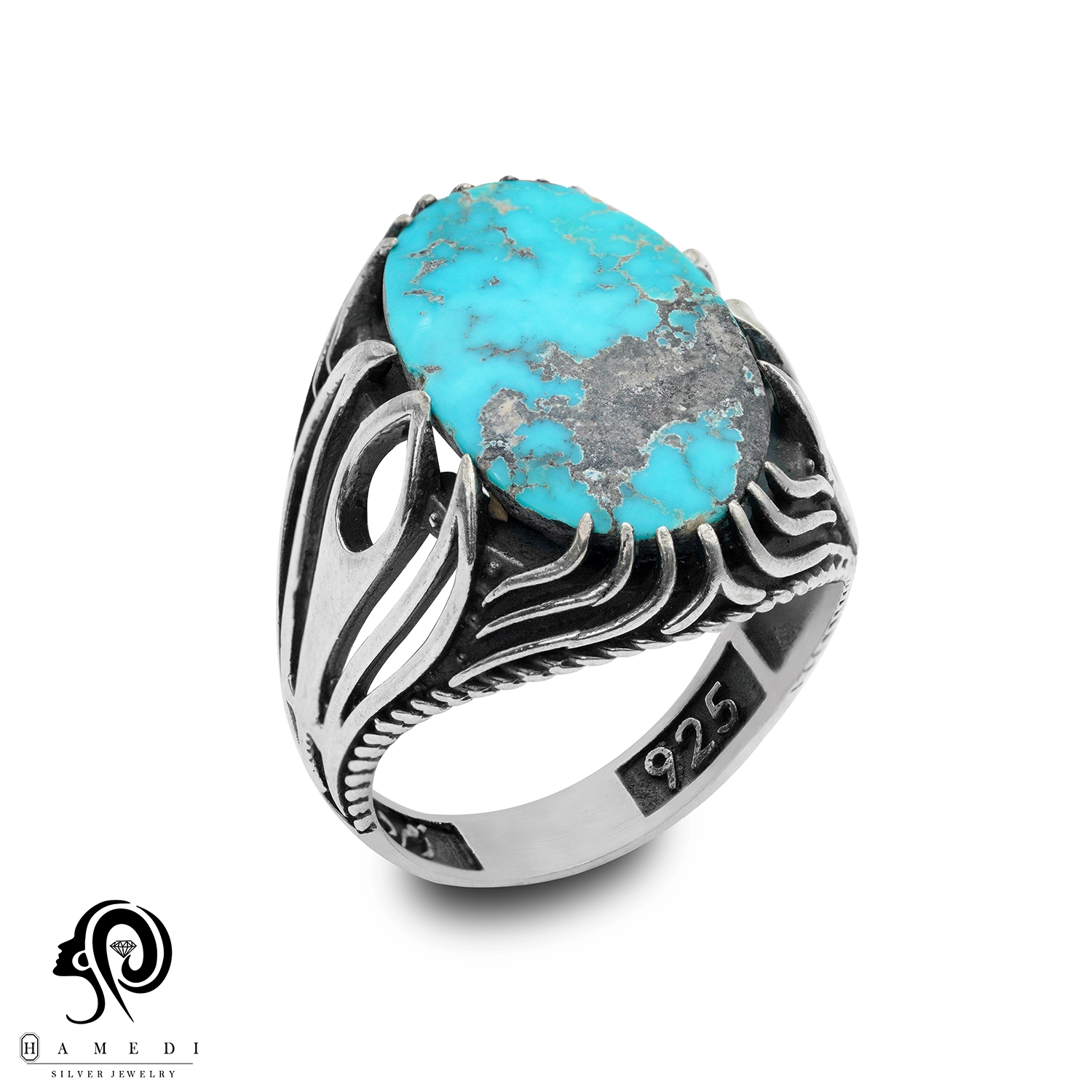 انگشتر فیروزه اصل نقره مردانه مدل RIM FI26 یکی از لوکسترین و پرطرفدارترین انگشتر های فیروزه گالری حامدی است.