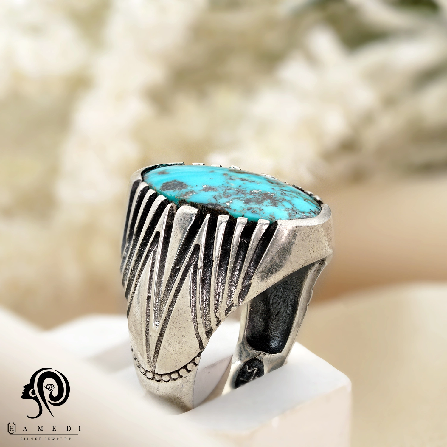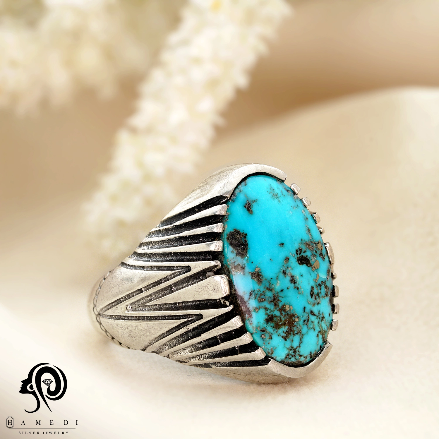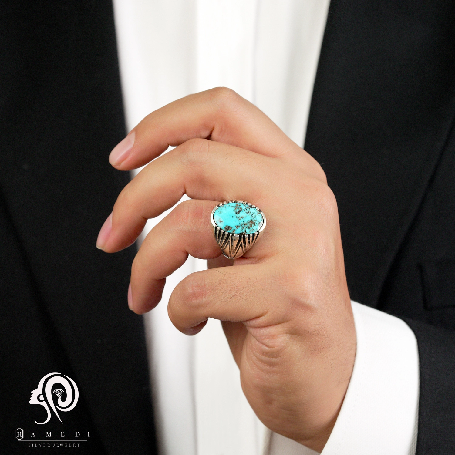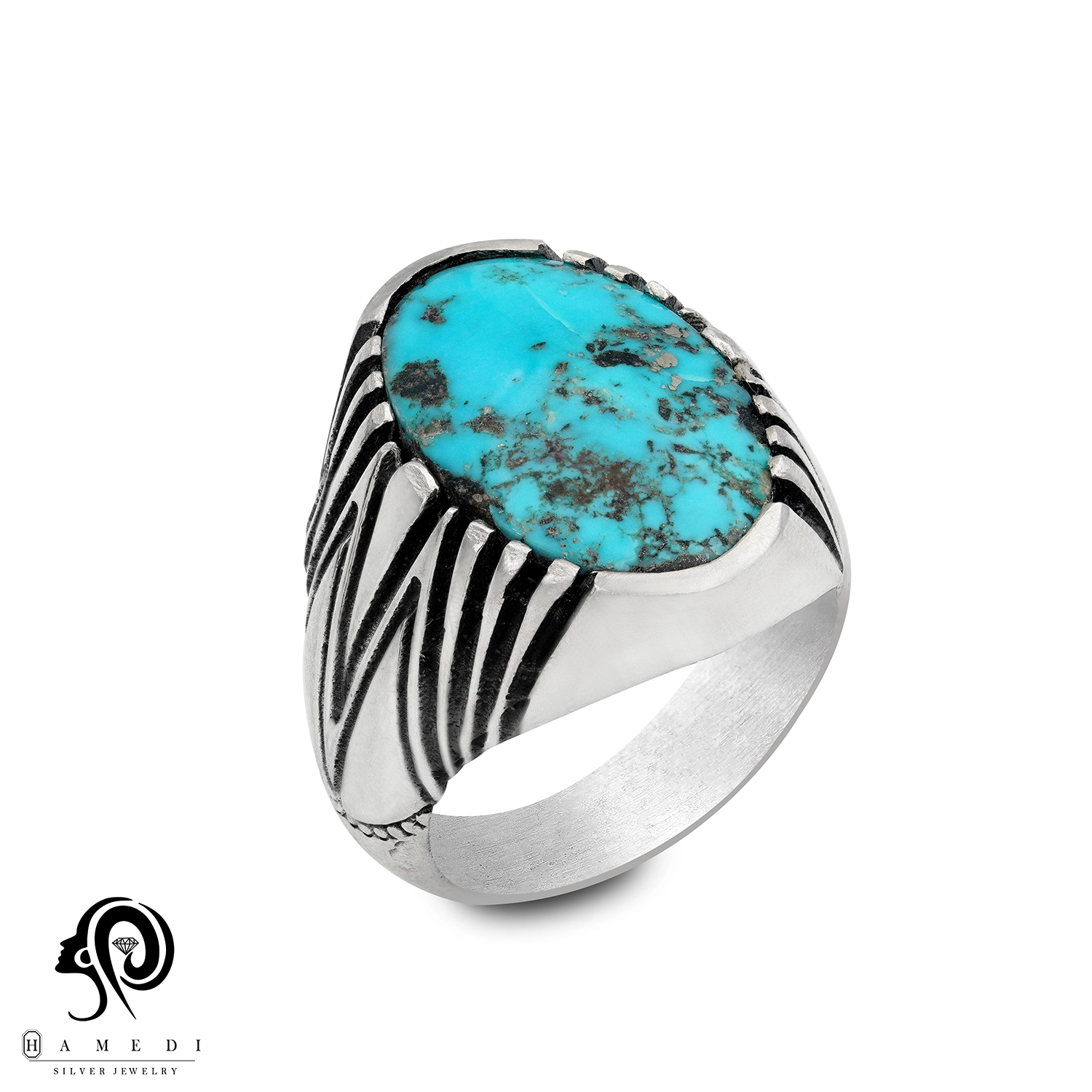 انگشتر فیروزه مردانه نقره اصل مدل RIM FI33 یکی از لوکسترین و پرطرفدارترین انگشتر های فیروزه گالری حامدی است.
