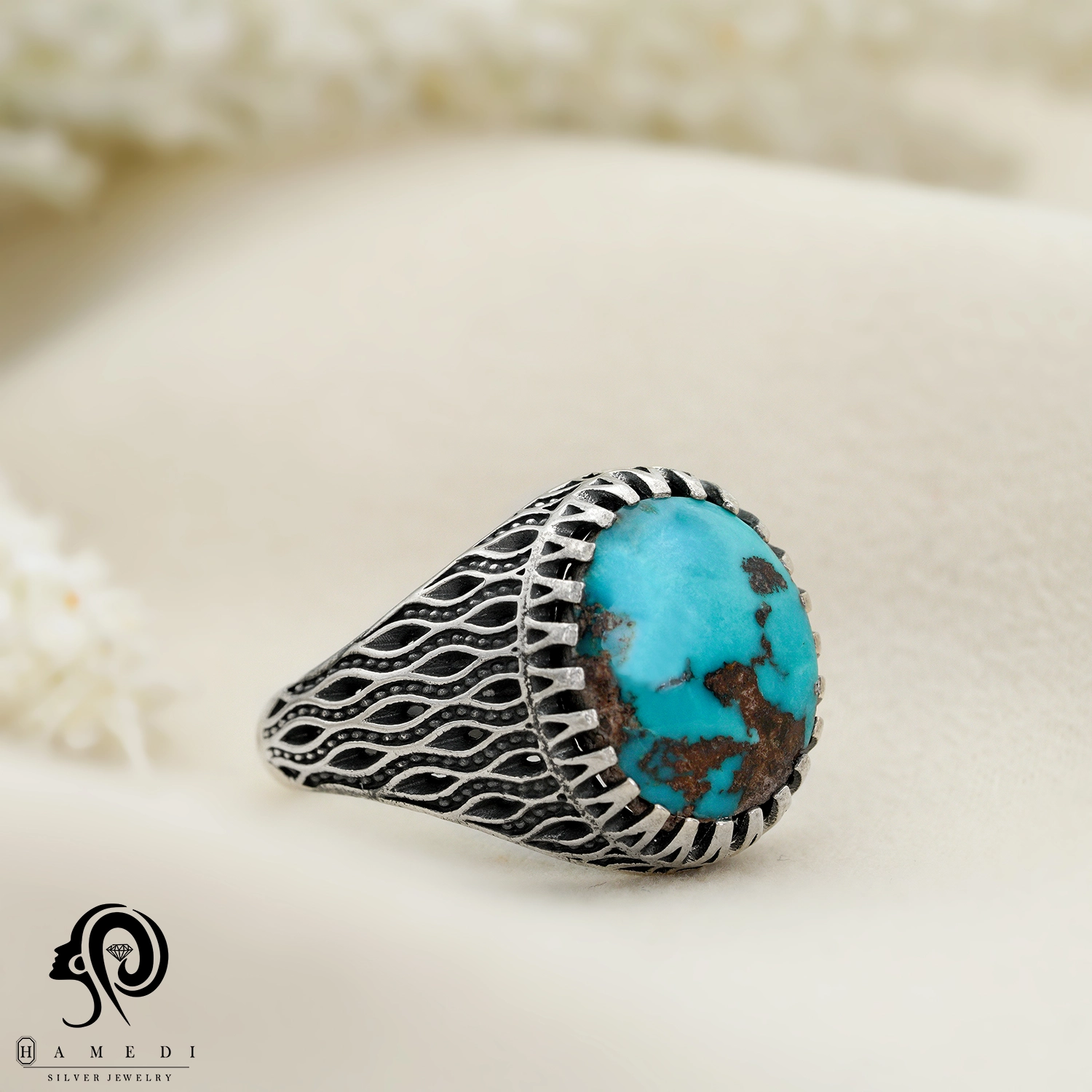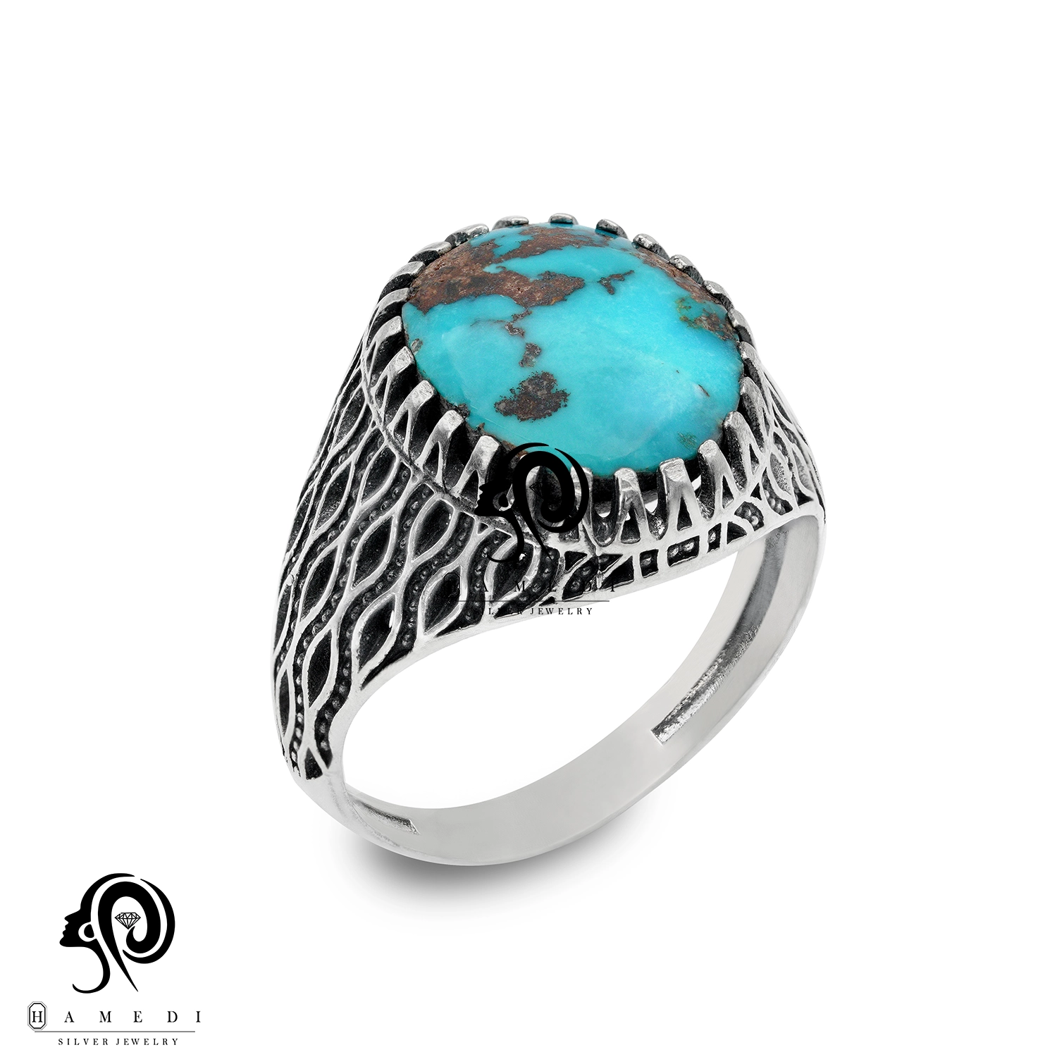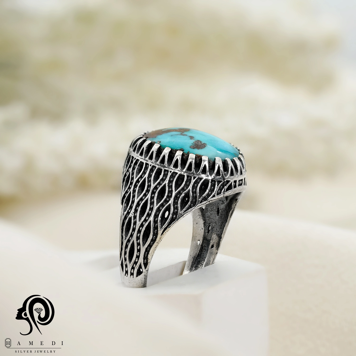 انگشتر فیروزه اصل نقره مردانه مدل RIM FI35 یکی از لوکسترین و پرطرفدارترین انگشتر های فیروزه گالری حامدی است.