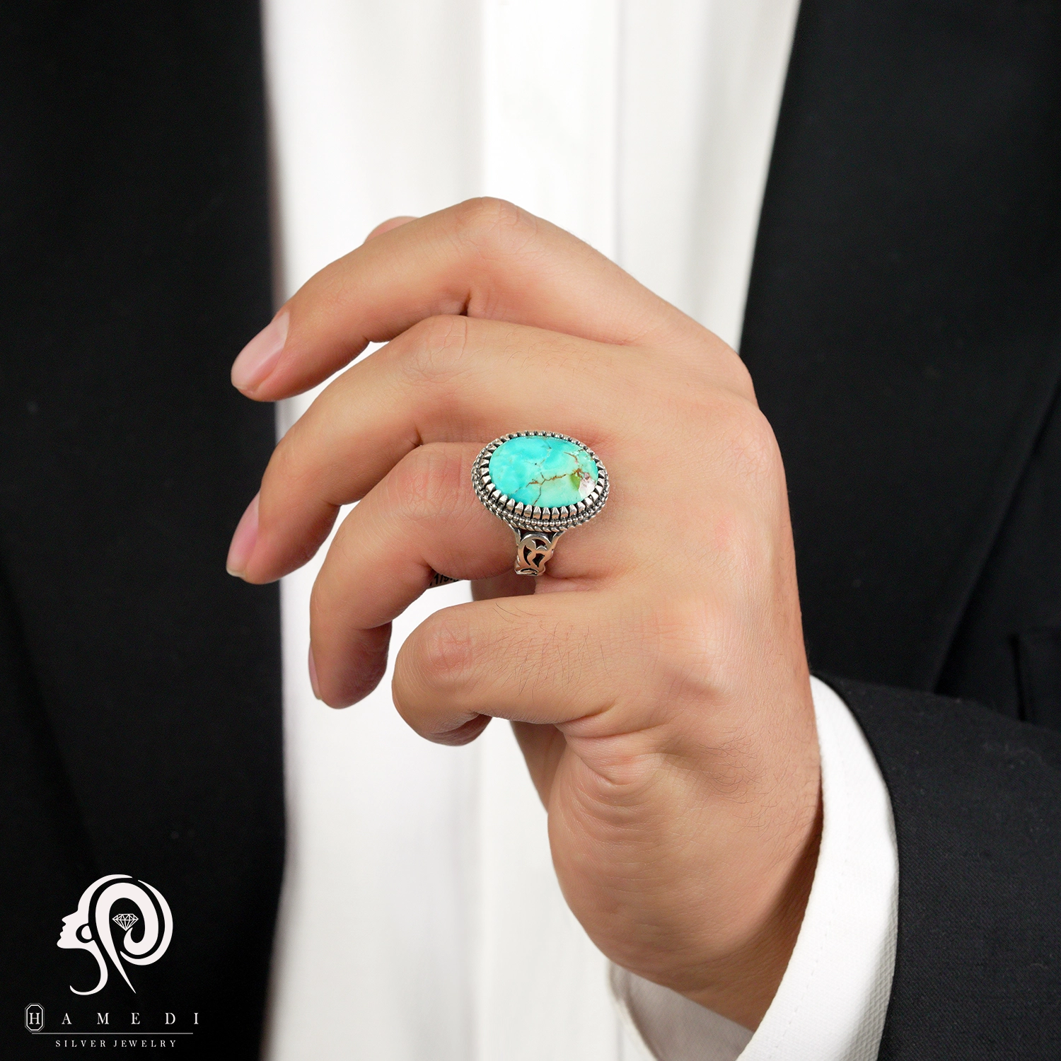 انگشتر فیروزه مردانه نقره اصل مدل RIM FI36 یکی از لوکسترین و پرطرفدارترین انگشتر های فیروزه گالری حامدی است.