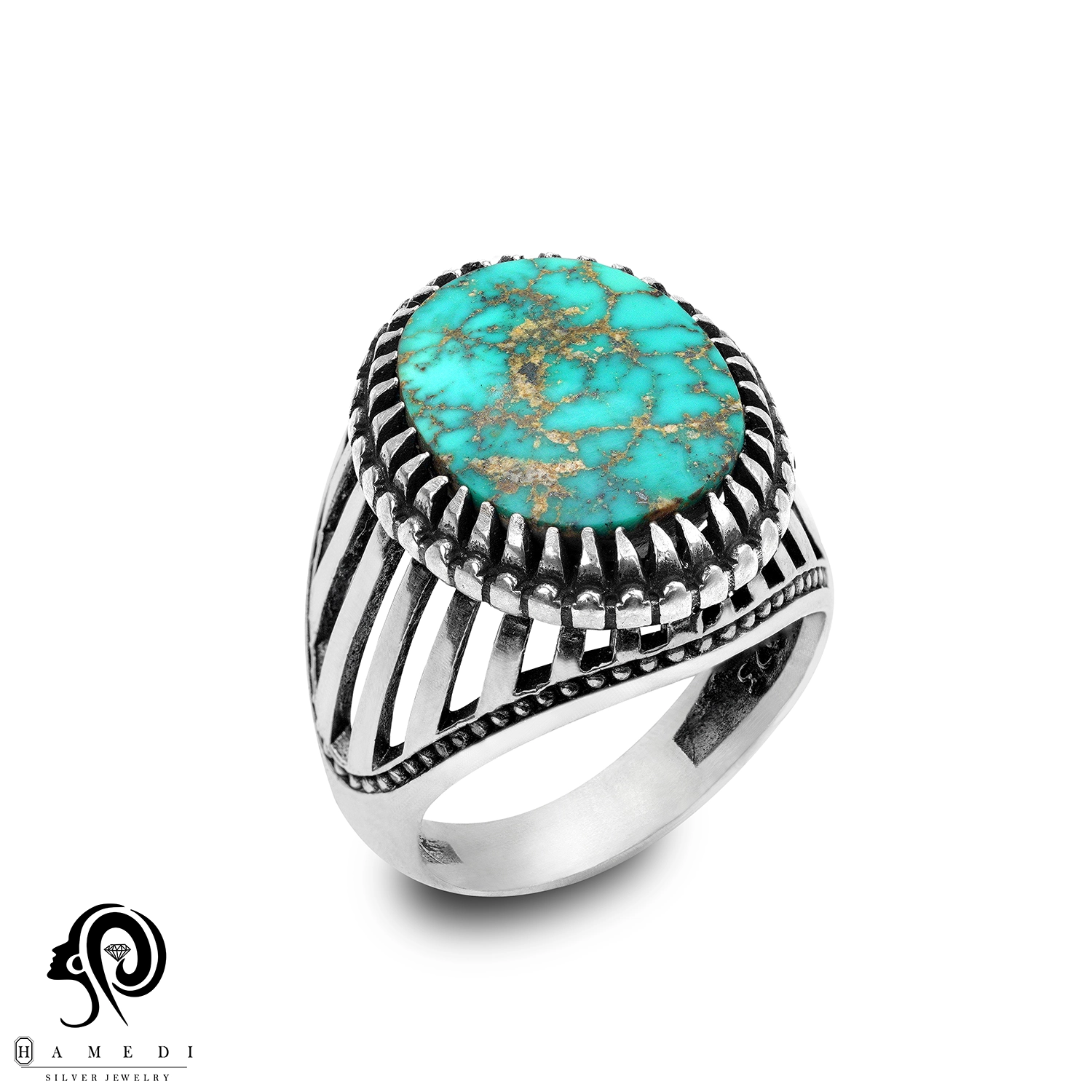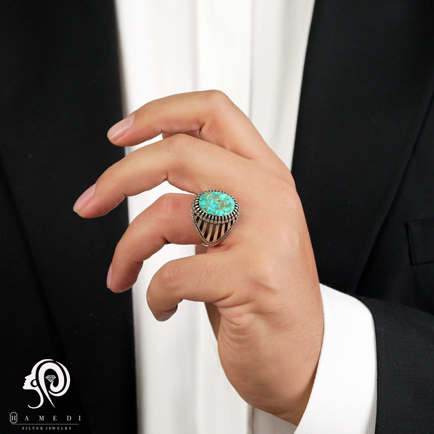 انگشتر فیروزه مردانه نقره اصل مدل RIM FI48 یکی از لوکسترین و پرطرفدارترین انگشتر های فیروزه گالری حامدی است.