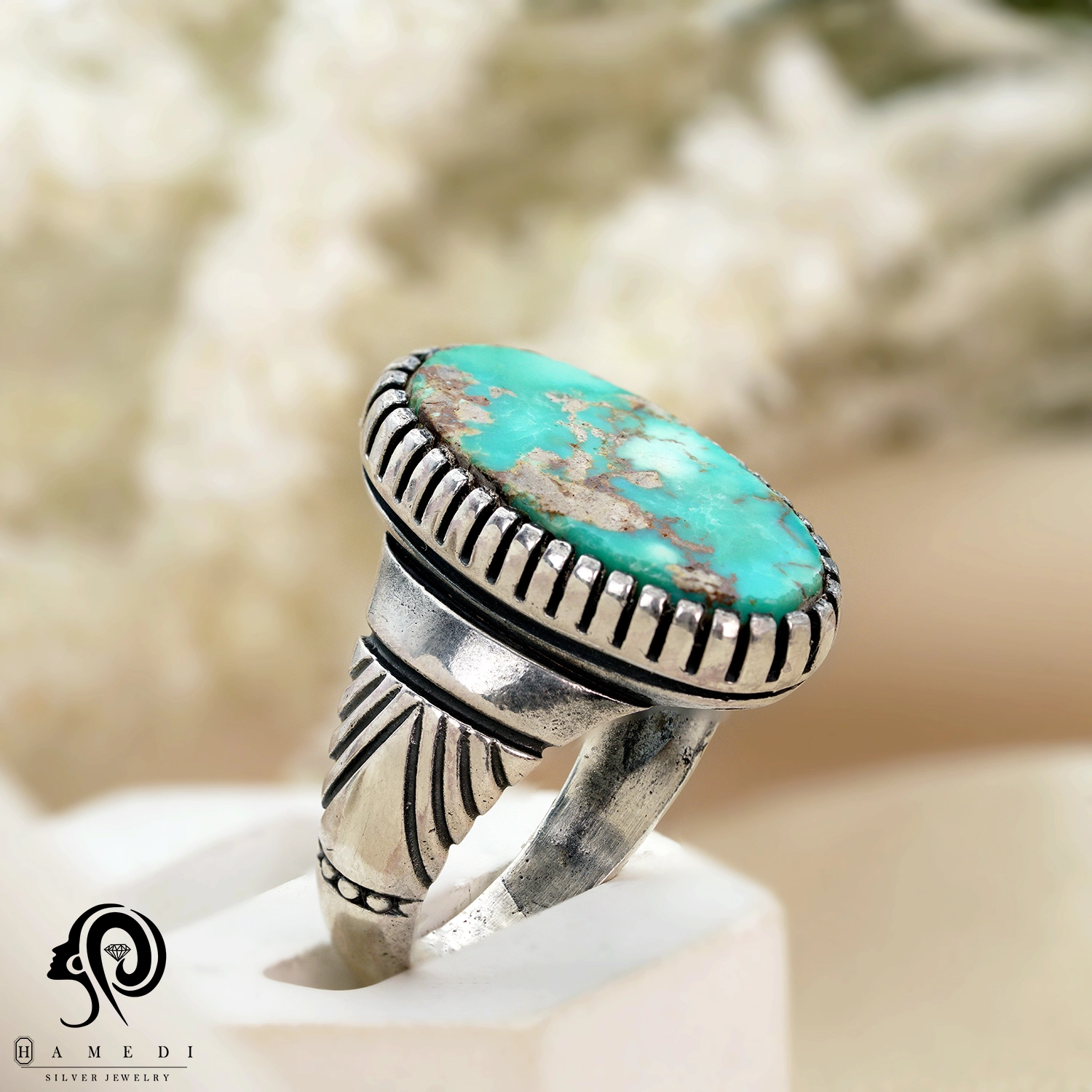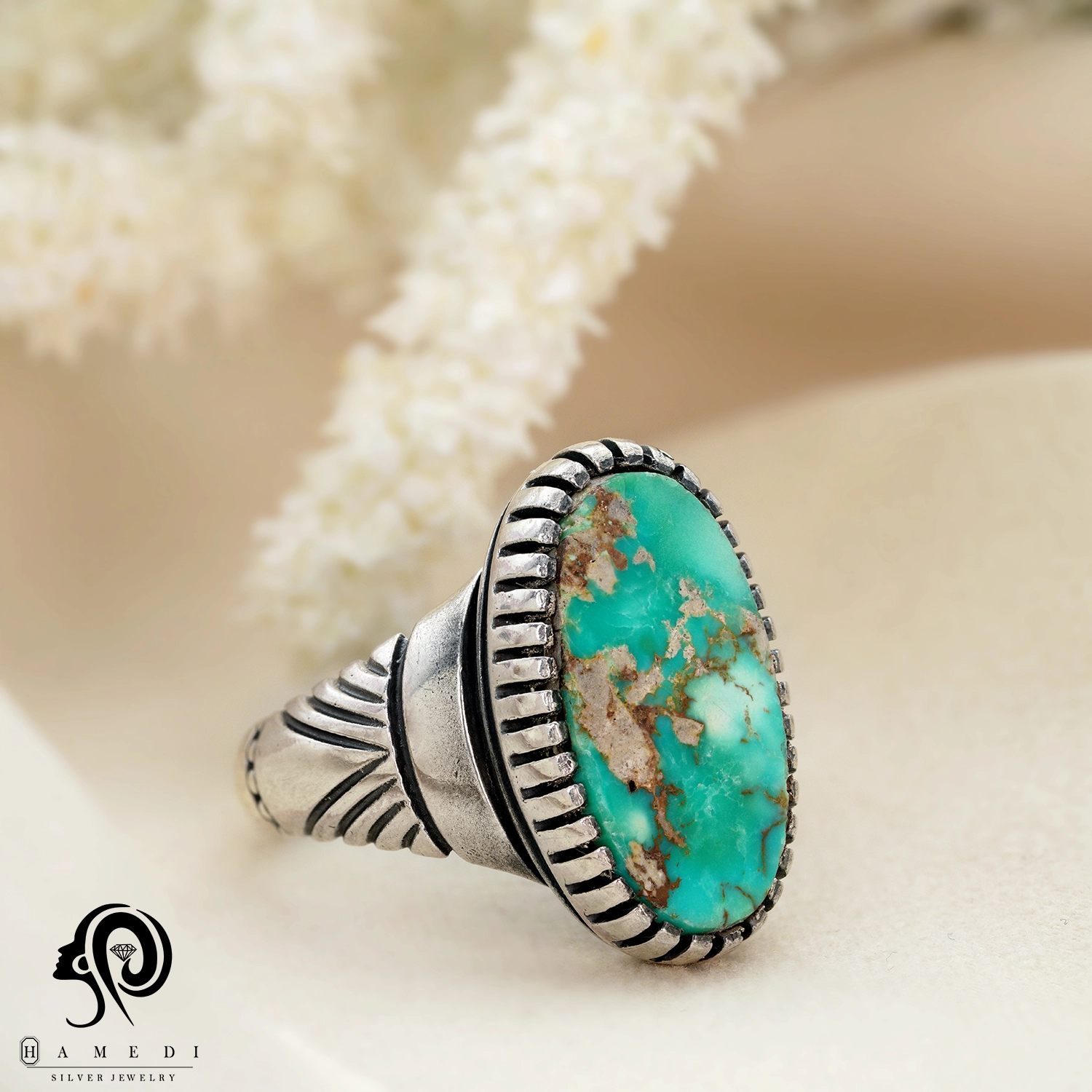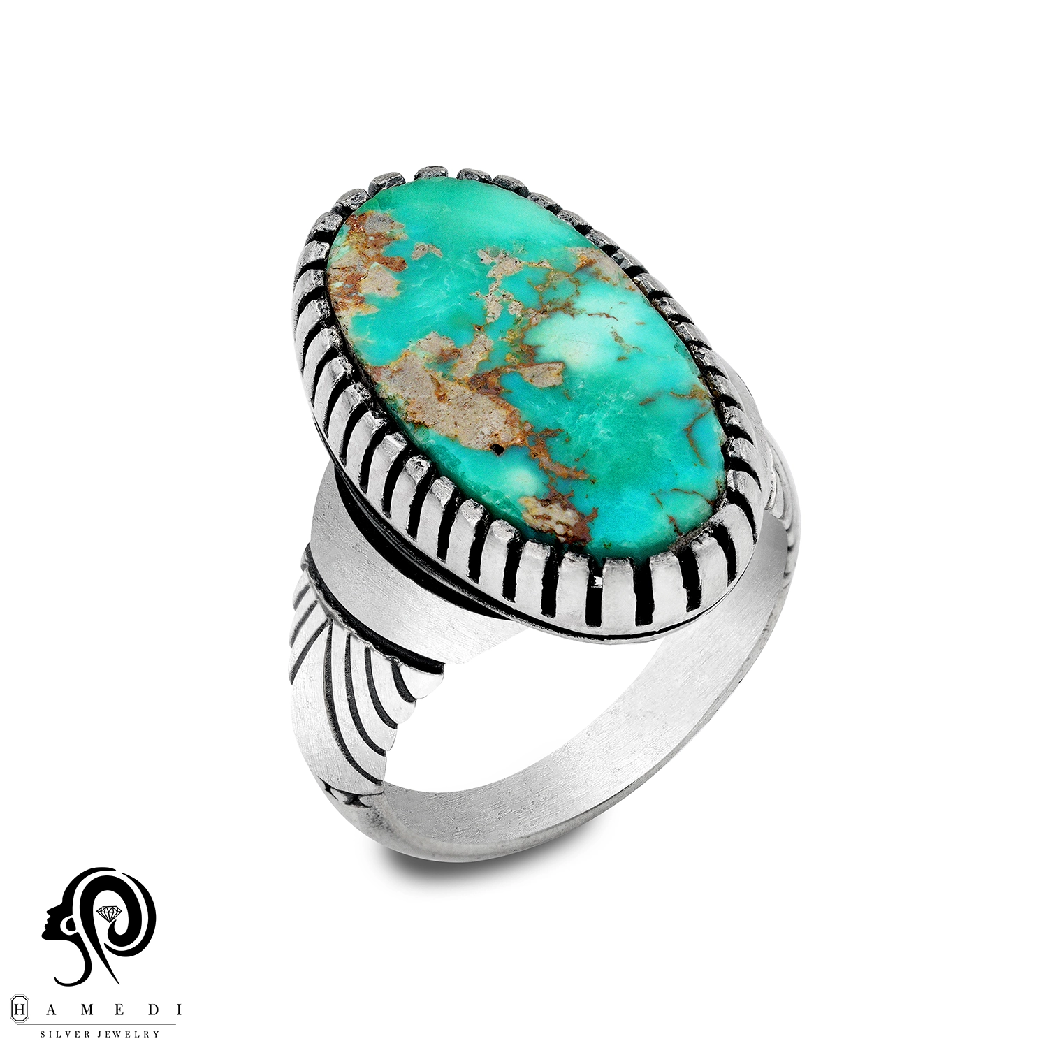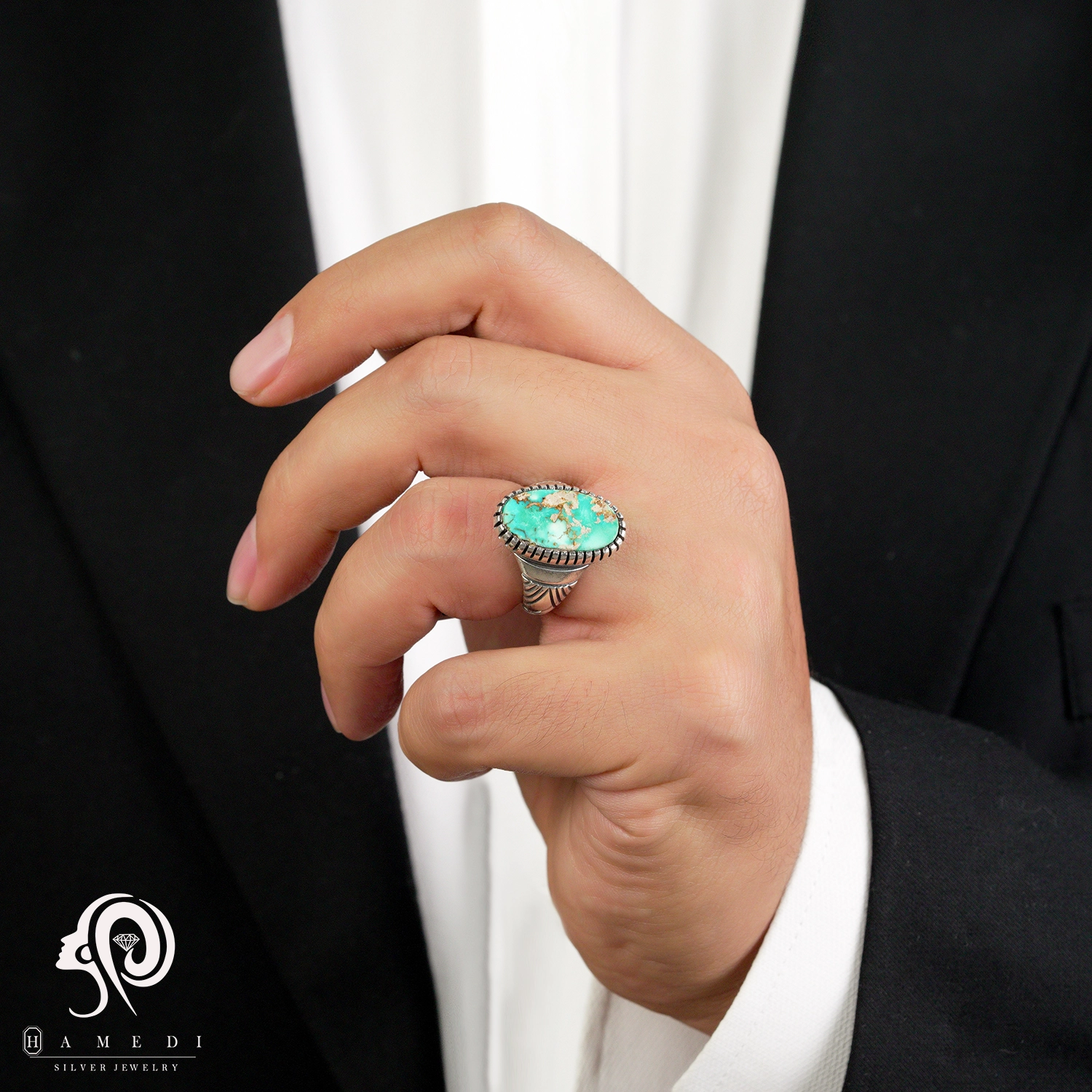 انگشتر فیروزه مردانه نقره اصل مدل RIM FI54 یکی از لوکسترین و پرطرفدارترین انگشتر های فیروزه گالری حامدی است.