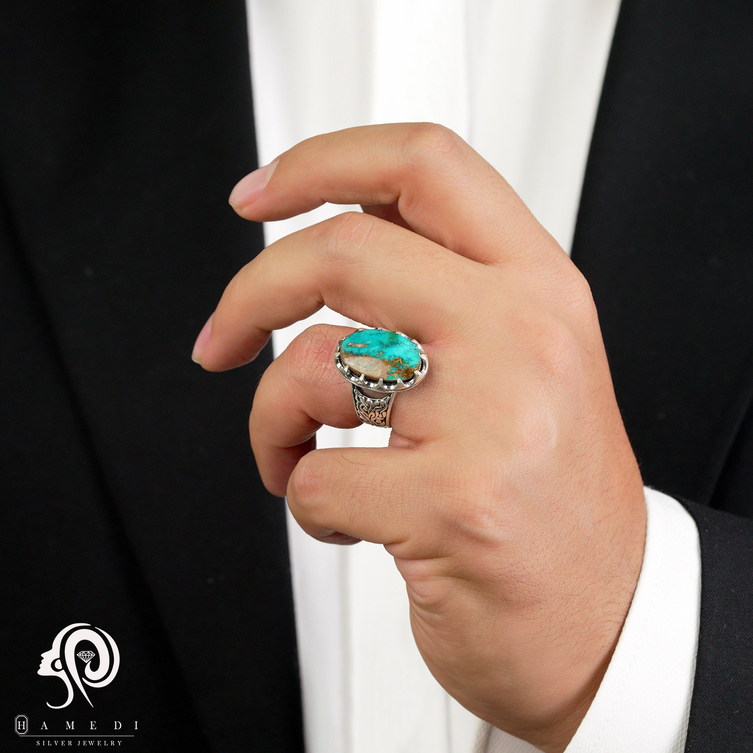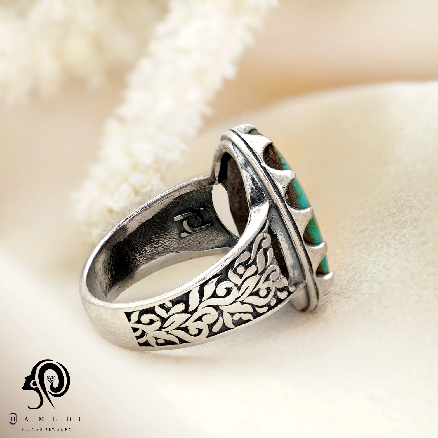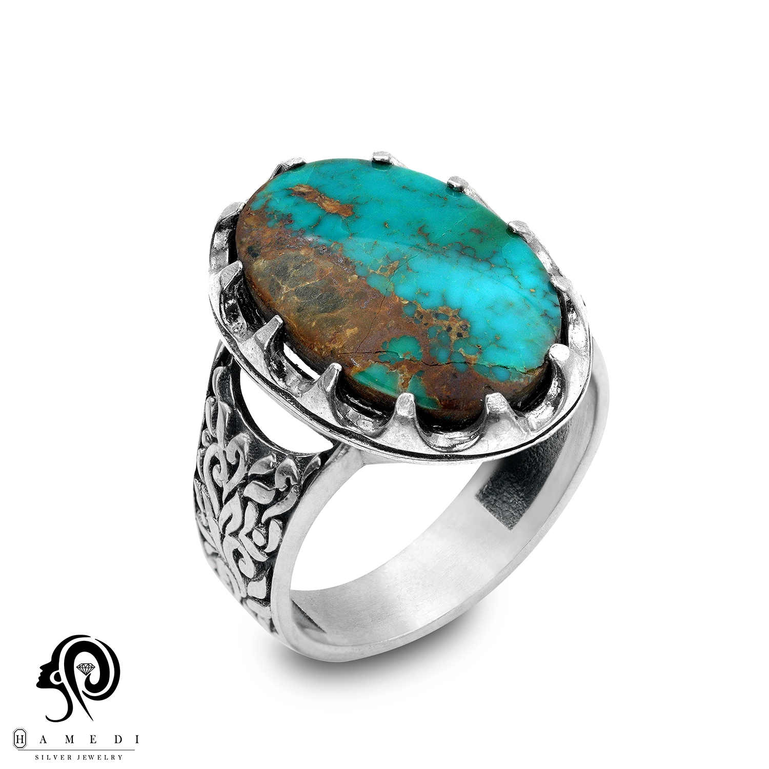 انگشتر فیروزه مردانه نقره اصل مدل RIM FI61 یکی از لوکسترین و پرطرفدارترین انگشتر های فیروزه گالری حامدی است.