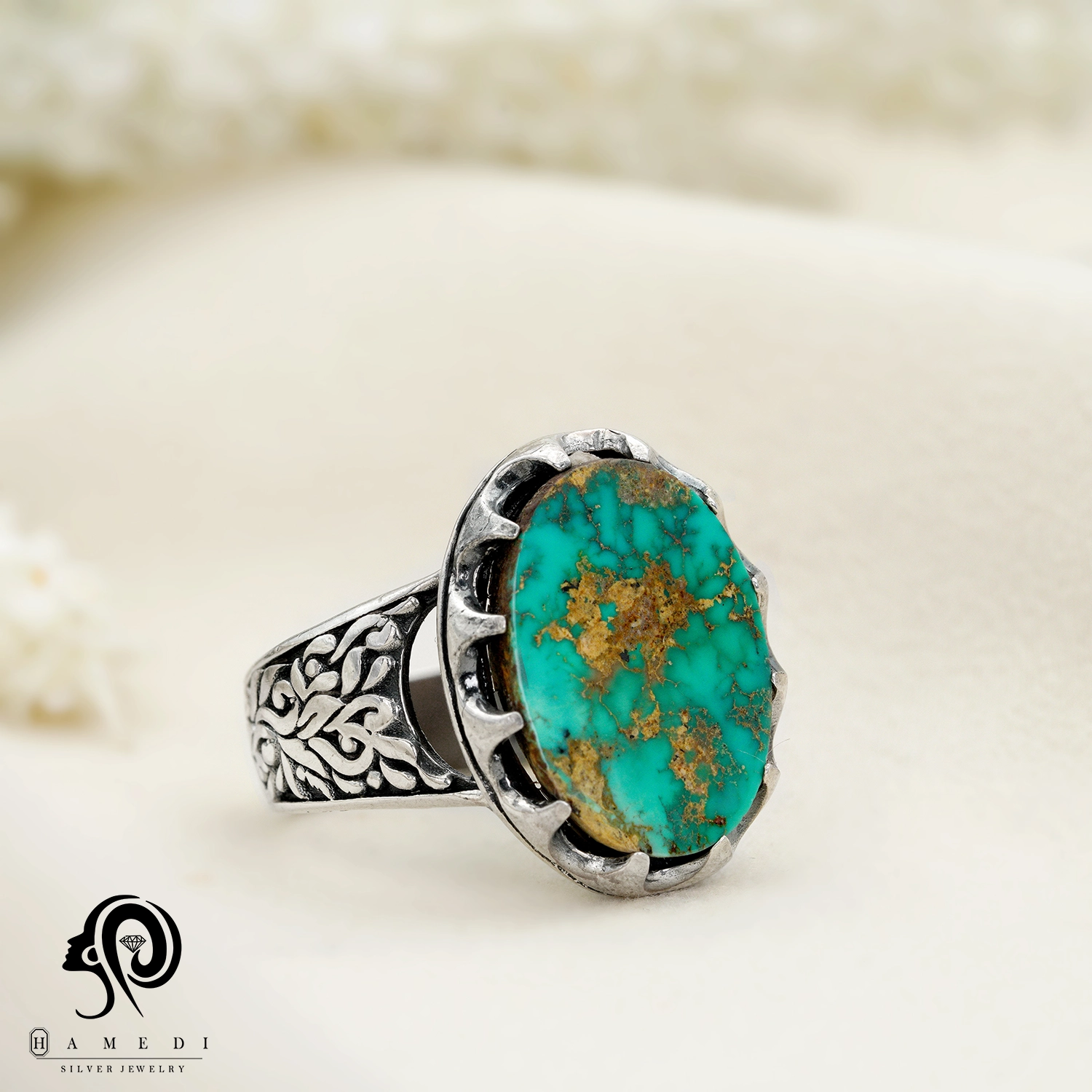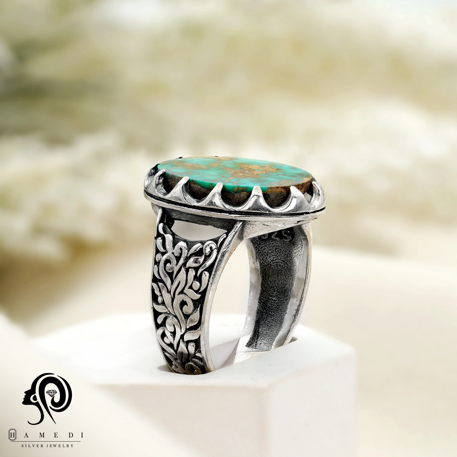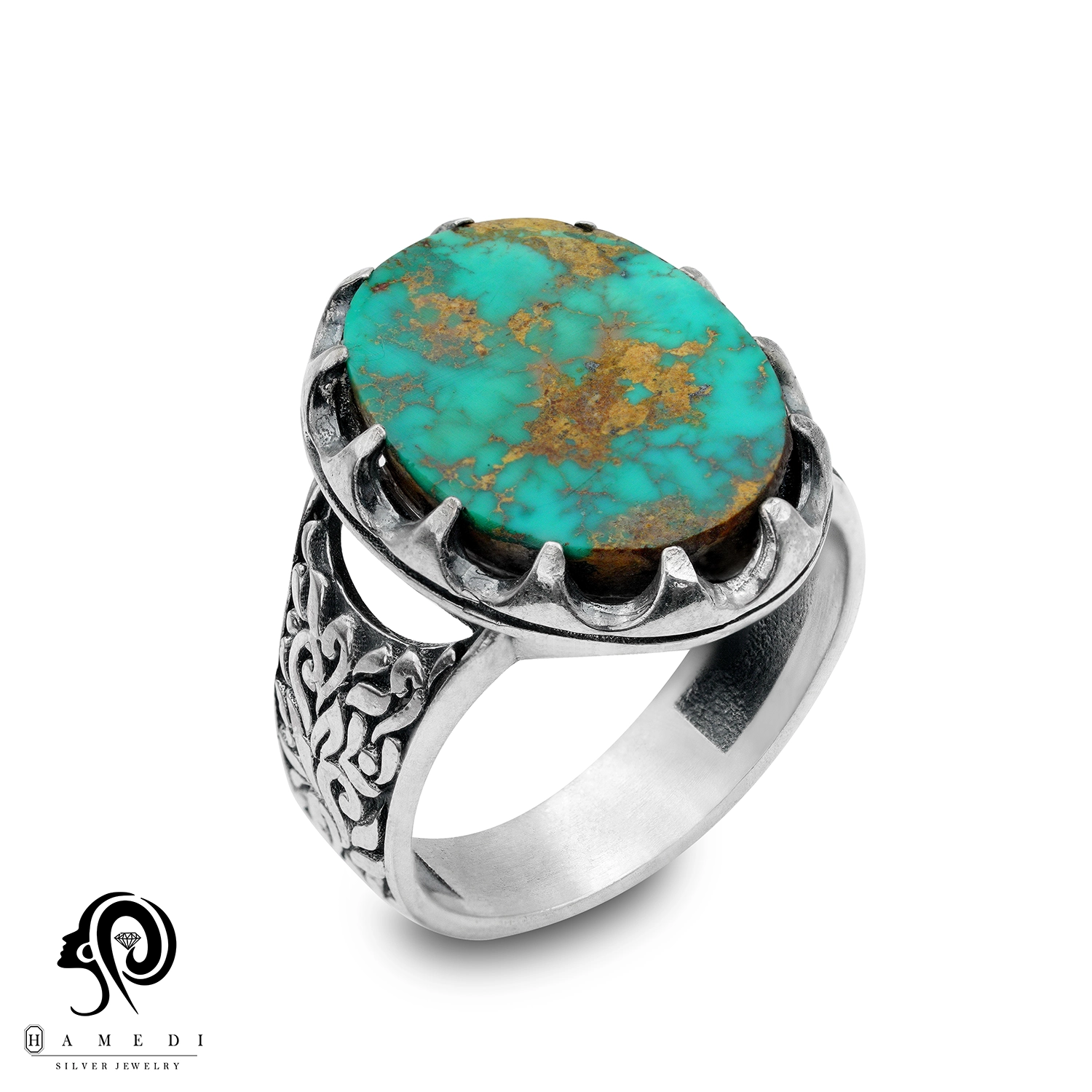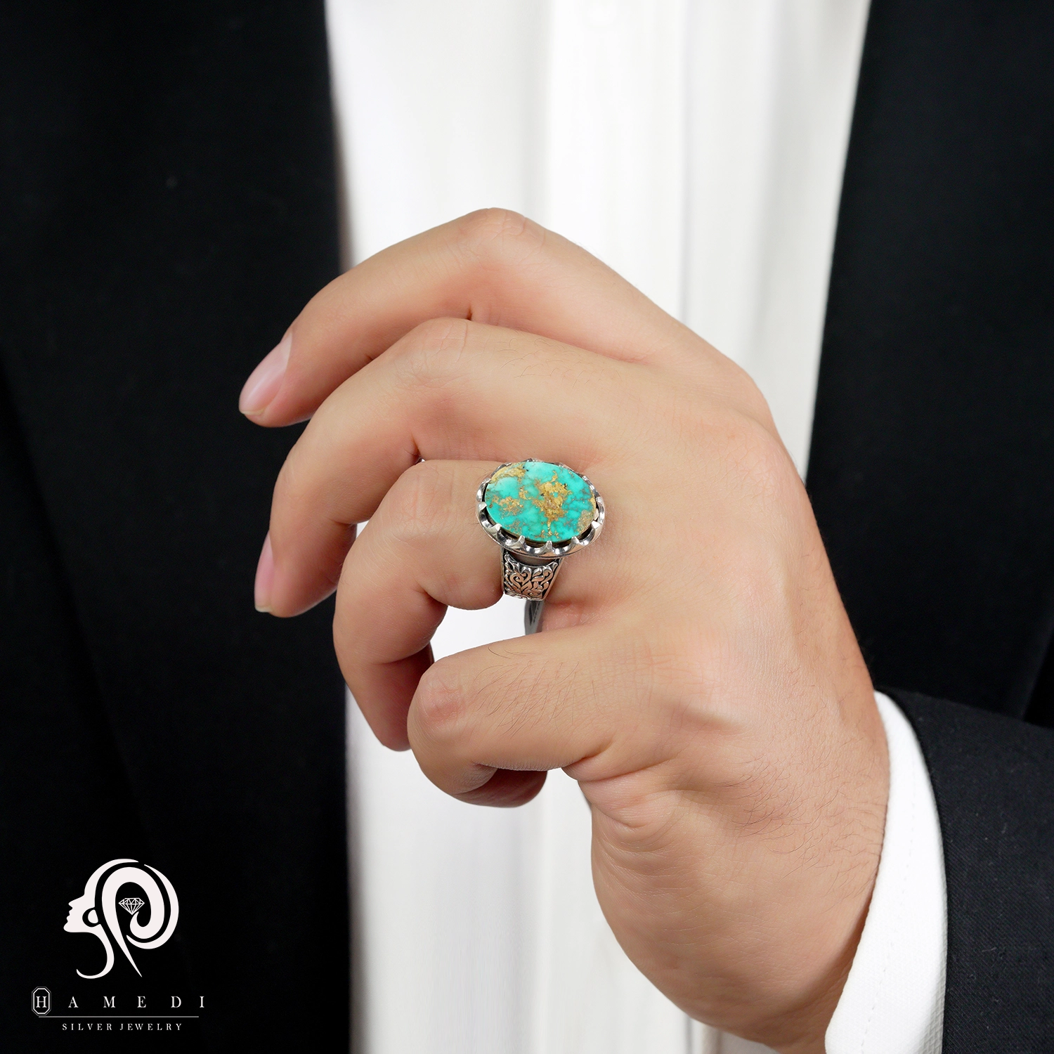 انگشتر فیروزه اصل نقره مردانه مدل RIM FI62 یکی از لوکسترین و پرطرفدارترین انگشتر های فیروزه گالری حامدی است.