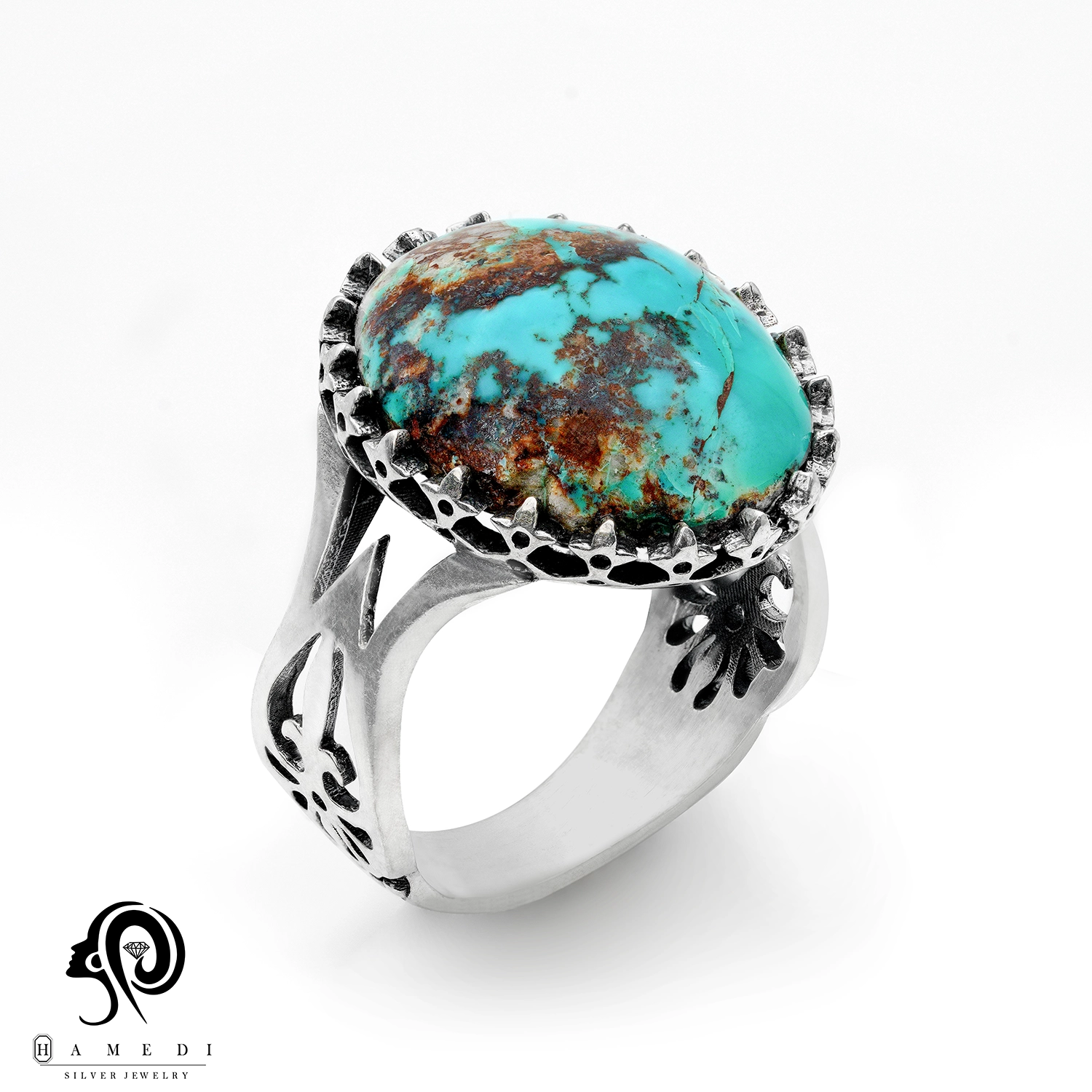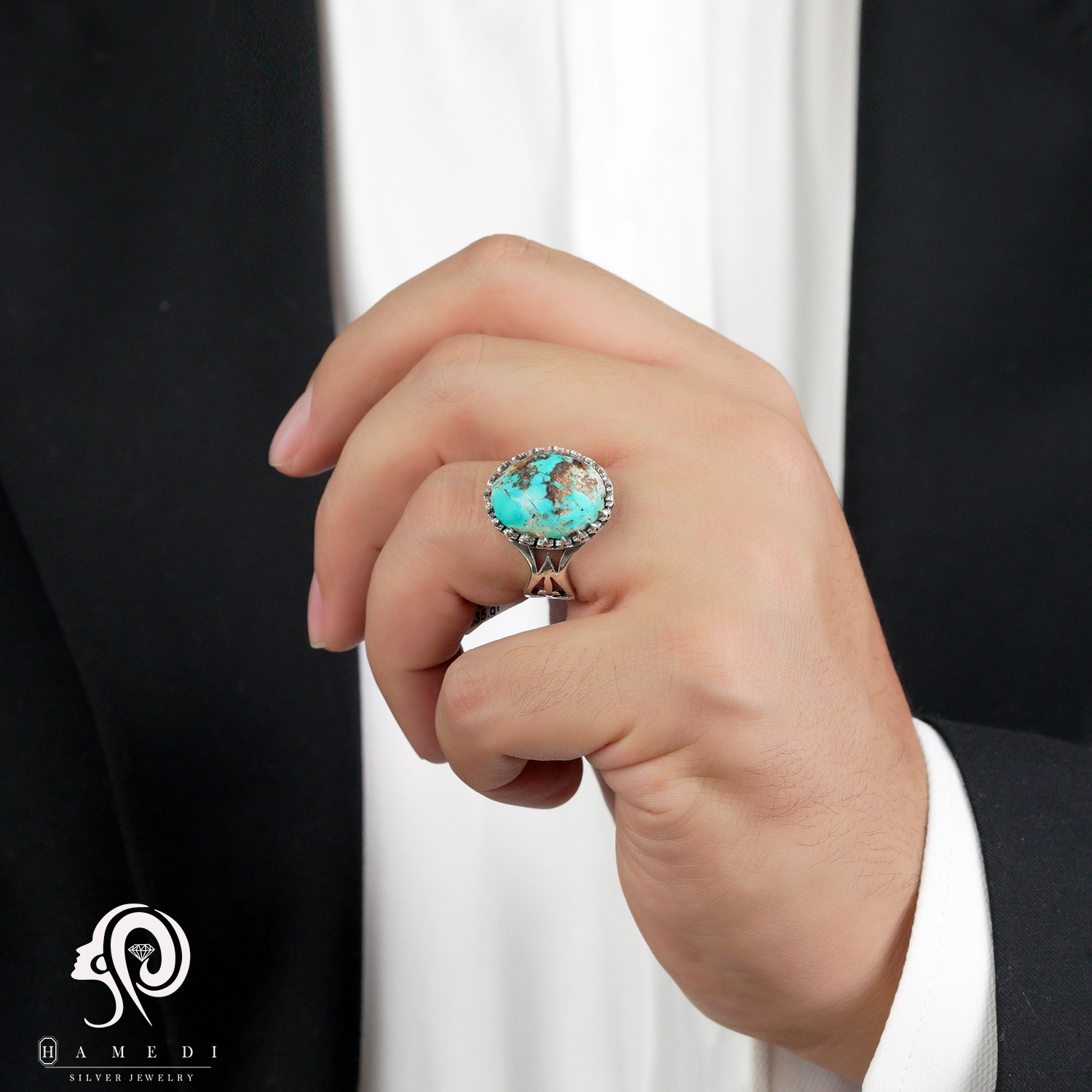 انگشتر فیروزه اصل نقره مردانه مدل RIM FI68 یکی از لوکسترین و پرطرفدارترین انگشتر های فیروزه گالری حامدی است.