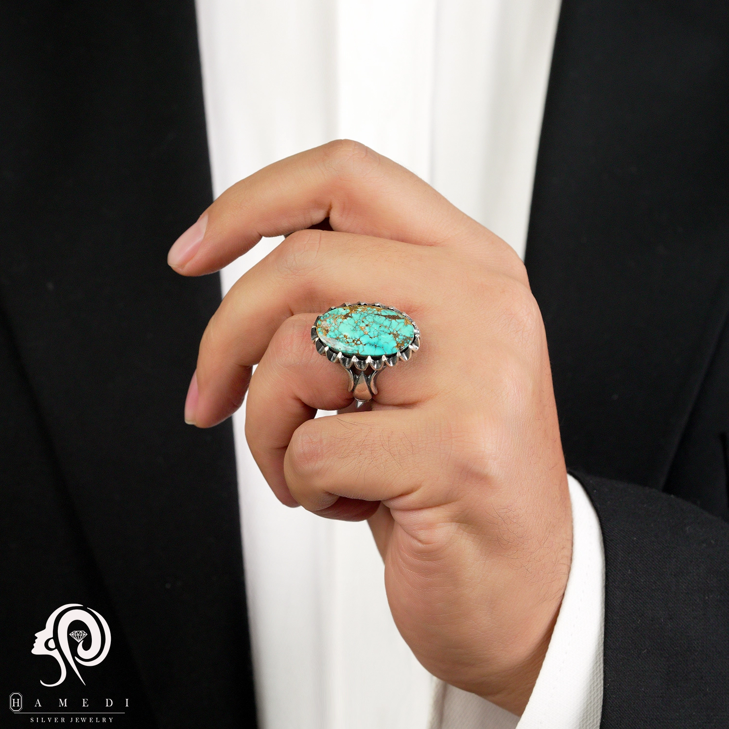 انگشتر فیروزه مردانه نقره اصل مدل RIM FI69 یکی از لوکسترین و پرطرفدارترین انگشتر های فیروزه گالری حامدی است.