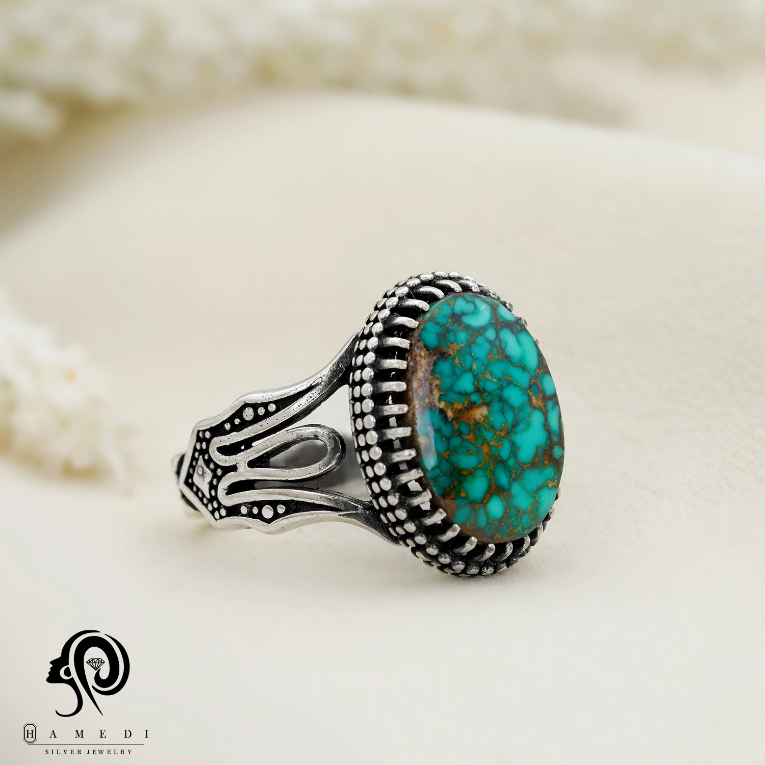 انگشتر فیروزه مردانه اصل نقره مدل RIM FI75 یکی از لوکسترین و پرطرفدارترین انگشتر های فیروزه گالری حامدی است.