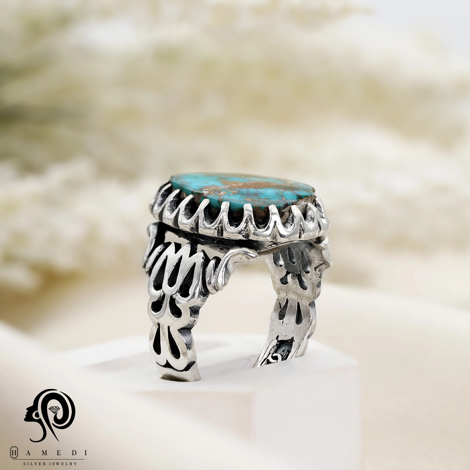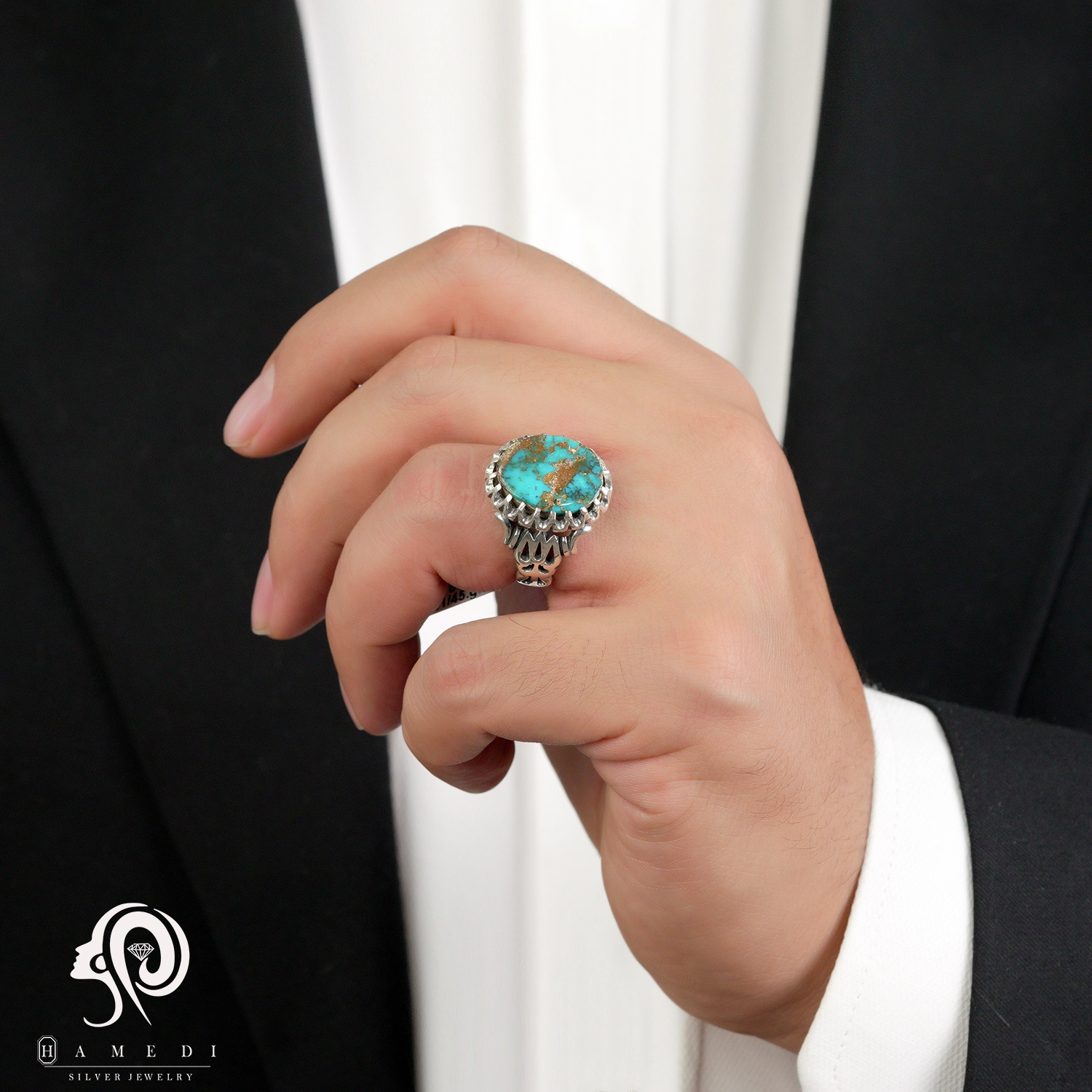 انگشتر فیروزه مردانه نقره اصل مدل RIM FI79 یکی از لوکسترین و پرطرفدارترین انگشتر های فیروزه گالری حامدی است.