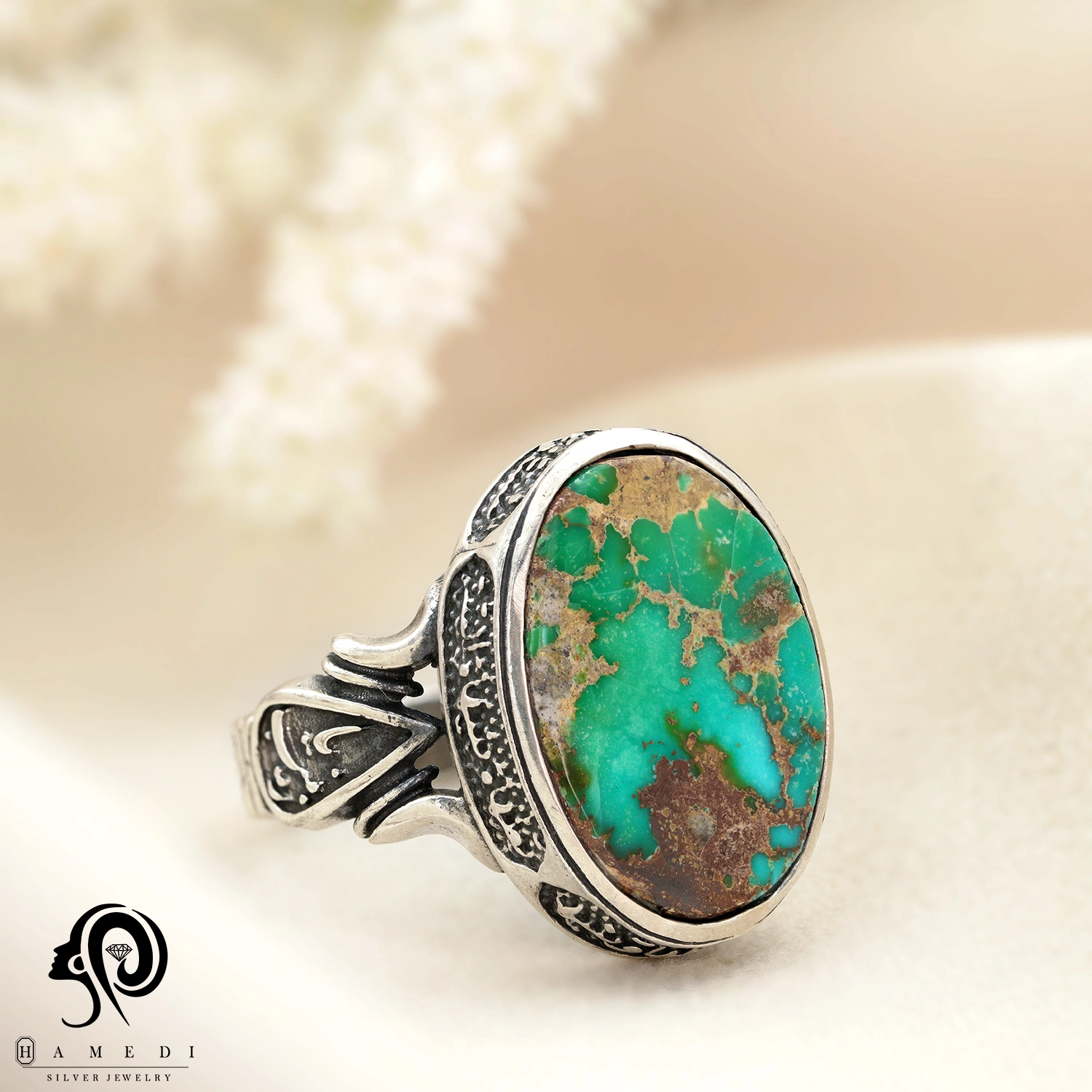 انگشتر فیروزه مردانه نقره اصل مدل RIM FI81 یکی از لوکسترین و پرطرفدارترین انگشتر های فیروزه گالری حامدی است.