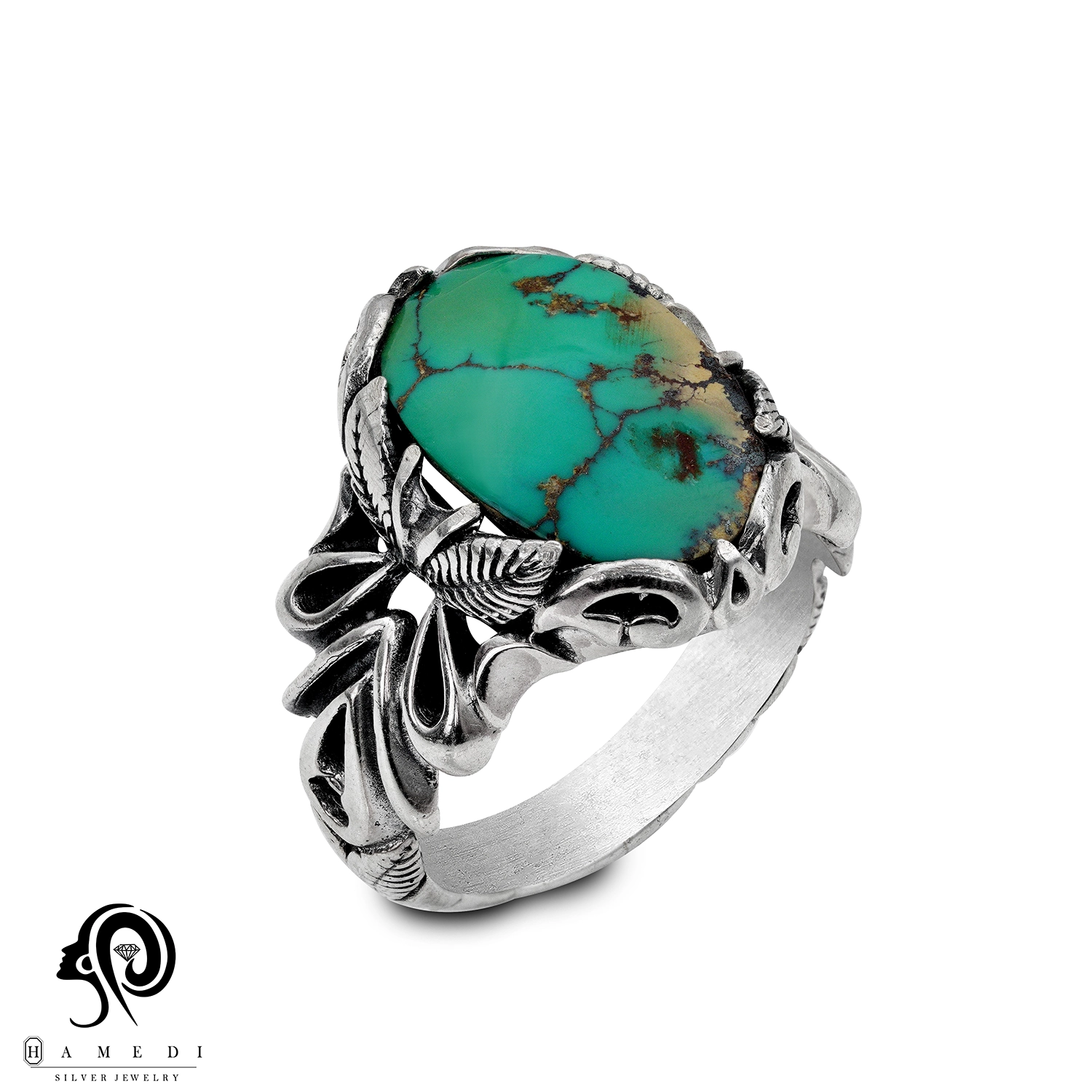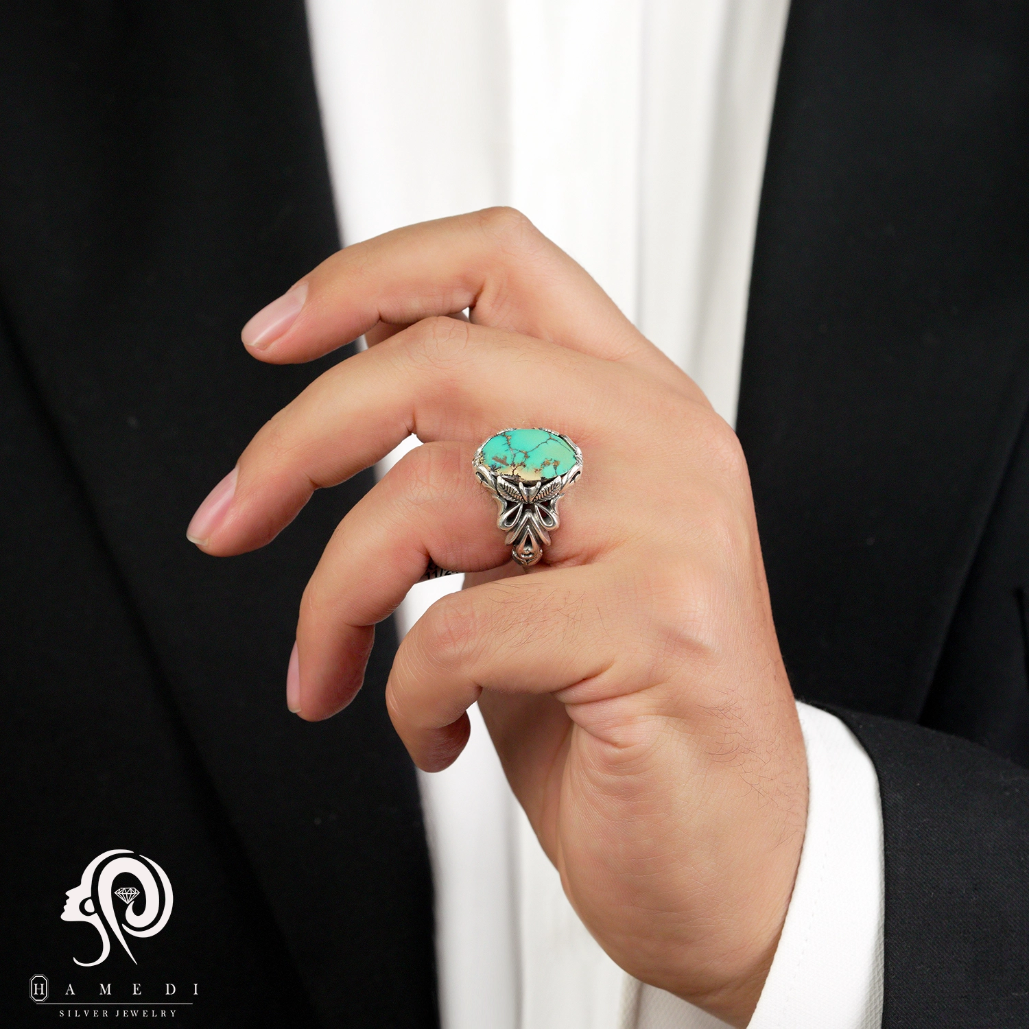 انگشتر فیروزه مردانه نقره اصل مدل RIM FI9 یکی از لوکسترین و پرطرفدارترین انگشتر های فیروزه گالری حامدی است.