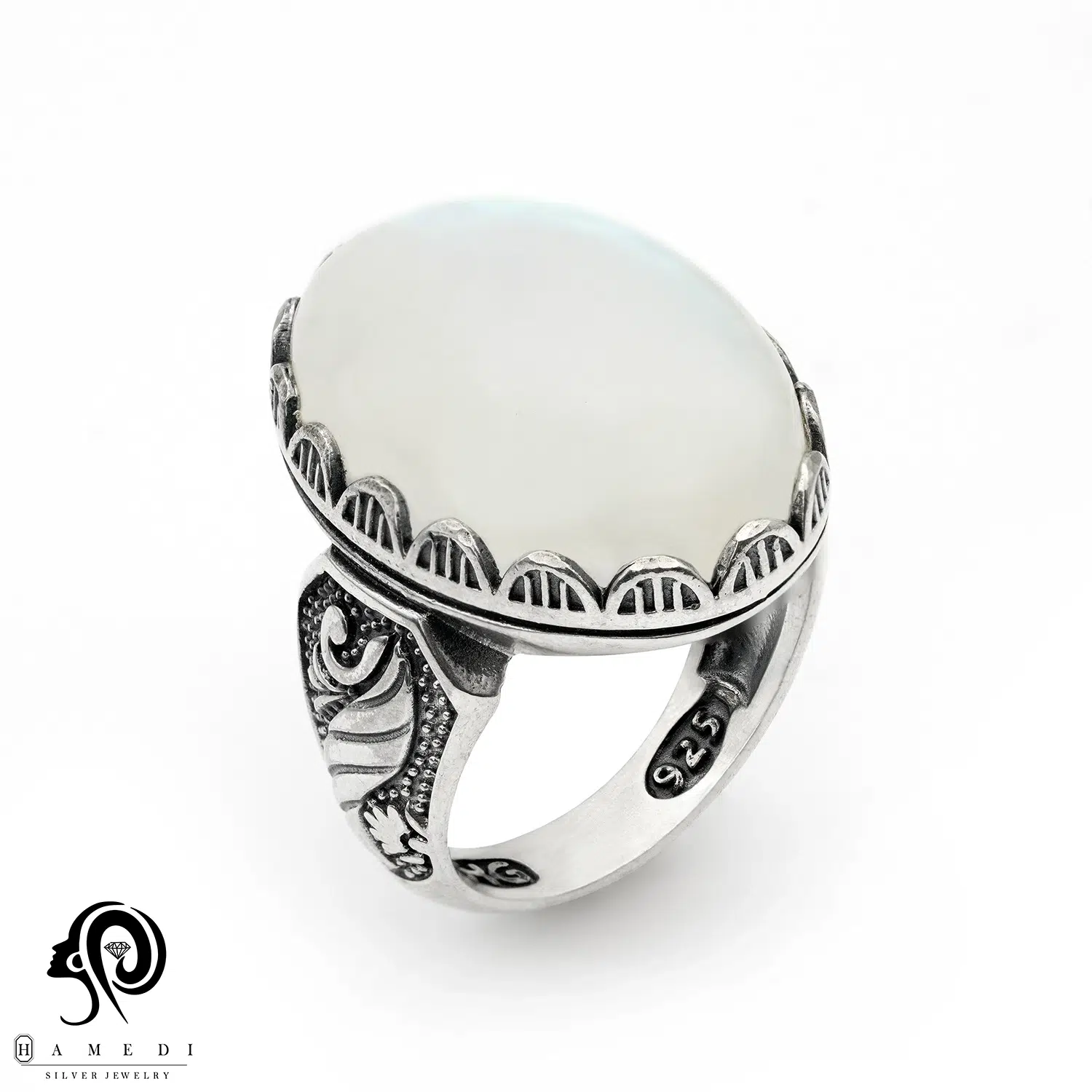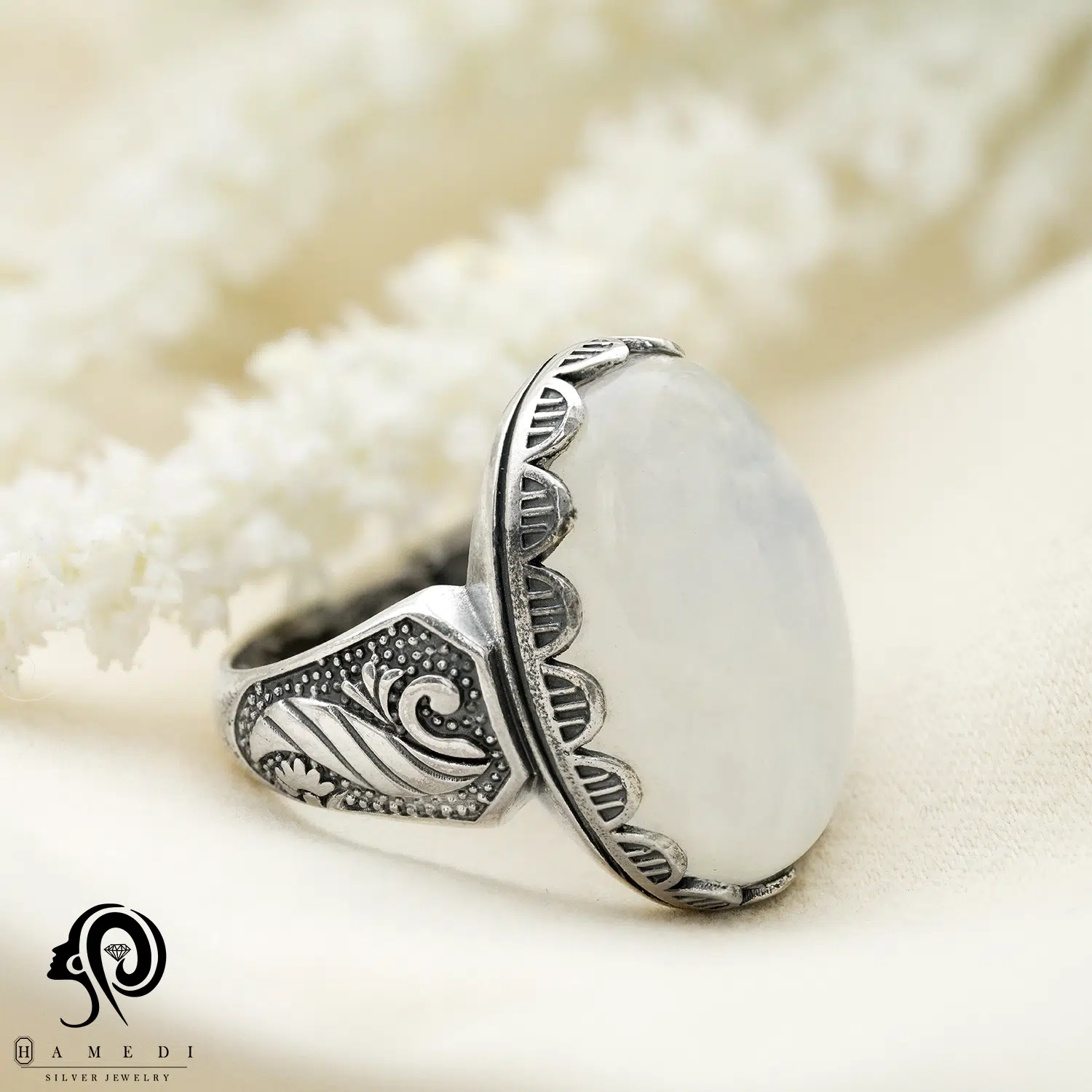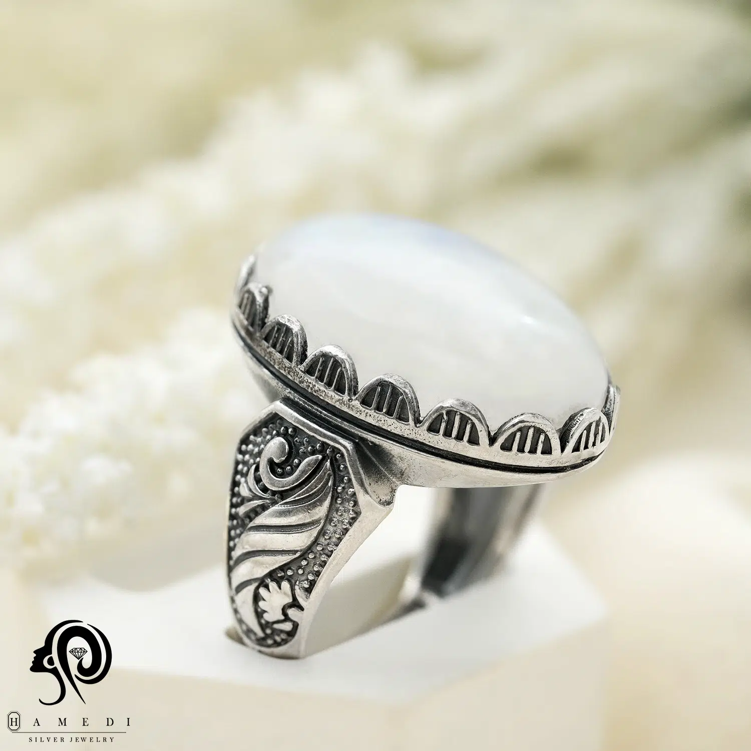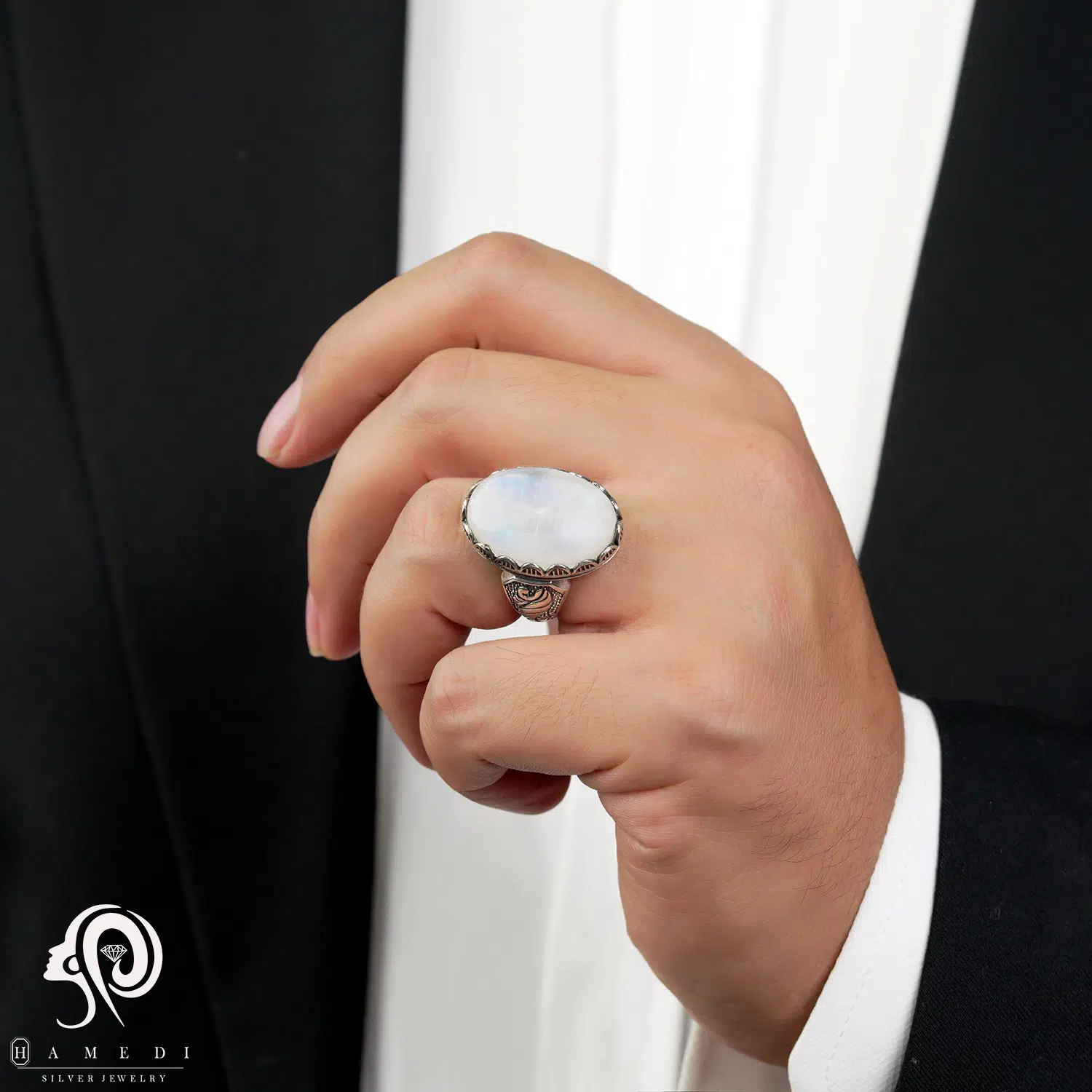 انگشتر نقره مردانه مون استون (ماه) مدل RIM MO2 اصل یکی از لوکسترین و پرطرفدارترین انگشتر های سنگ ماه گالری حامدی است.