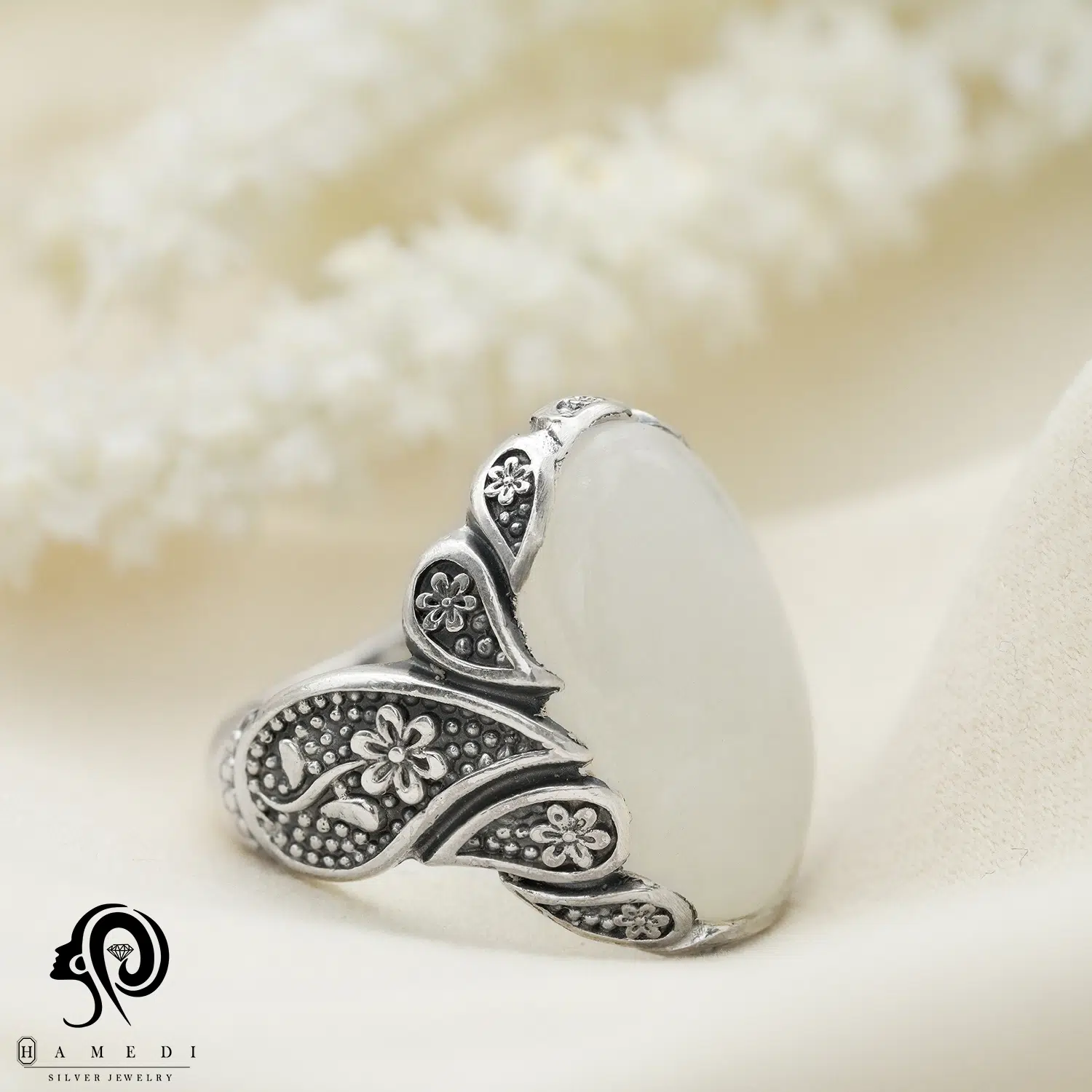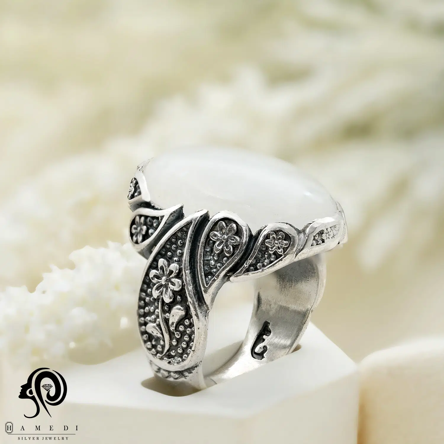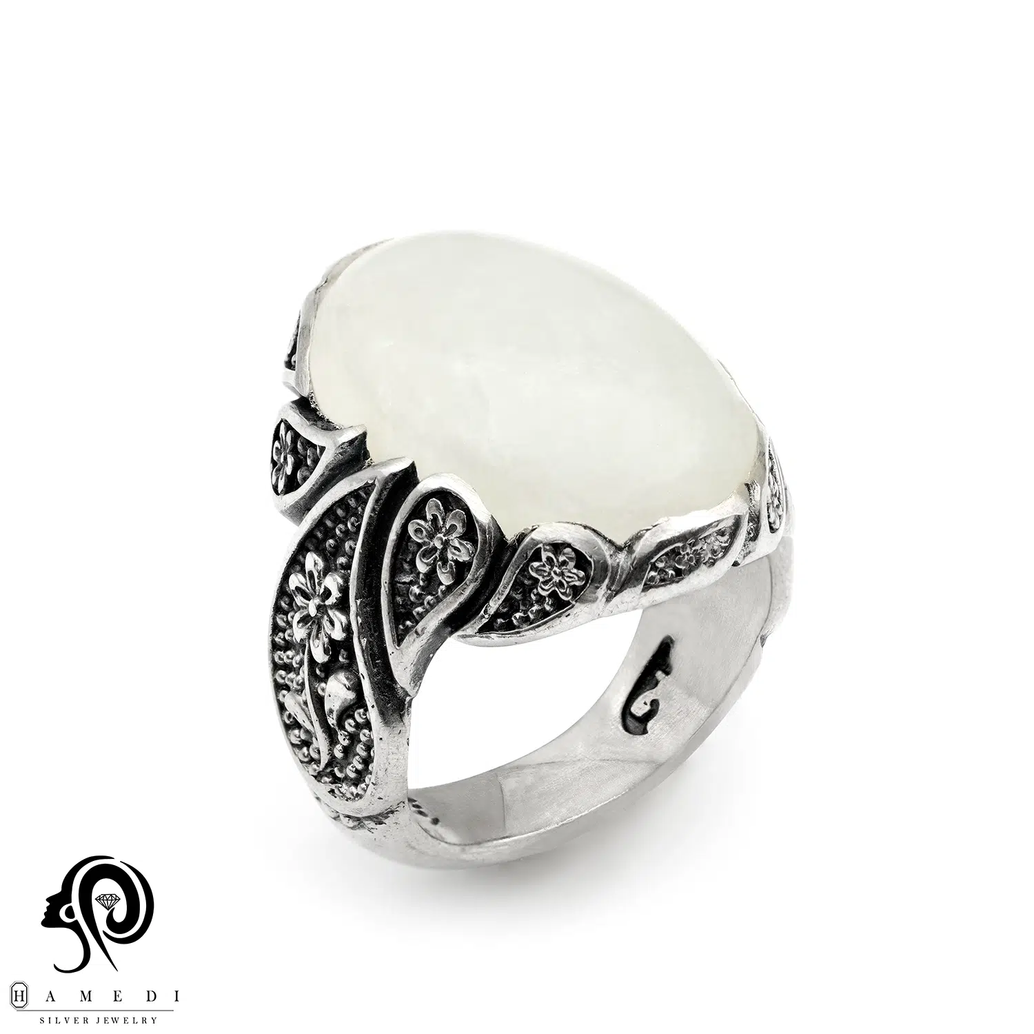 انگشتر نقره مردانه مون استون (ماه) مدل RIM MO3 اصل یکی از لوکسترین و پرطرفدارترین انگشتر های سنگ ماه گالری حامدی است.