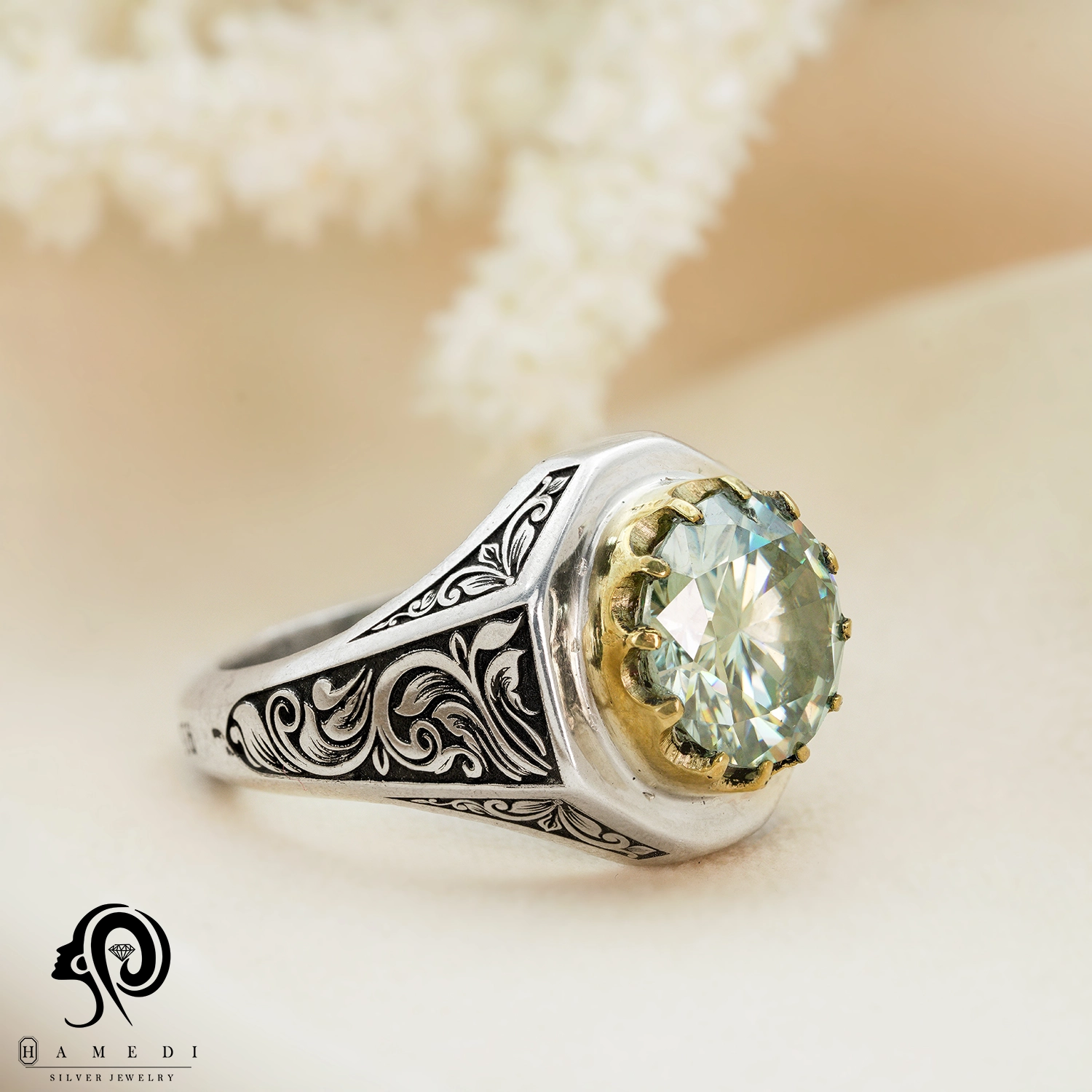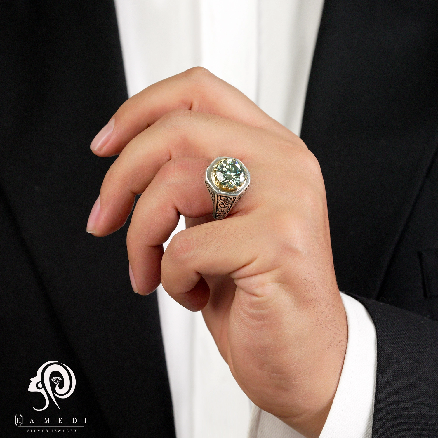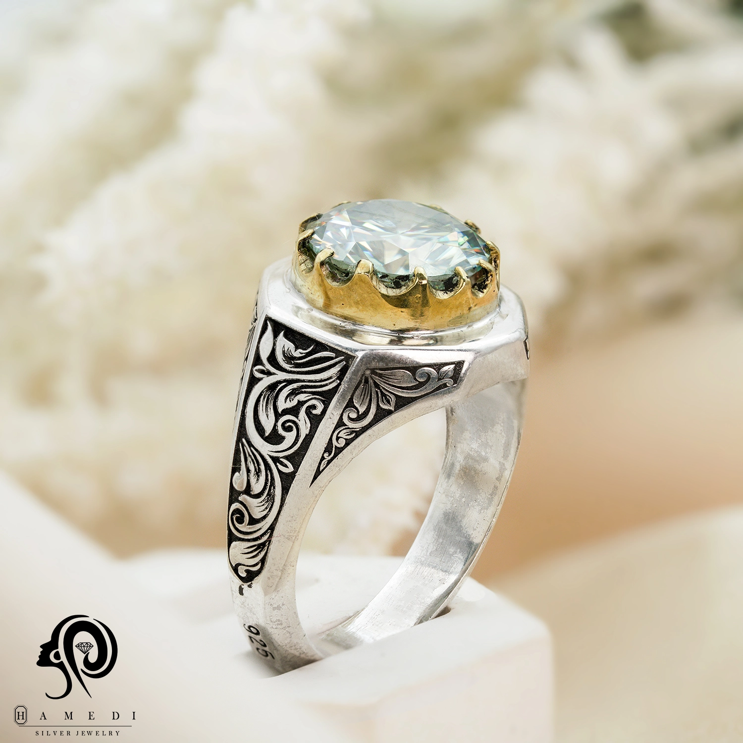 انگشتر موزانایت نقره مردانه اصل مدل RIM MOS8 یکی از خاصترین انتخابها برای آقایانی است که به دنبال درخشش، اصالت و ظرافت در استایل خود هستند. سنگ موزانایت با جلای خیرهکنندهاش که حتی از الماس هم درخشندهتر است، جلوهای لاکچری و چشمنواز به این انگشتر بخشیده است.