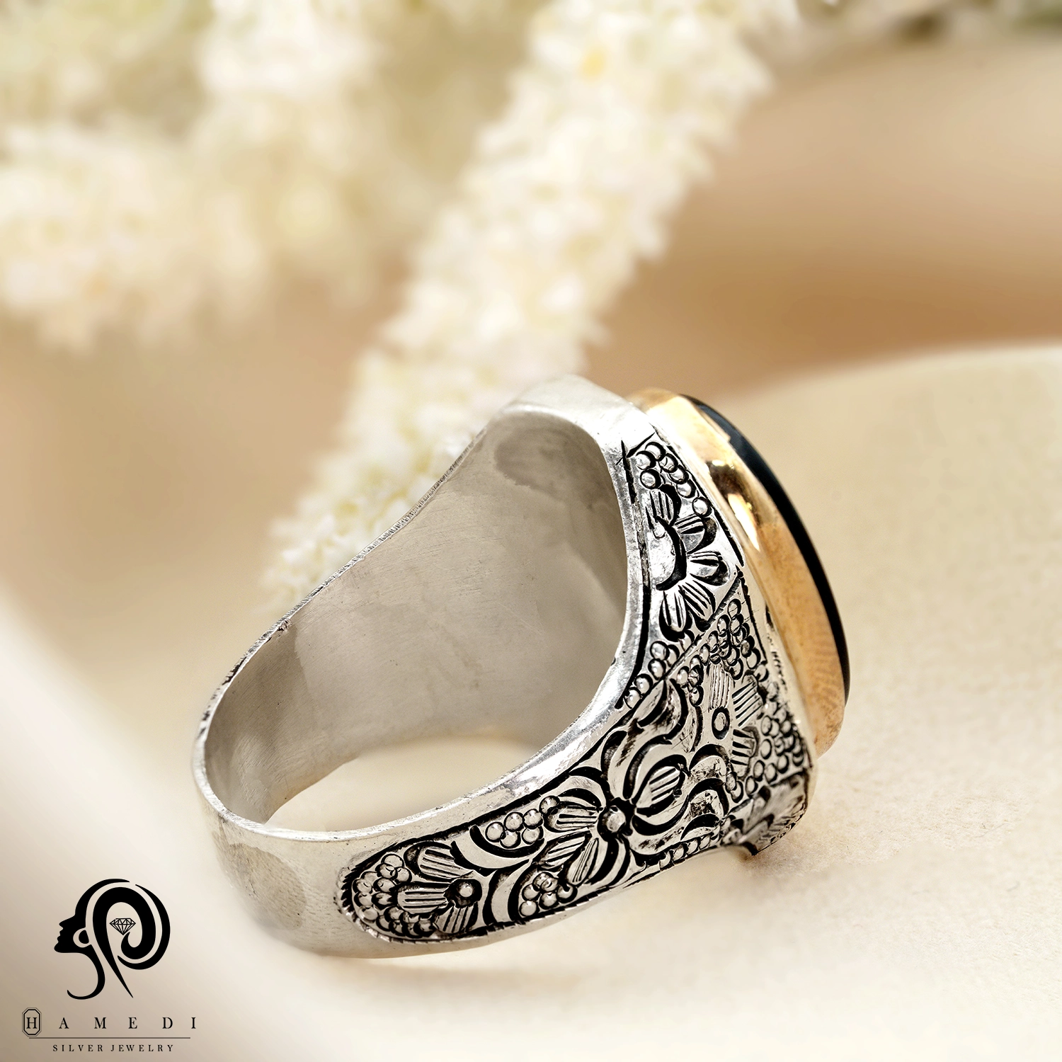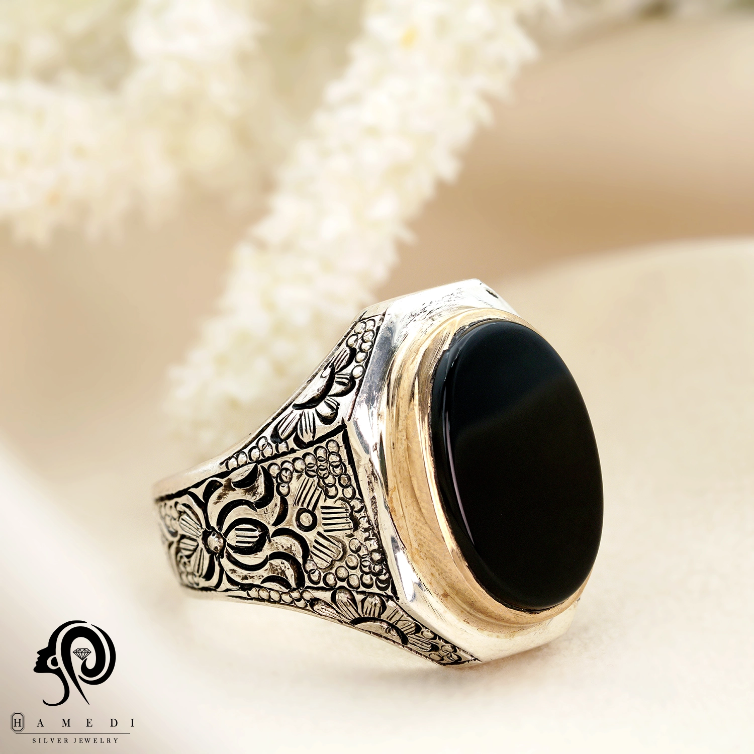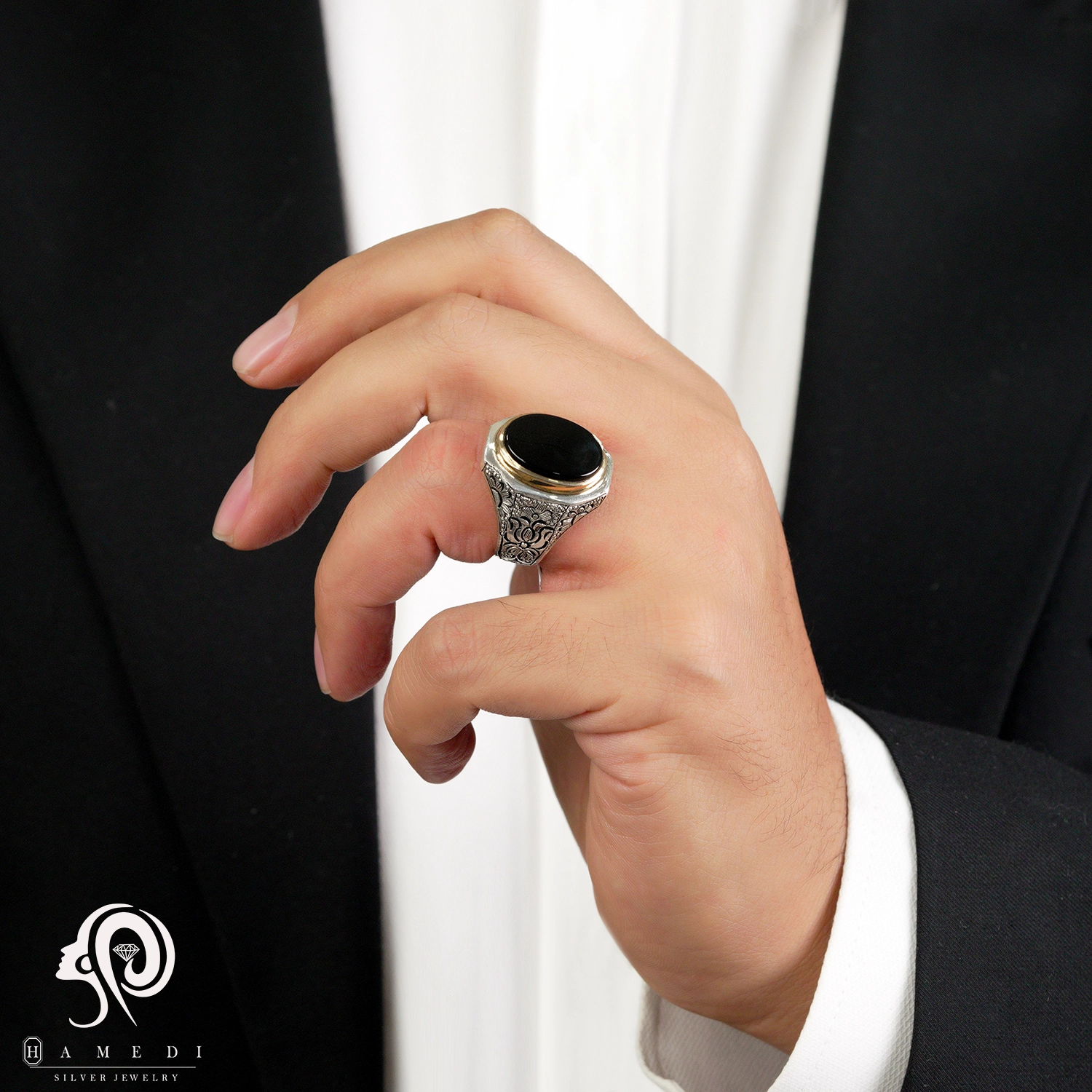 انگشتر اونیکس نقره مردانه اصل مدل RIM ON25 یکی از لوکسترین و پرطرفدارترین انگشتر های اونیکس گالری حامدی است.