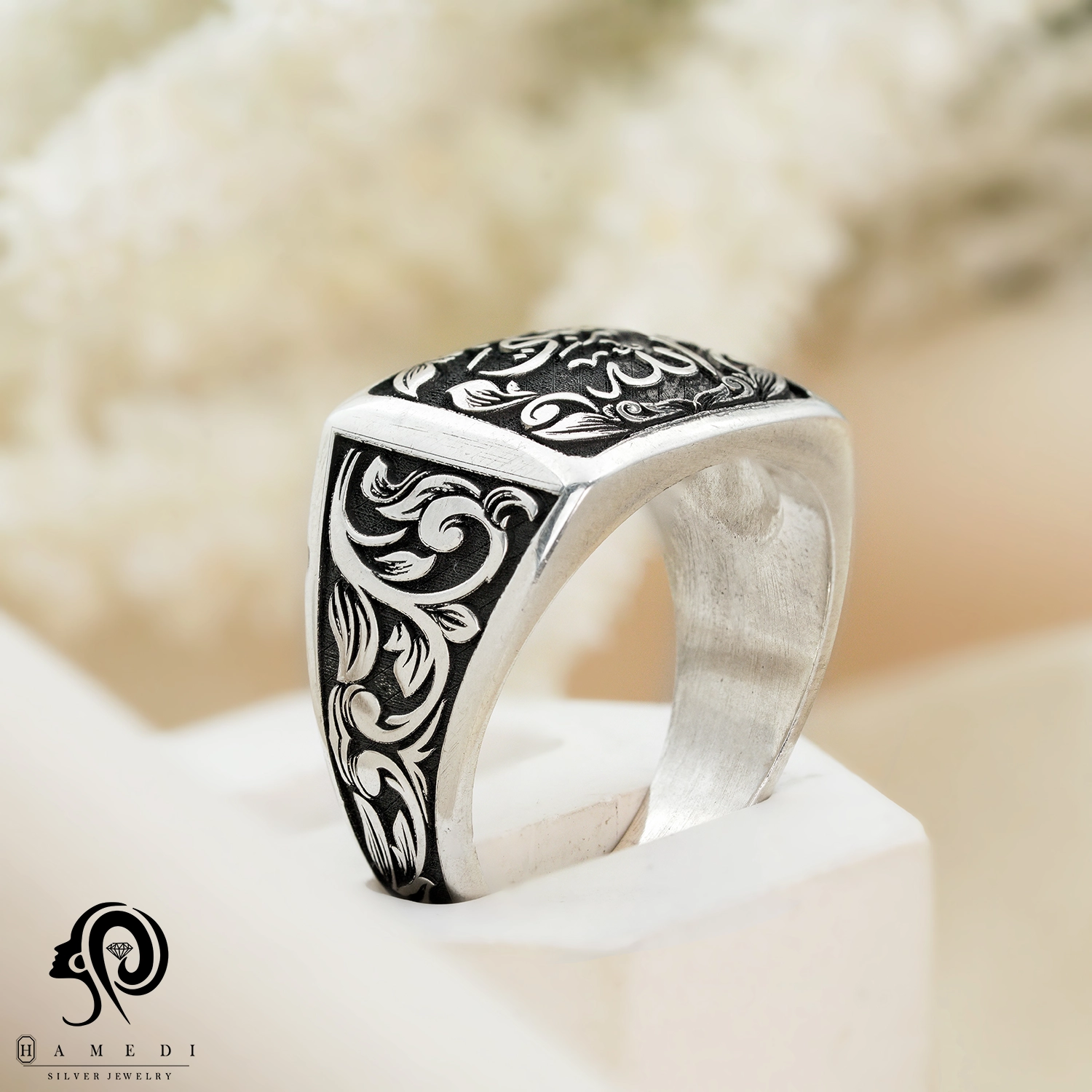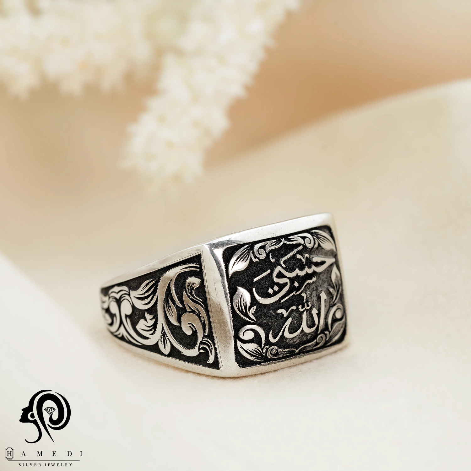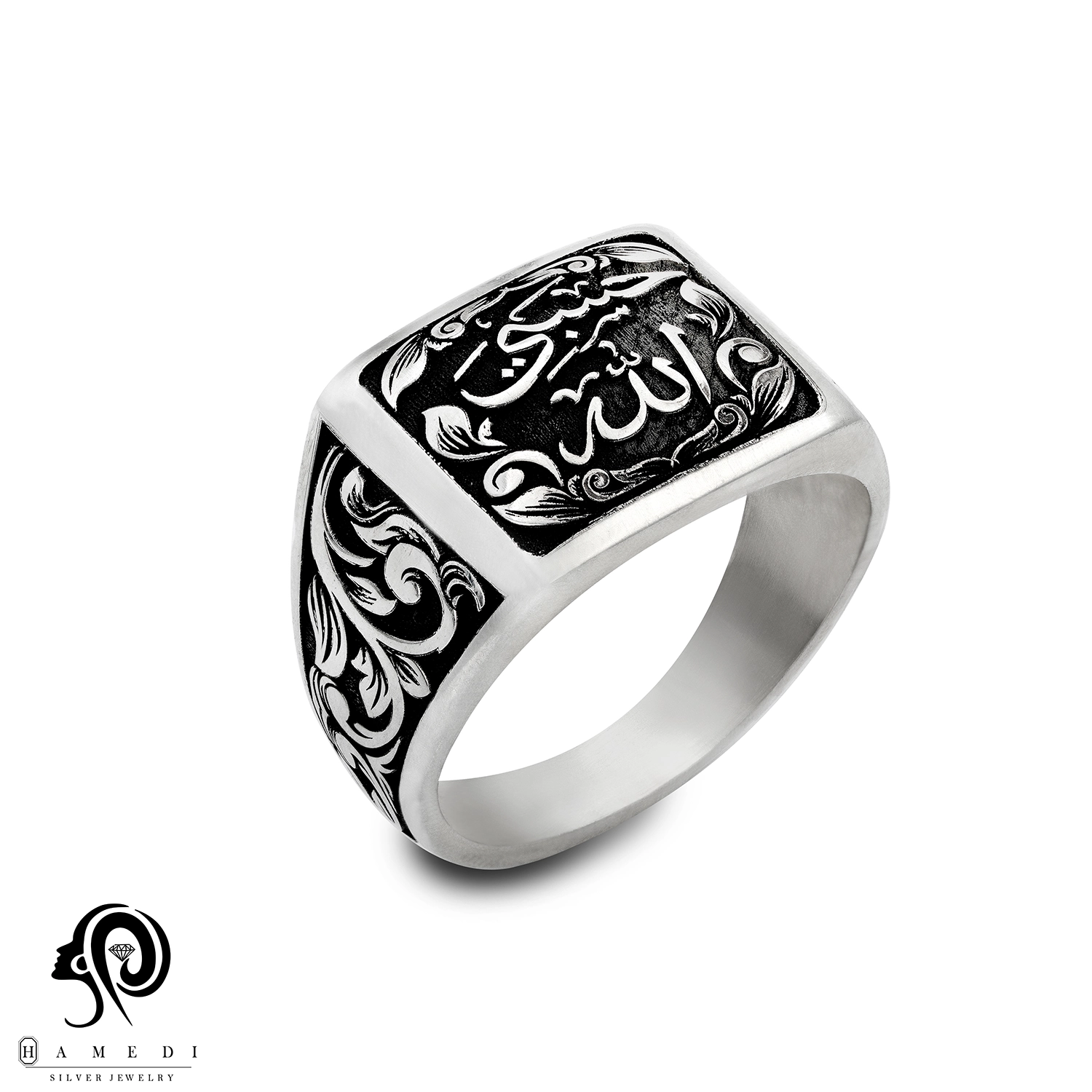 انگشتر نقره مردانه تراش حسبی الله مدل RIM T1 یکی از لوکسترین و پرطرفدارترین انگشتر های جواهری گالری حامدی است.