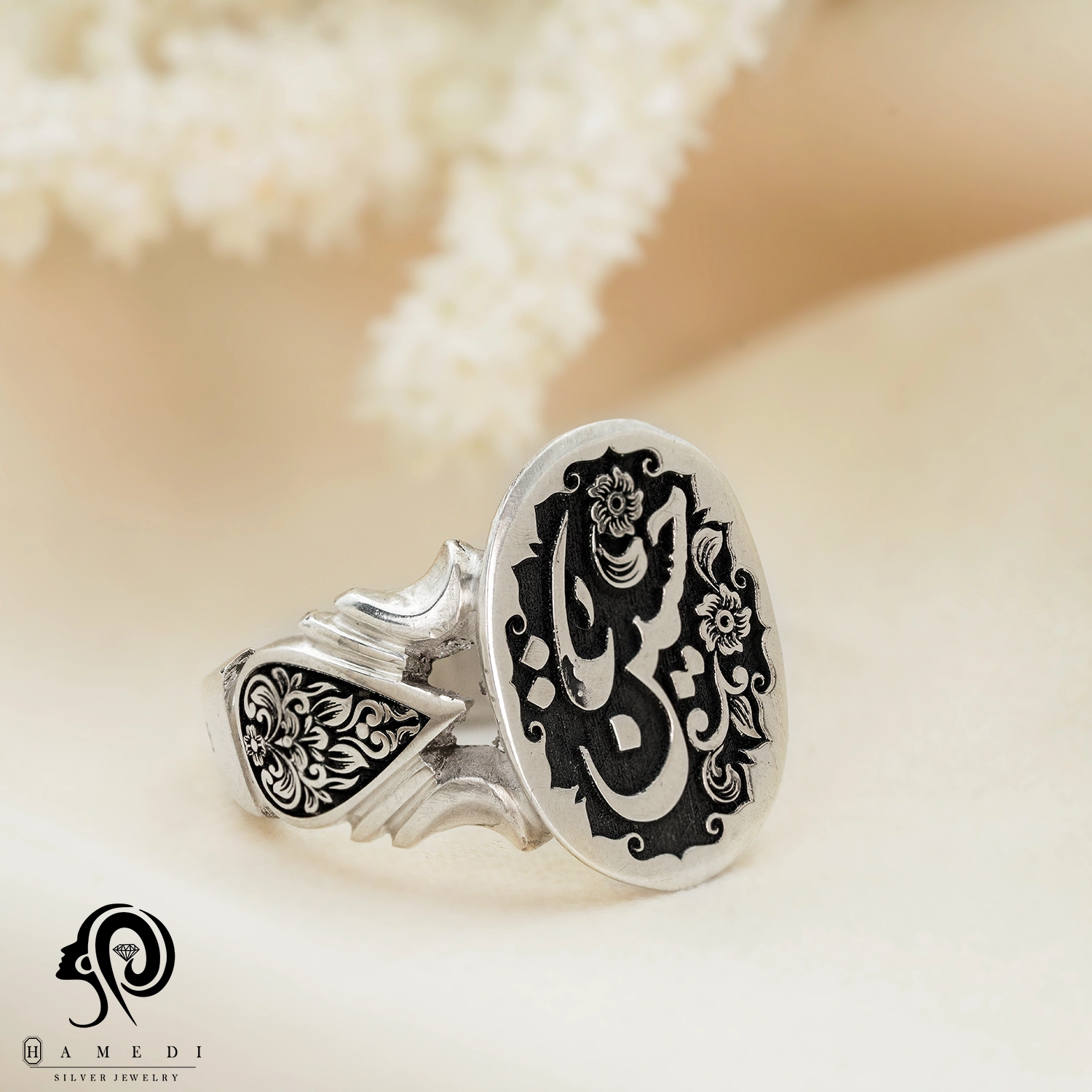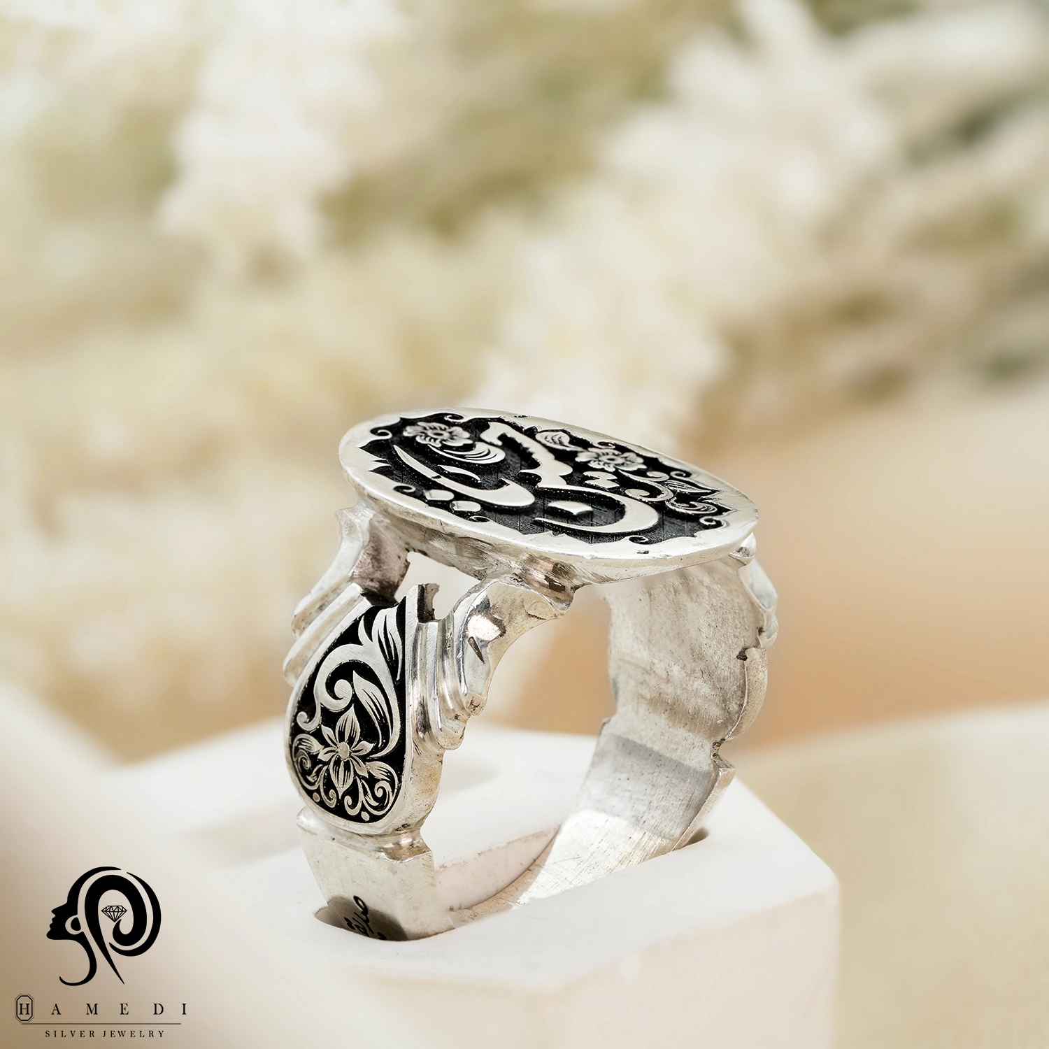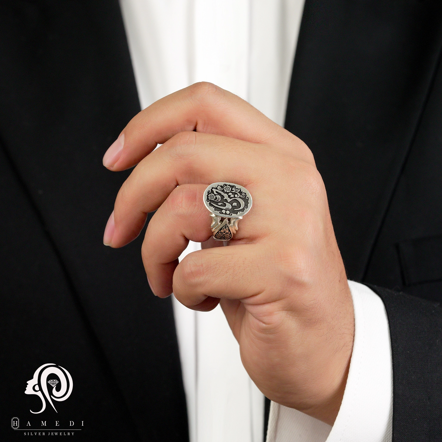 انگشتر نقره مردانه تراش یاحسین مدل RIM T7 یکی از لوکسترین و پرطرفدارترین انگشتر های جواهری گالری حامدی است.