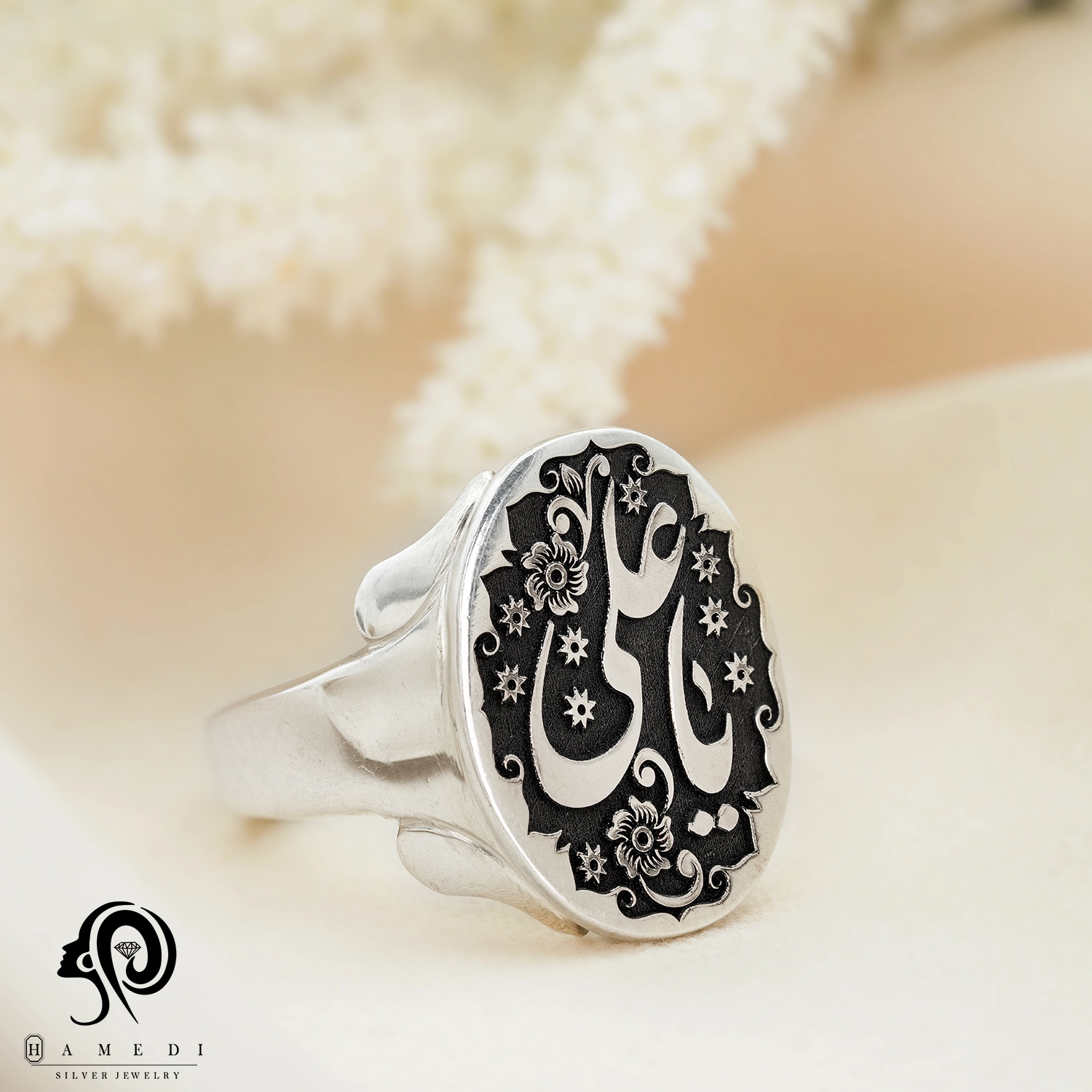 انگشتر نقره مردانه تراش یاعلی مدل RIM T8 یکی از لوکسترین و پرطرفدارترین انگشتر های جواهری گالری حامدی است.