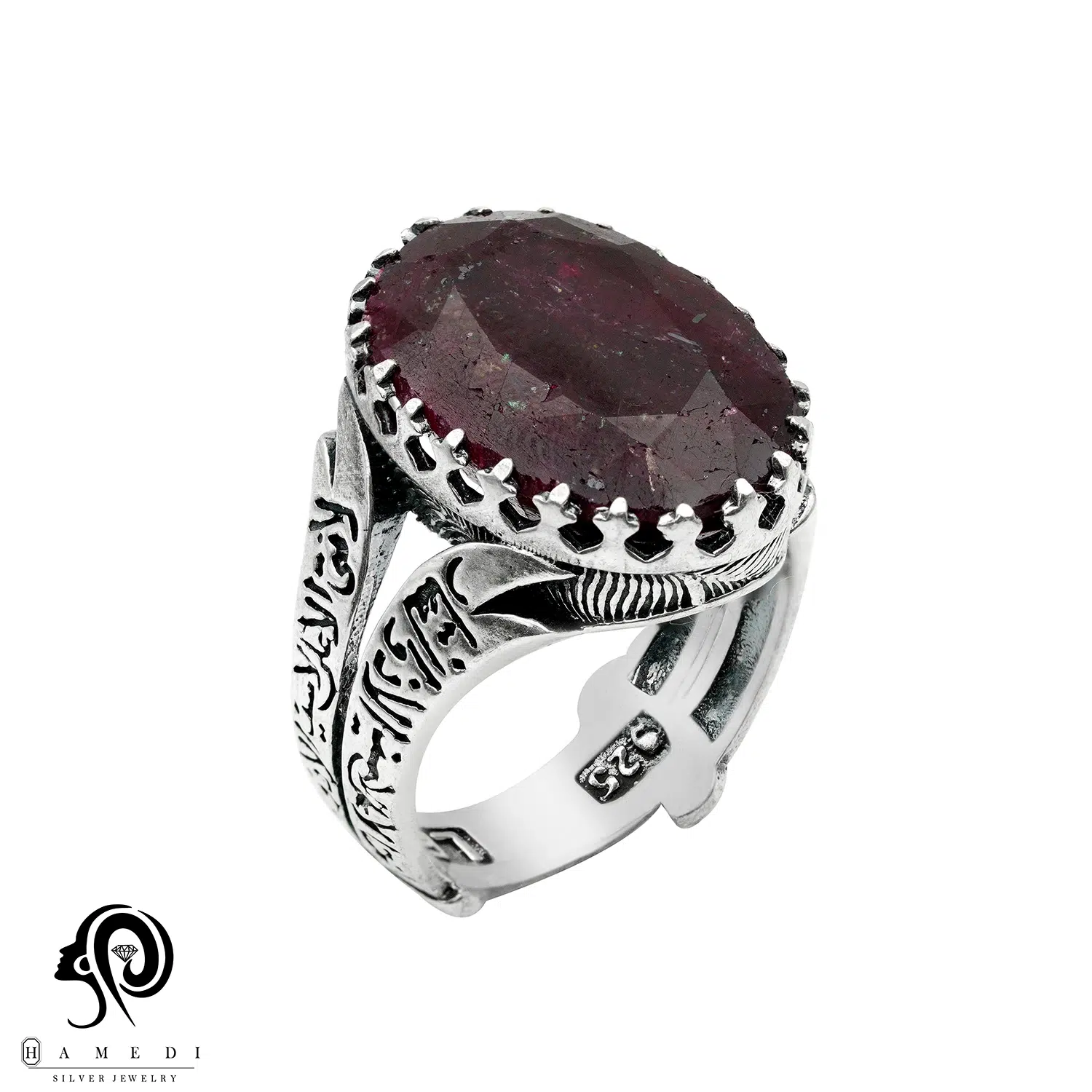 انگشتر نقره مردانه یاقوت ذوالفقار علی مدل RIM YG4 یکی از لوکسترین و پرطرفدارترین انگشتر های یاقوت گالری حامدی است.