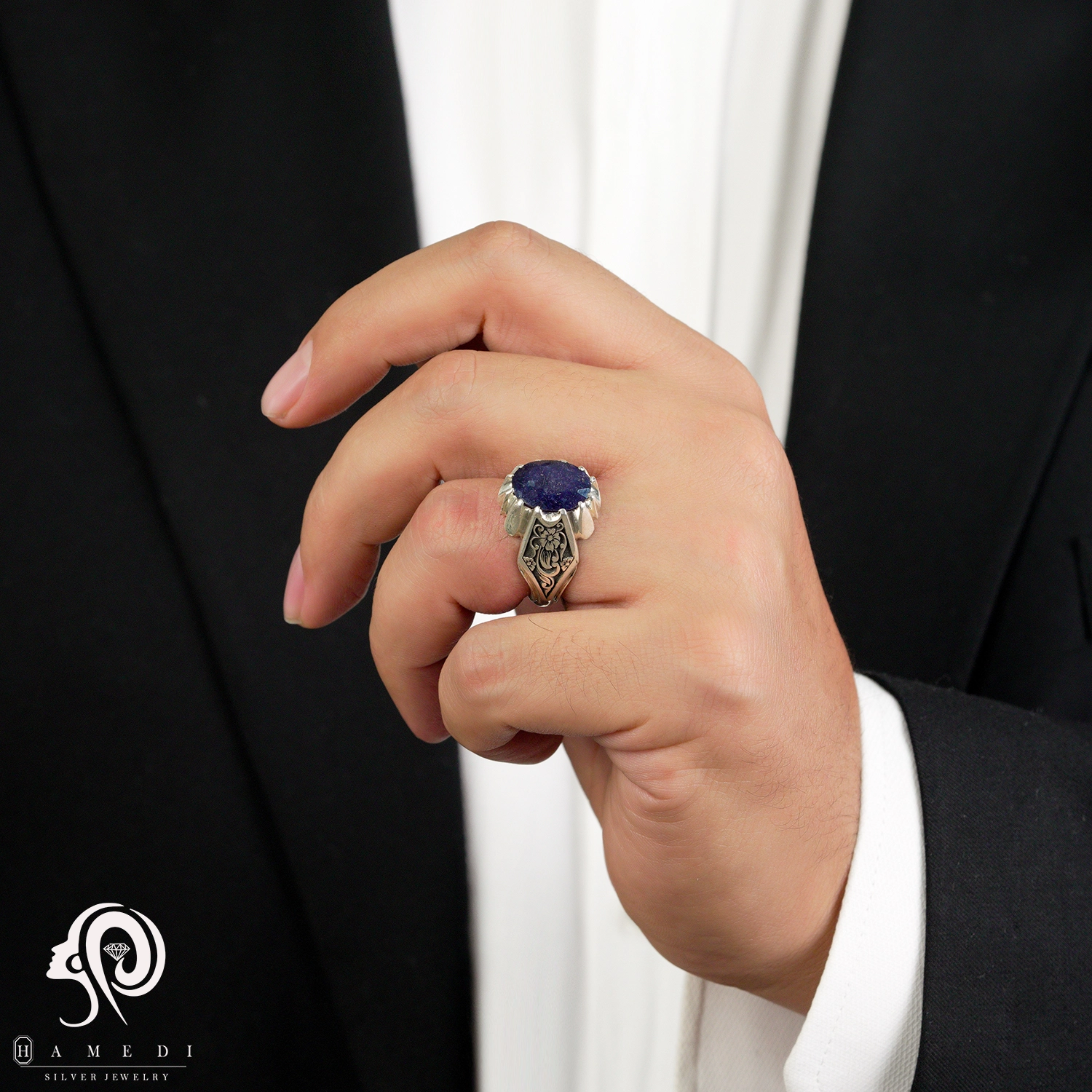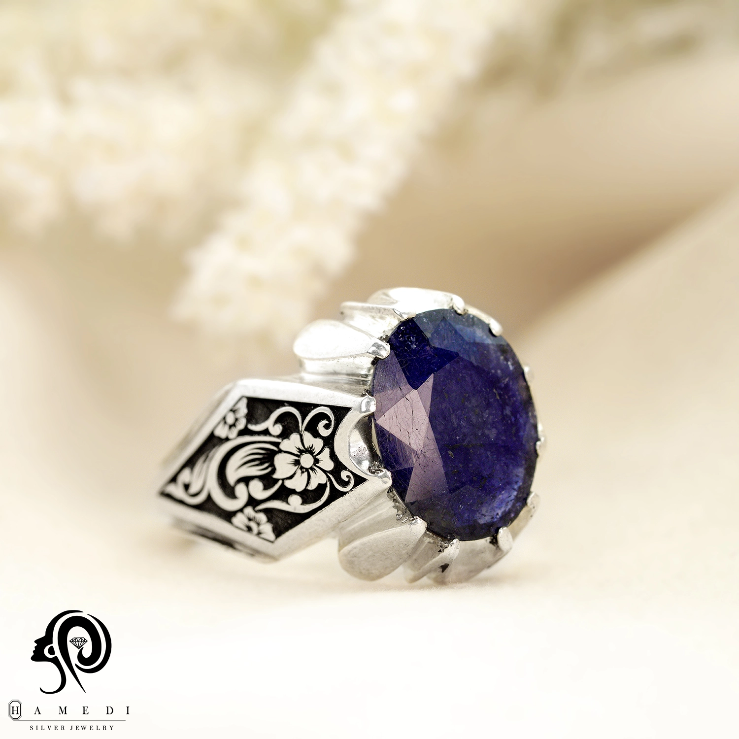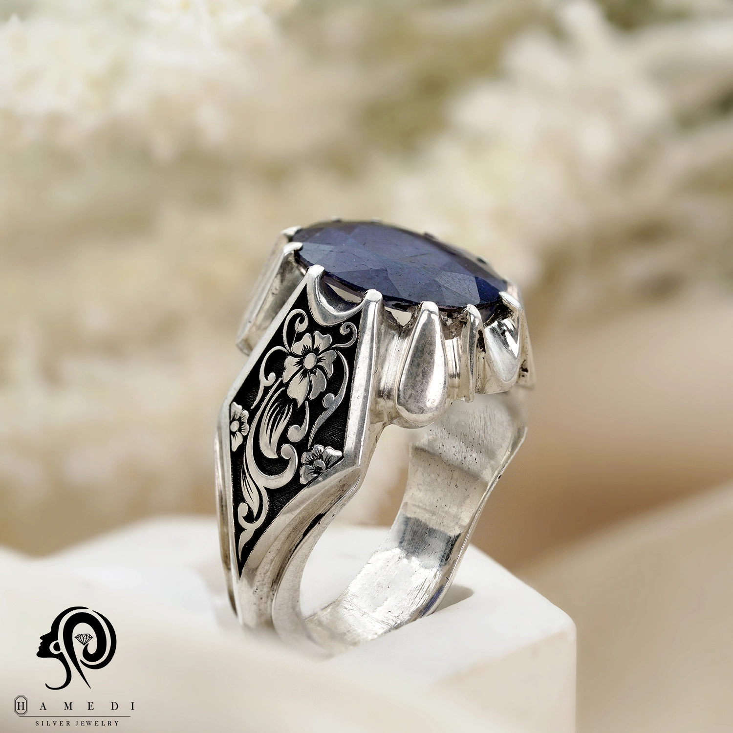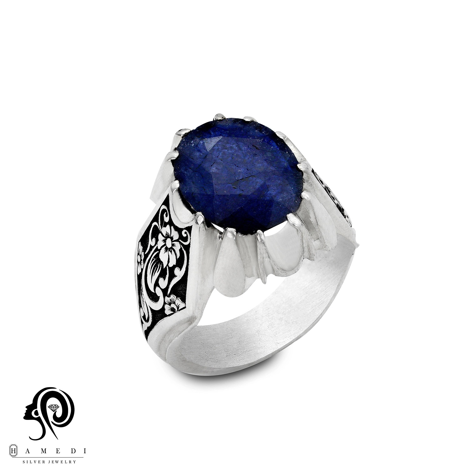 انگشتر نقره مردانه یاقوت کبود مدل RIM YK4 یکی از لوکسترین و پرطرفدارترین انگشتر های یاقوت گالری حامدی است.