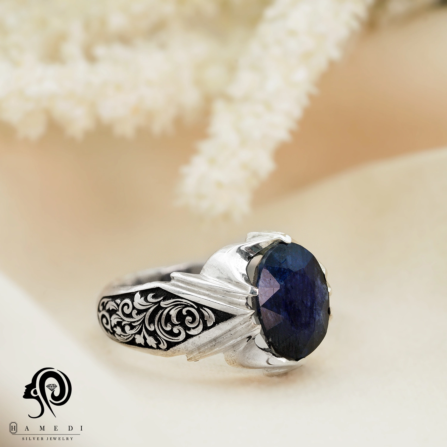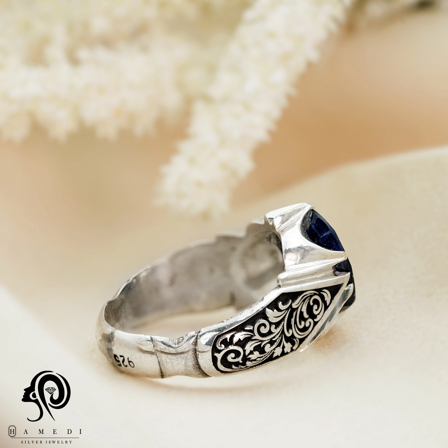 انگشتر نقره مردانه یاقوت کبود مدل RIM YK7 یکی از لوکسترین و پرطرفدارترین انگشتر های یاقوت گالری حامدی است.