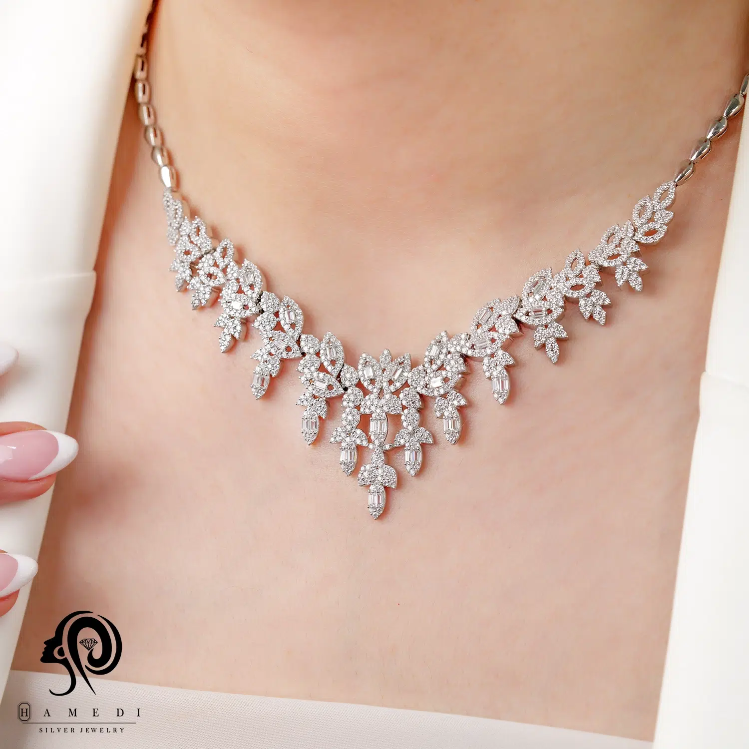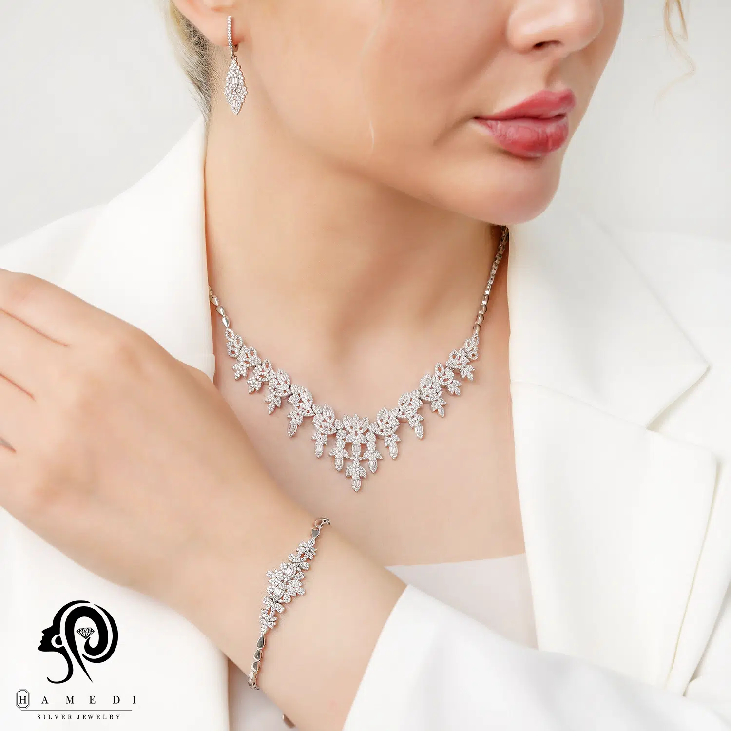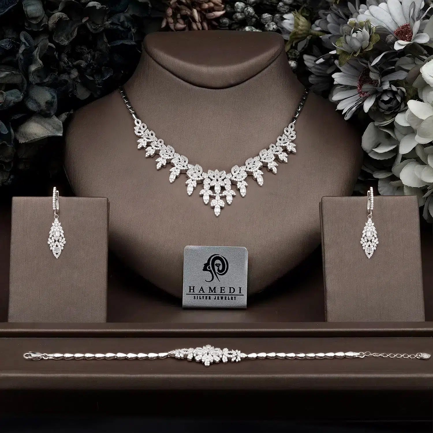 سرویس نقره زنانه مجلسی جواهری مدل SI E42 یکی از زیباترین و پرطرفدارترین سرویس های مجلسی گالری حامدی است.