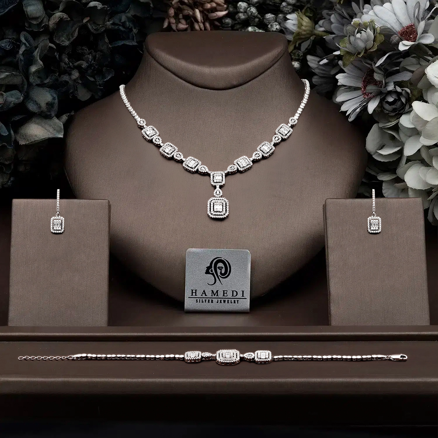 سرویس نقره زنانه امرالدکات جواهری مدل SI E43 یکی از زیباترین و پرطرفدارترین سرویس های نقره مجلسی گالری حامدی است.
