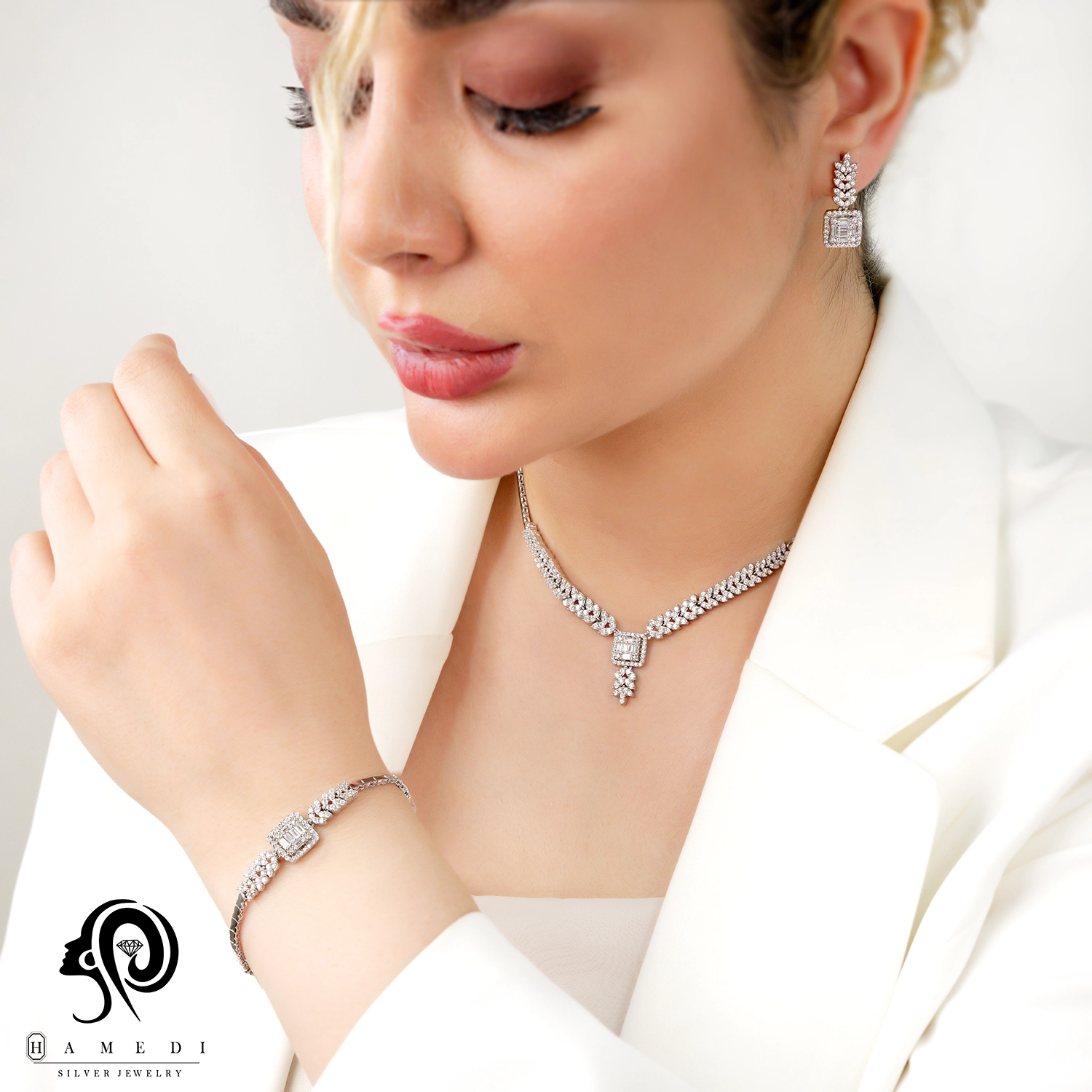 سرویس نقره زنانه امرالدکات جواهری مدل SI E44 یکی از زیباترین و پرطرفدارترین سرویس های نقره مجلسی گالری حامدی است.