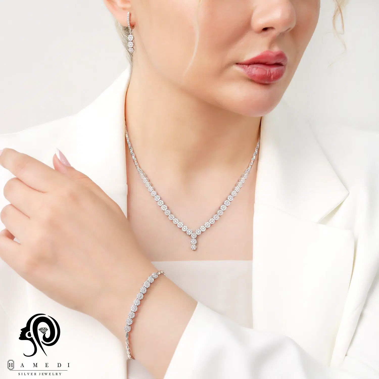 قفل گوشواره این ست نیز به صورت کلیپسی و قفل دستبند و گردنبند مدبر است.