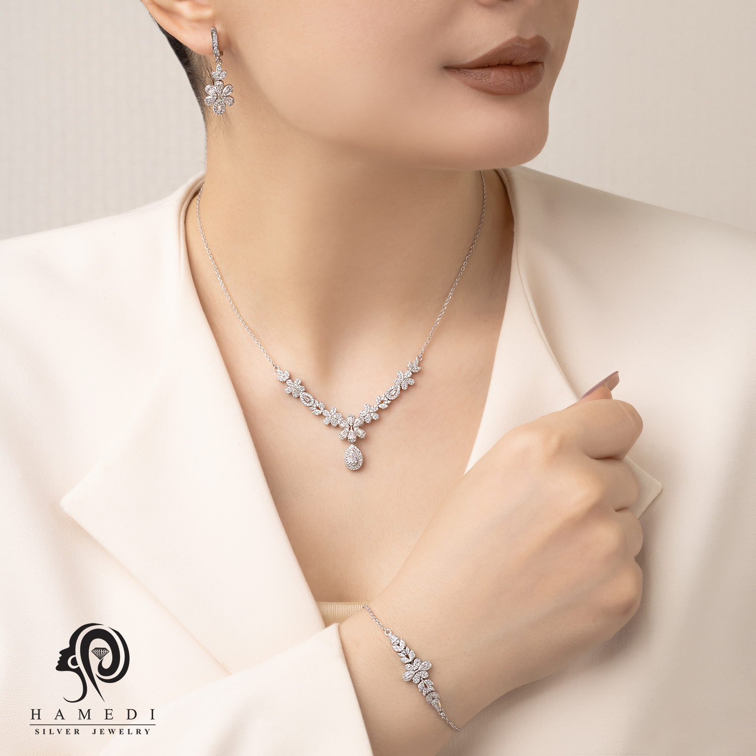سرویس نقره زنانه زنجیری مجلسی مدل SIC S4 یکی از زیباترین و پرطرفدارترین سرویس نقره ظریف گالری حامدی است.