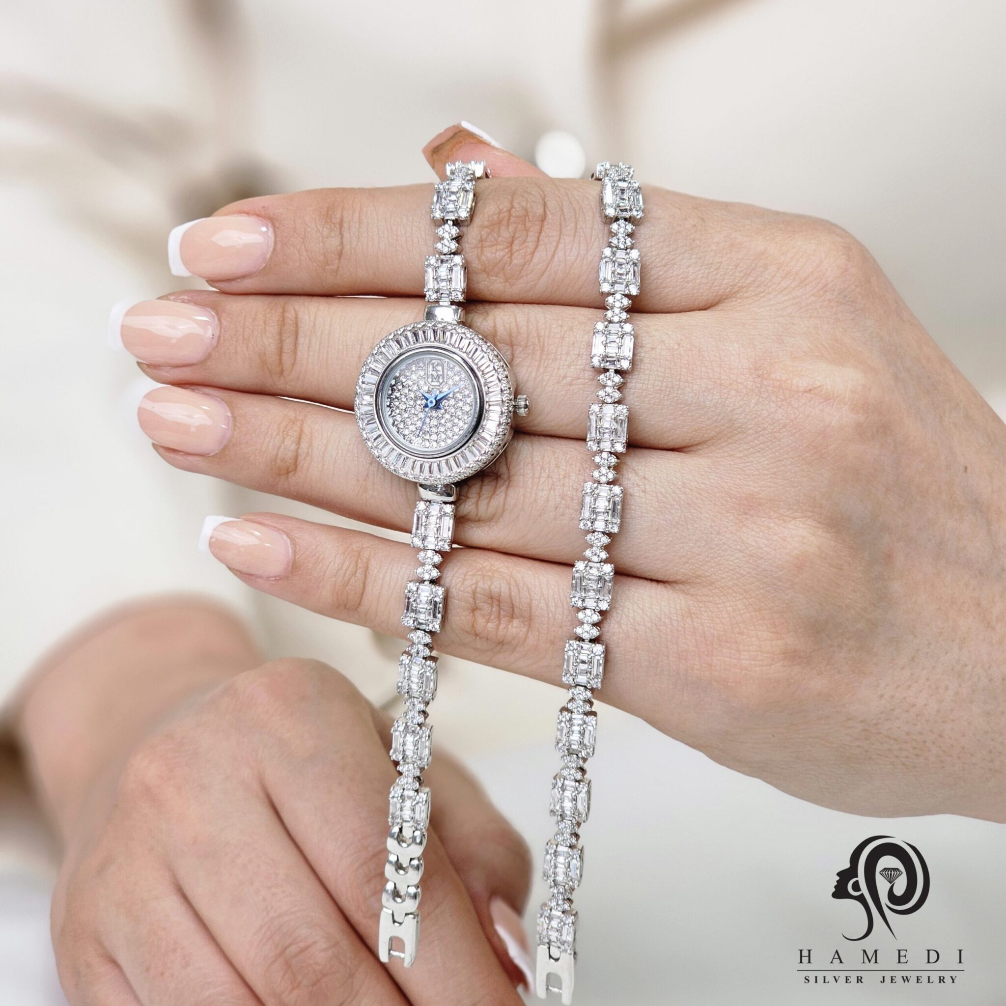 این ست هم دستبند و هم ساعت با آب رودیوم به منظور محافظت و جلا و درخشندگی بیشتر پوشانیده