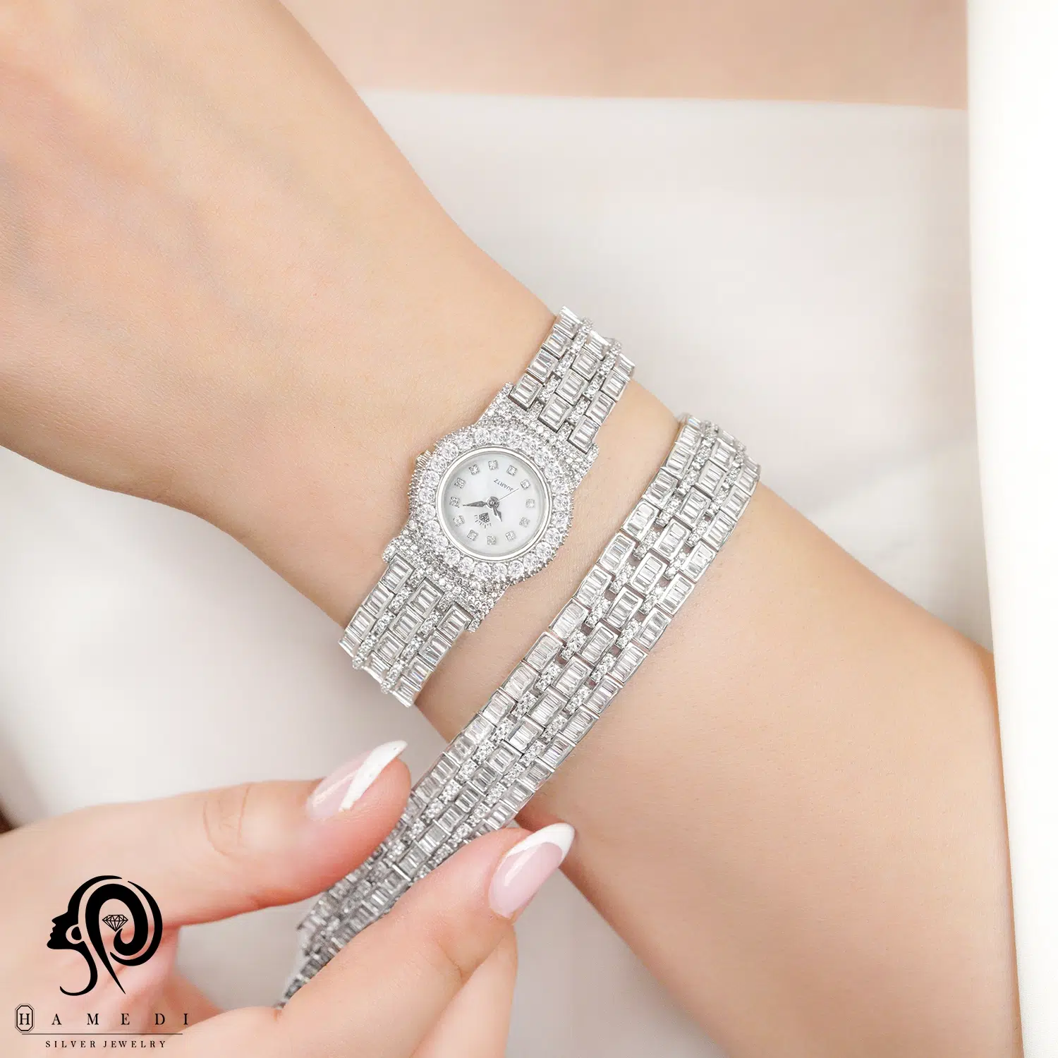 یکی از پرطرفدارترین ست ساعت و دستبند نقره در بازار مربوط به زنان است. این ساعت ها با طراحی زیبا و شیک، قابل استفاده در تمامی محیط ها هستند و می توانند به راحتی با لباس های مختلف ترکیب شوند.