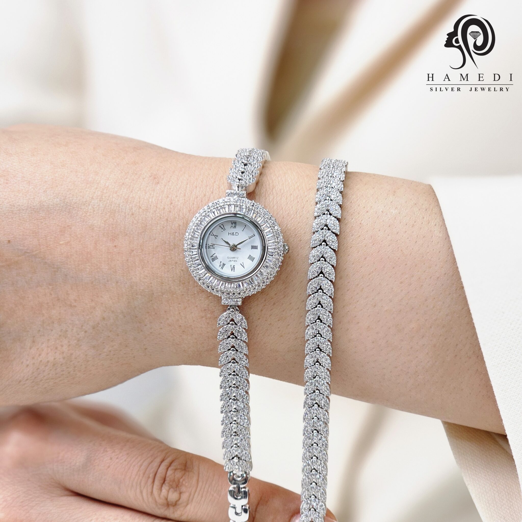 این ست هم دستبند و هم ساعت با آب رودیوم به منظور محافظت و جلا و درخشندگی بیشتر پوشانیده